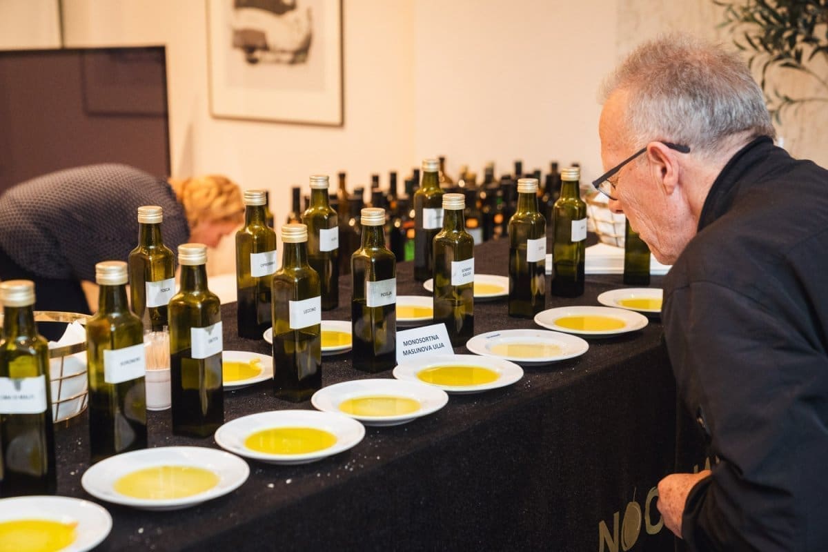 - Sve ove sorte, ti hibridi i superhibridi, većinom se još ispituju, tek su četiri-pet godina prisutne pa još uvijek ne znamo kako će se one ponašati za koju godinu u smislu prinosa, rodnosti. Međutim, dosta ovisi o pojedinom maslinaru, kada se bere, kako se obrađuje. Neke grčke sorte dozrijevaju u prosincu, a kod nas je intencija brati što ranije... Lastovka recimo ima malo zrno, ali dosta veliku rodnost, pune grane budu. Sve one imaju ugodan, harmoničan okus ako se beru u pravo vrijeme. Sve ostalo su nekakvi eksperimenti... - pojašnjava nam Ivan Jelušić, maslinar istoimenog OPG-a iz Pirovca koji je na svom štandu izložio ulja raznih sorti na 'test nepcima'. U ulje se malo umoči kruha i tako se provjerava okus oblice, levantinke, lastovke, leccino, koroneiki, cima di malfi, arbosana,..., sorti maslina odnosno njihova ulja.