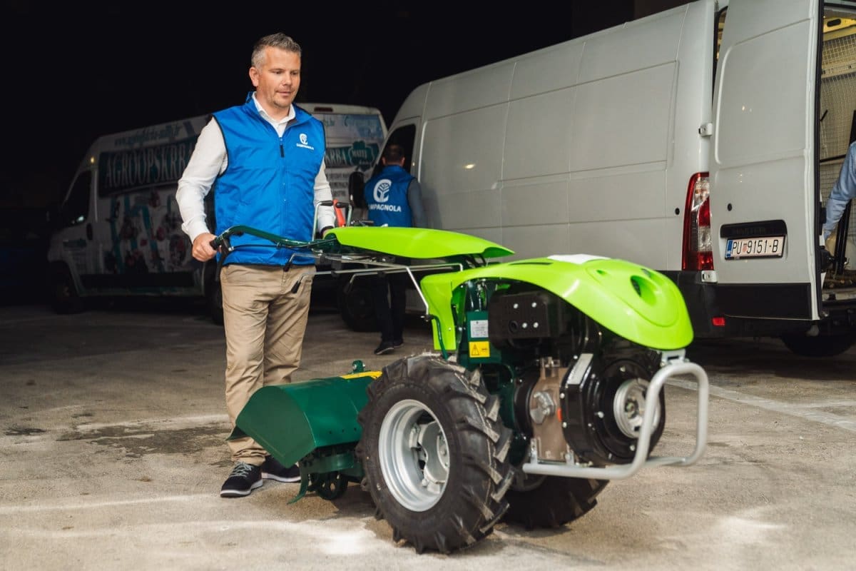 - U Dalmaciji, pogotovo na otocima, najduže se zadržao običaj ručnog branja maslina, onaj tip 'imam rodbinu, prijatelje, napravimo marendu' branja koji će vjerojatno uvijek biti aktualan, ali nije održiv za maslinike i projekte gdje je to ozbiljan posao. Sigurno je uzrokovano specifičnim položajima maslinika, na kaskadama, nagnutim terenima, u vrtačama, gdje se nije moglo baš dolaziti strojevima niti širiti mreže ispod maslina kao u Istri. Slično je i s obradom, negdje još uvijek smatraju da je dobro 'spremiti' masline u more. A tako je i s radom na zemlji, čak i tradicionalisti polako uviđaju prednosti mehanizacije - mi imamo praktički sve potrebno, od manjih strojeva do ozbiljnih traktora, a na svima je moguće mijenjati priključke ovisno o godišnjem dobu i vrsti radova u polju... - doznajemo od našeg sugovornika dok pokazuje mogućnosti svojih proizvoda.