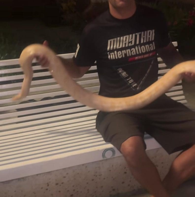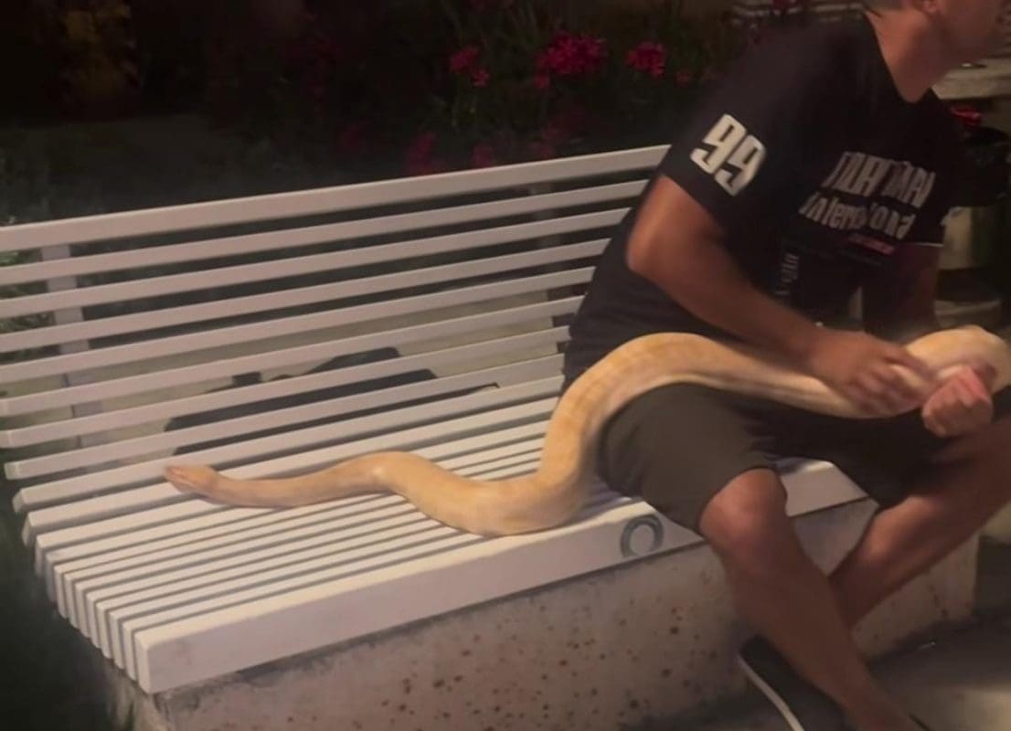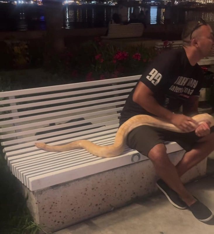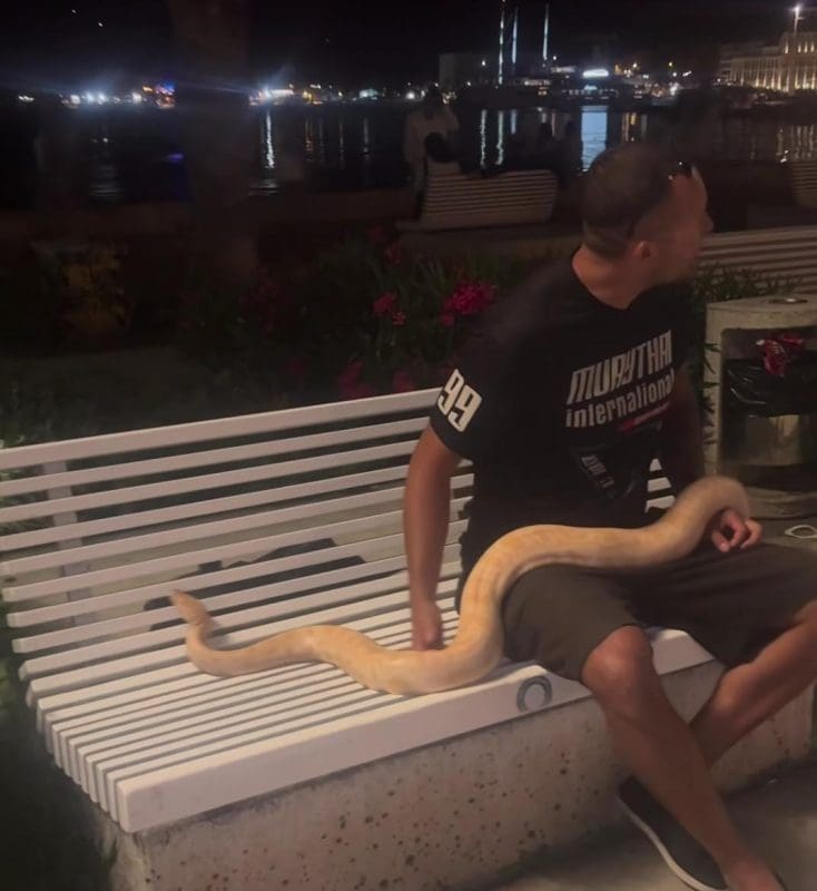 Jučer je jedan čovjek na splitsku rivu donio ogromnu zmiju koju, vjerojatno, drži kao kućnog ljubimca. Čovjek je sjedio na klupi na Rivi, a prolaznici su se zgražali nad prizorom.