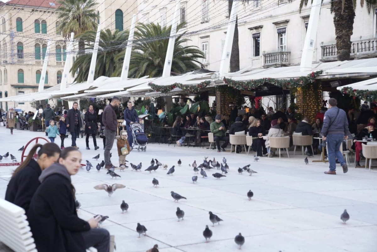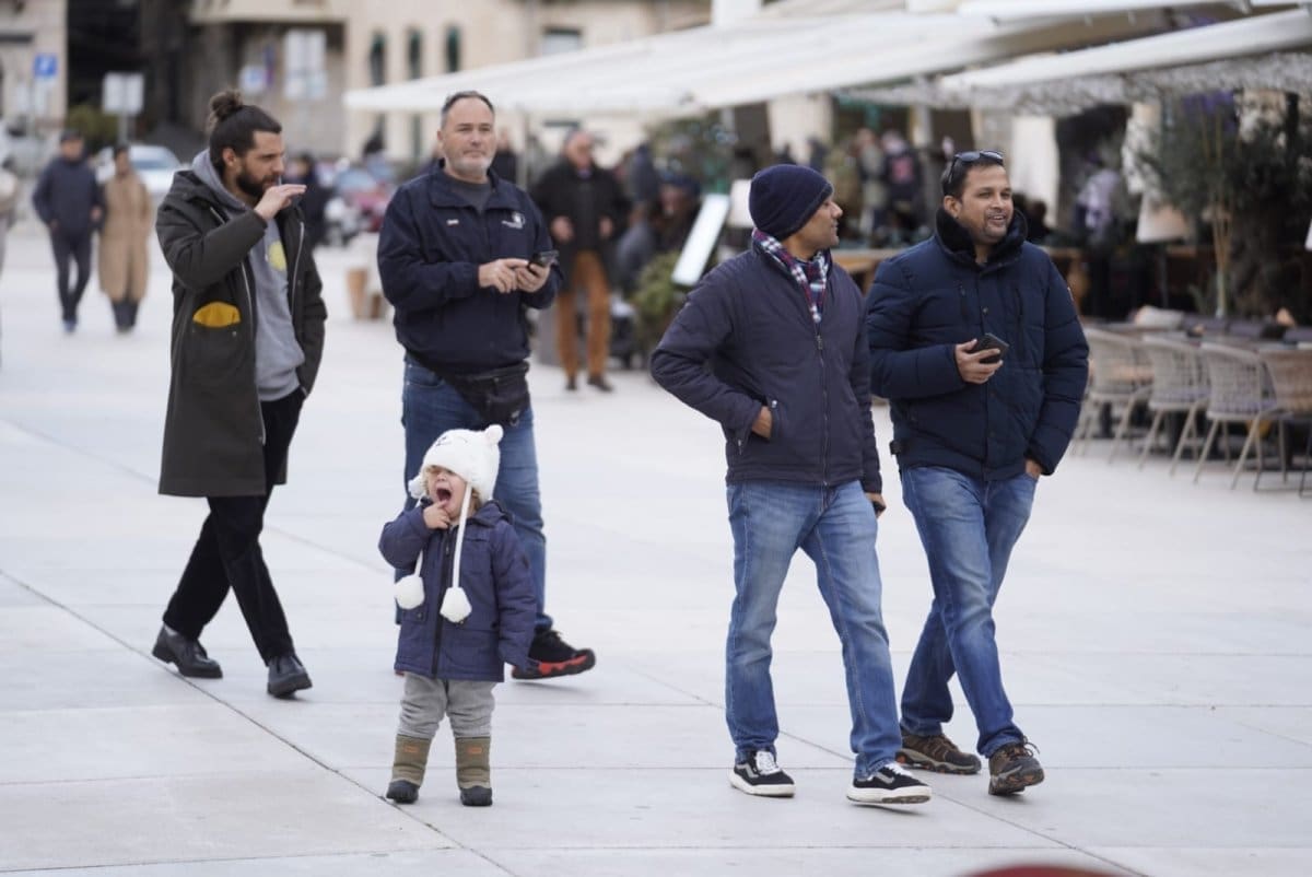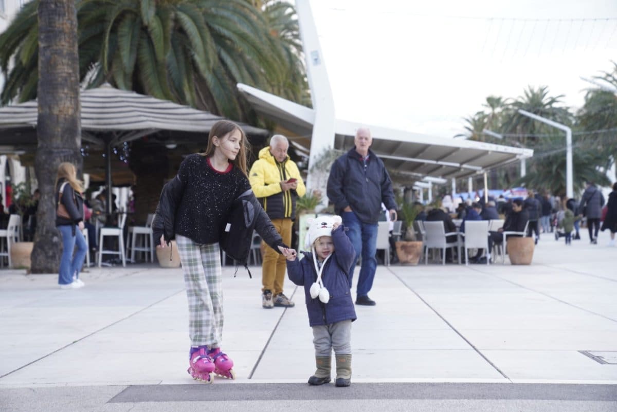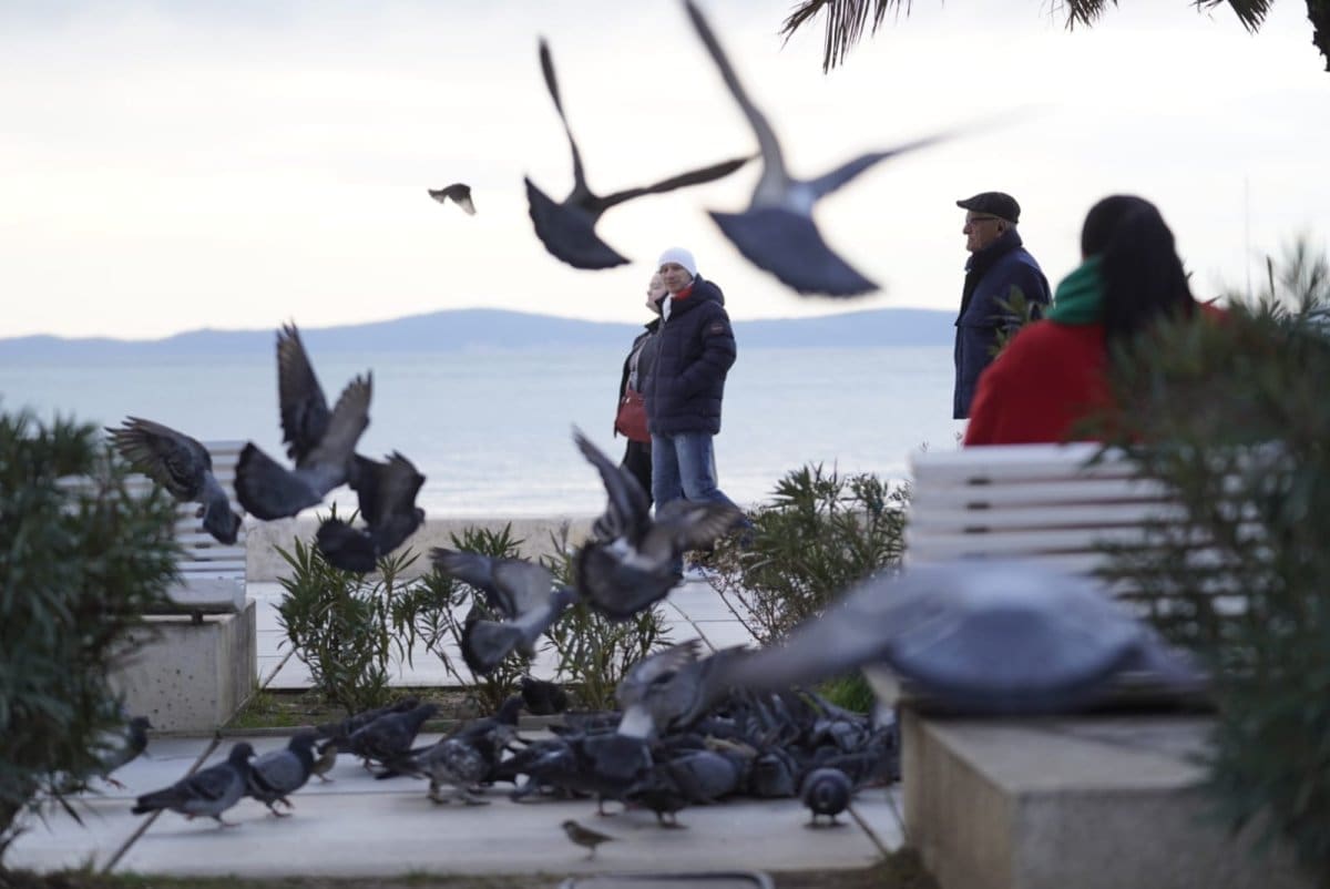 Iako je puše jaka bura i prilično je hladno, mnogi Splićani nisu htjeli ostati doma. Kažu da je zdravo provesti koji sat na hladnoj buri, a zdraviji će se doma vratiti stari i mladi koji su današnje vrijeme prije ručka proveli u centru grada.