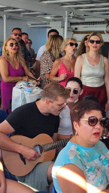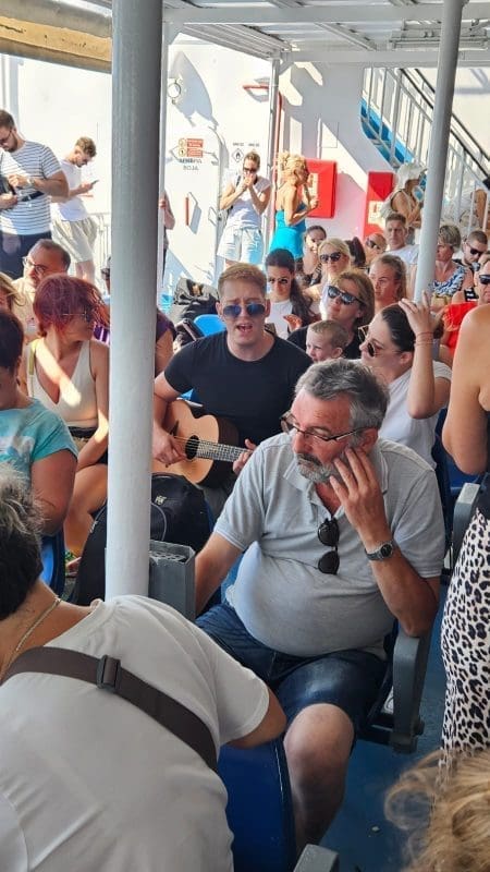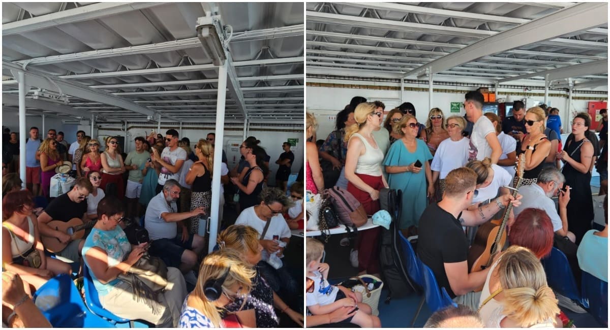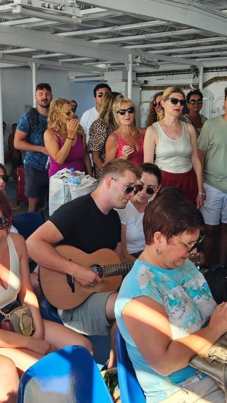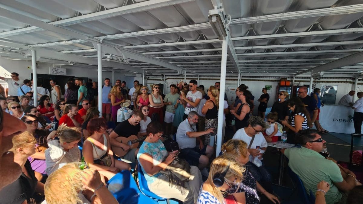 Kako to uvijek biva na trajektu počela je spontana pjesma koju na gitari predvodi Jure Brkljača, i zbor štovatelja Oliverovih svevremenskih hitova.