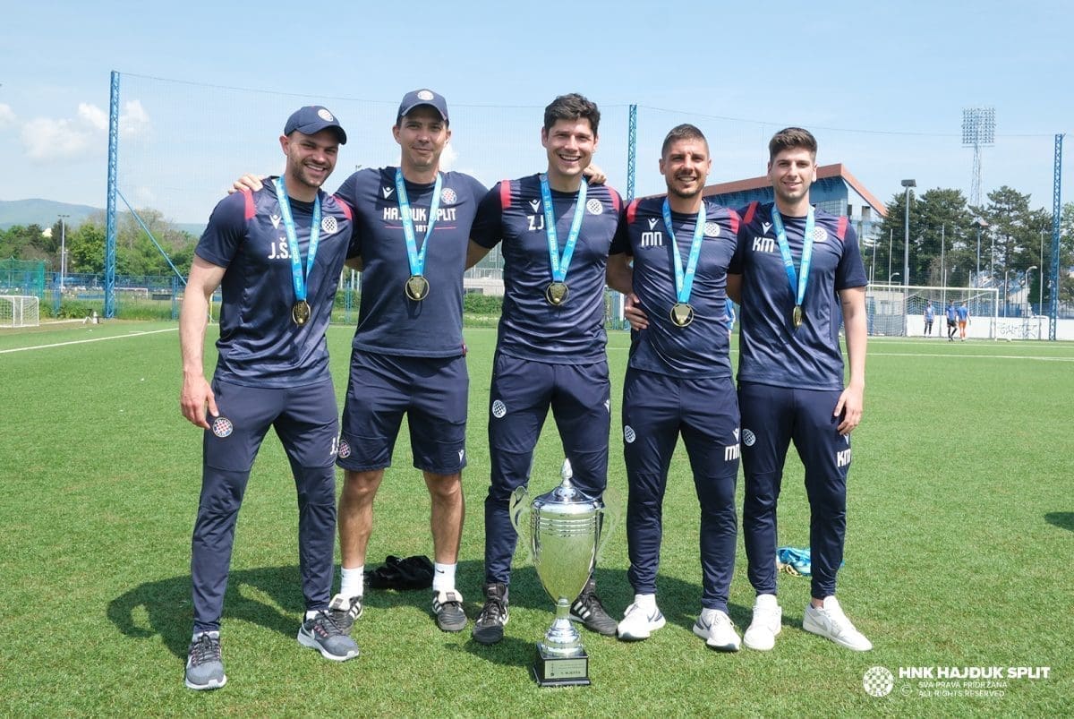 Momčad trenera Zlatka Jerkovića prije četiri dana u Rijeci je uvjerljivom pobjedom nad Osijekom osvojila i Hrvatski nogometni kup, pa je dvostruka kruna zasluženo završila na Poljudu. Nakon utakmice Dinamo - Hajduk upriličena je mala svečanost na kojoj su Bijelima uručeni pobjednički pehar i medalje za osvojeno prvo mjesto.