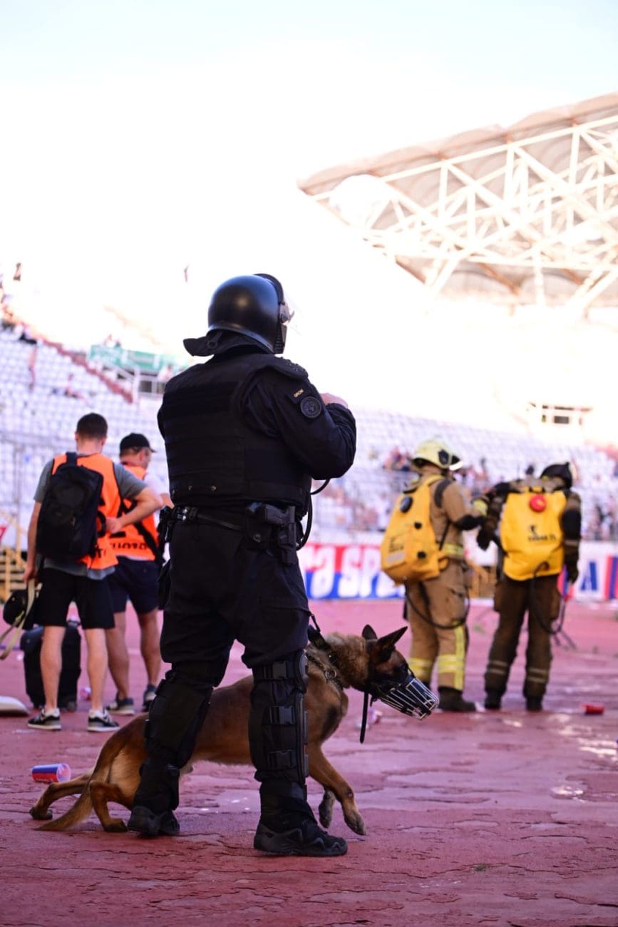 Policija je nakon susreta privela više od 160 osoba zbog različitih prekršaja, uključujući sudjelovanje u tučnjavama, korištenje pirotehnike, konzumaciju alkohola na javnim površinama te vrijeđanje službenih osoba. Najozbiljniji incident dogodio se neposredno nakon utakmice, kada je veća skupina izgrednika napala policijske službenike izvan stadiona.