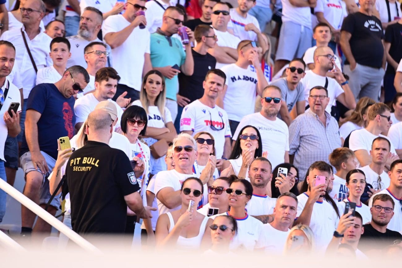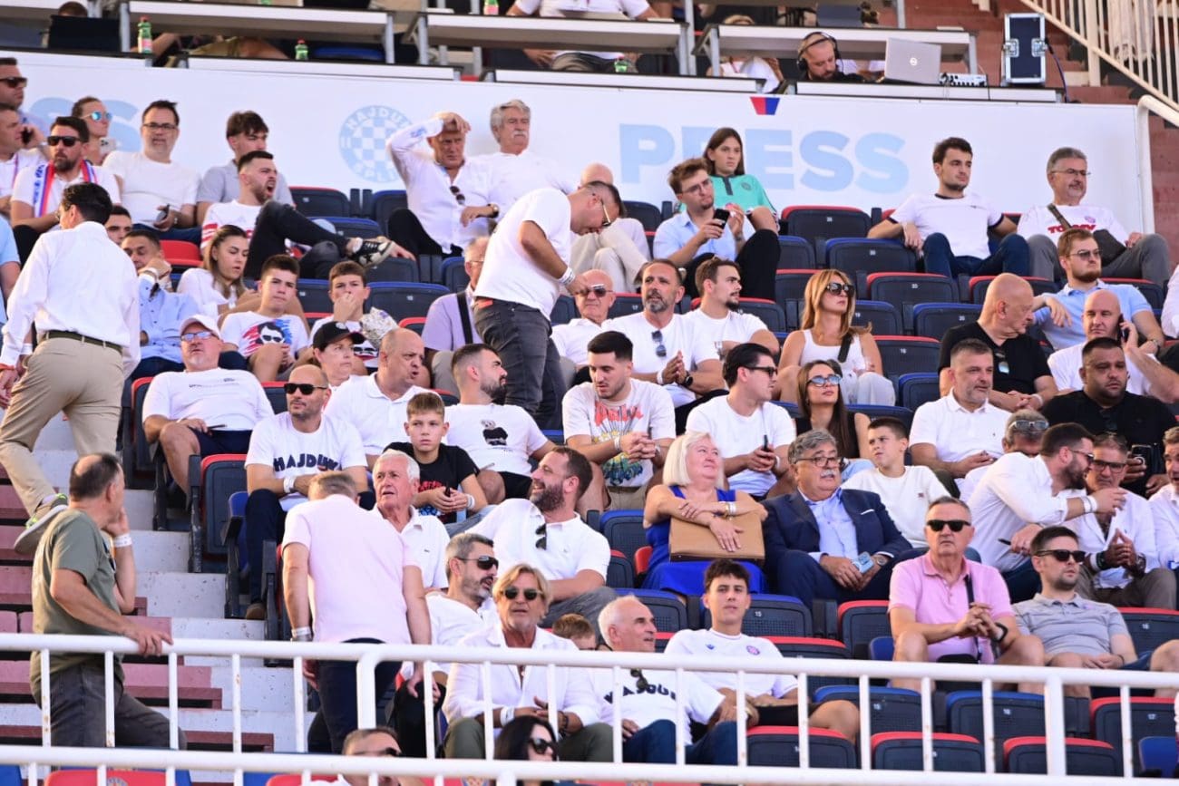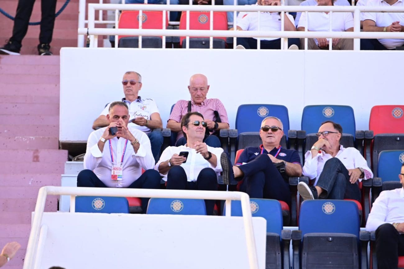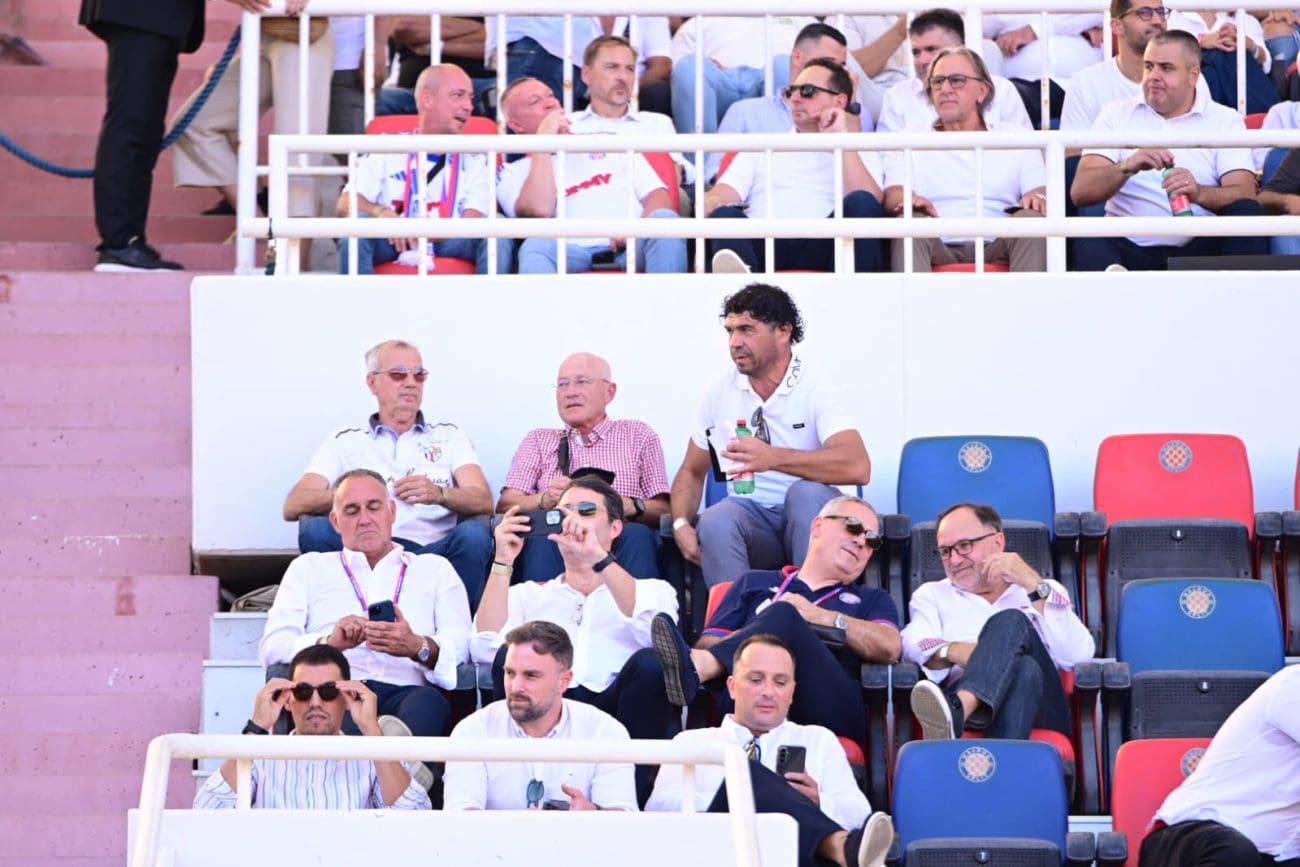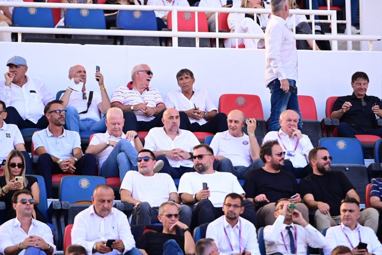 U prvim redovima mogu se vidjeti bivši i sadašnji Hajdukovi igrači, legende kluba koje su došle pružiti podršku “Bilima”. Uz njih, u loži su i predstavnici HNS-a, sportski djelatnici, ali i brojna poznata lica iz javnog života.