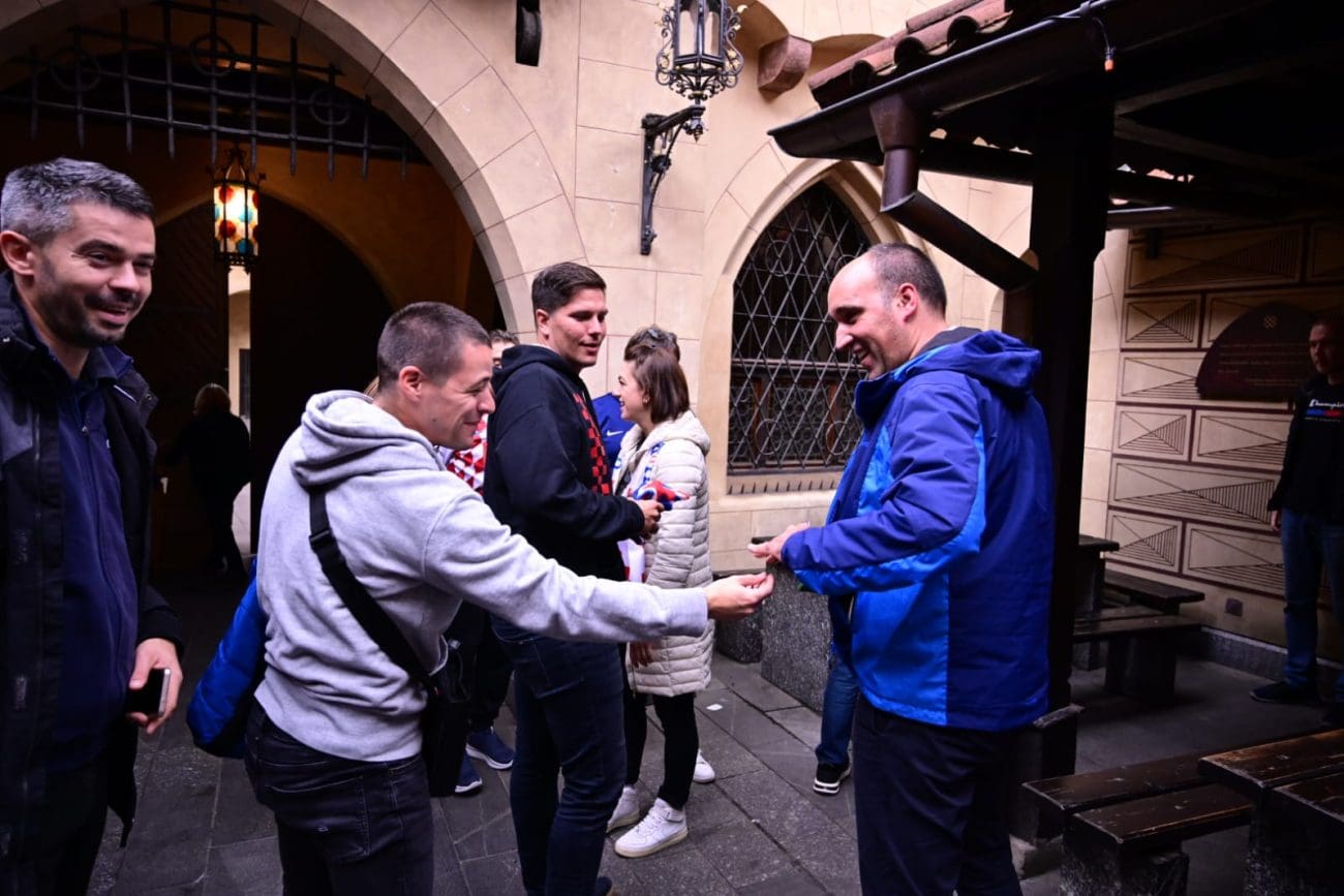 Osim simboličnog posjeta, navijači su se družili s lokalnim Hrvatima i gostima iz drugih dijelova zemlje, stvarajući veselu atmosferu uoči sutrašnjeg dvoboja koji počinje u 20:45 sati.