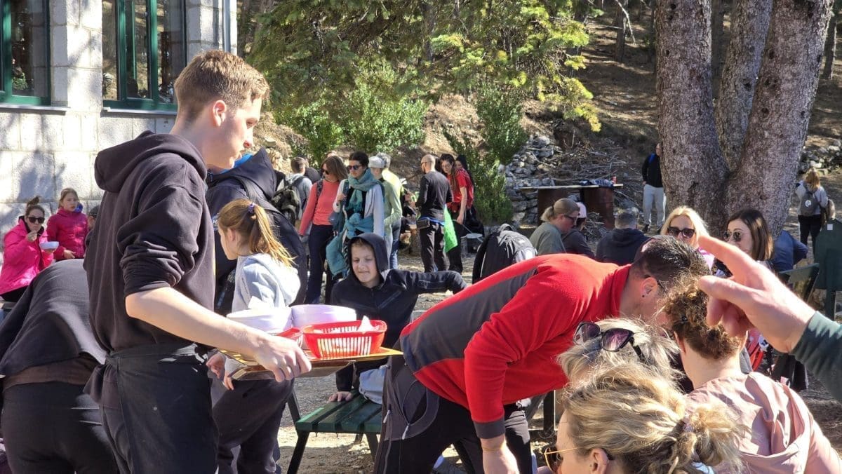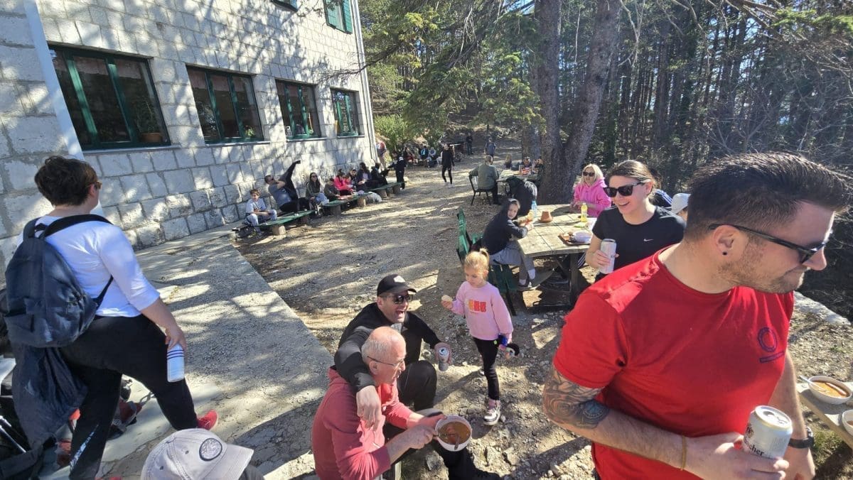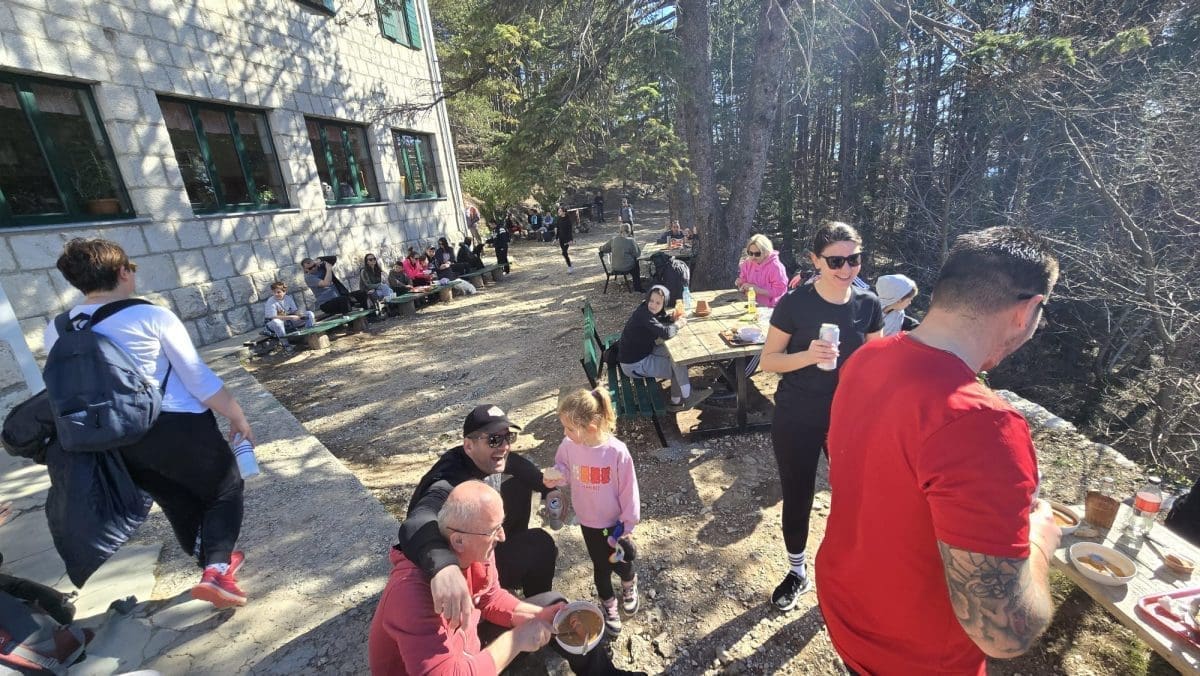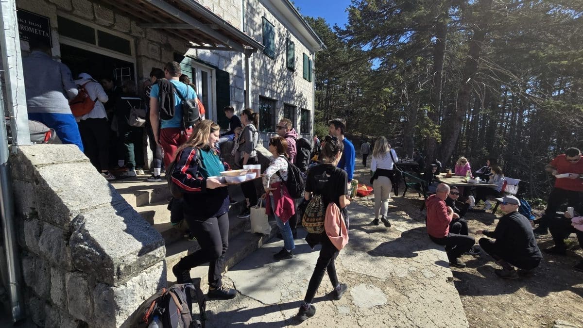 Prava navala je na Planinarski dom Umberto Girometta gdje su se stvorili veliki redovi za ručak (grah, kupus, kobasice, meso..). Na porciju se čeka i više od pola sata.