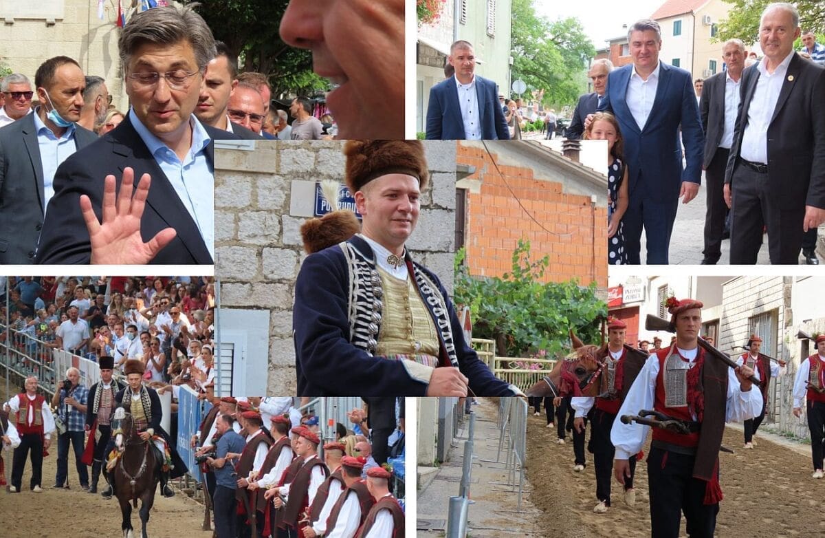 Kompletan državni vrh stigao je u Sinj predvođen pokroviteljem Alke, predsjednikom Republike Hrvatske Zoranom Milanovićem, zatim predsjednikom Vlade Andrejem Plenkovićem, predsjednikom Sabora Gordanom Jandrokovićem i ostalim visokim dužnosnicima iz svijeta politike, vojske i Crkve, javlja Ferata.