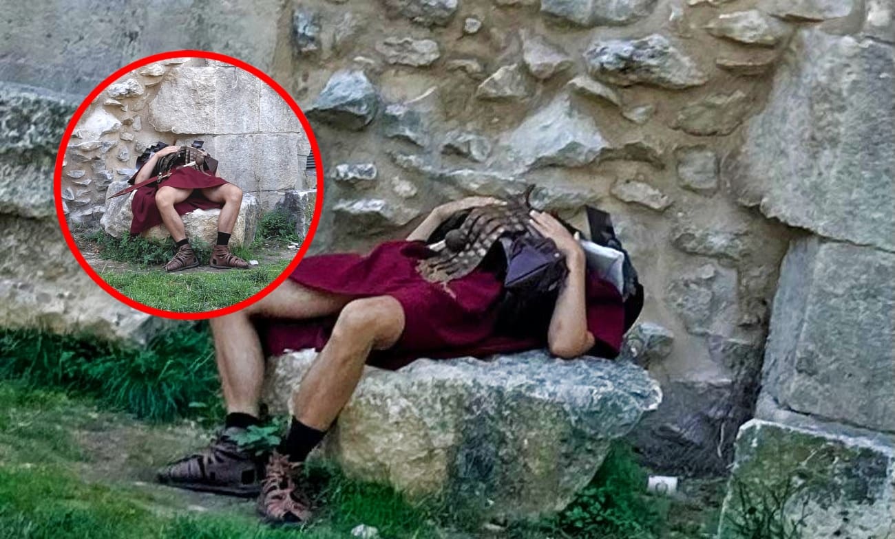 Podsjetimo, maskirani rimski vojnici već godinama čine neizostavan dio turističke ponude u Splitu poziraju za fotografije i zabavljaju turiste. No, čini se da ni njima nije lako odoljeti visokim temperaturama i dugim radnim satima.
