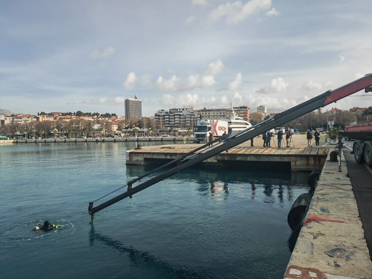 Nesreća koja se sinoć dogodila u splitskoj trajektnoj luci završila je tragično. Muškarac koji je autom sletio u more preminuo je u bolnici, a jutros su kran i ronioci izvukli vozilo iz mora.