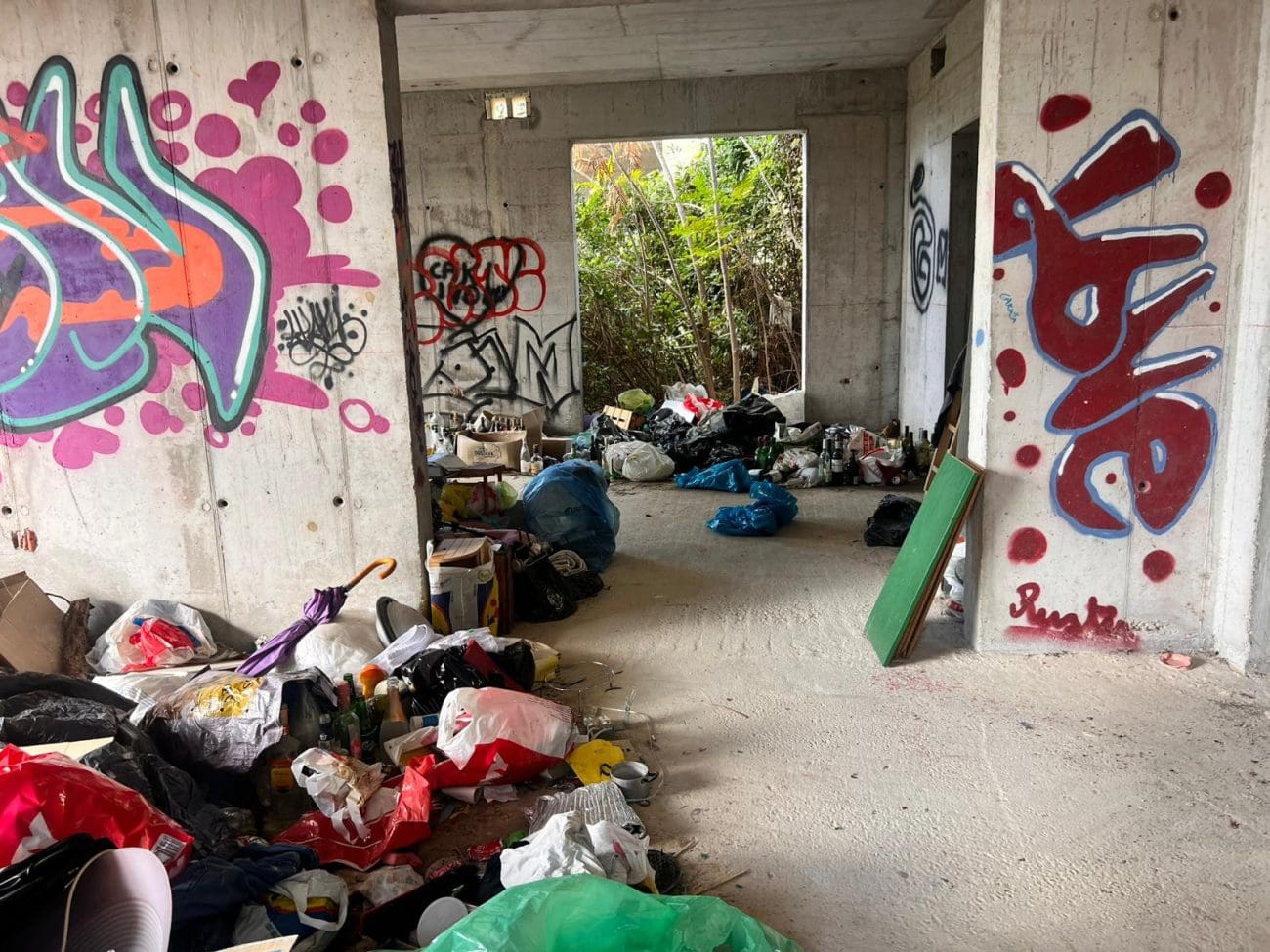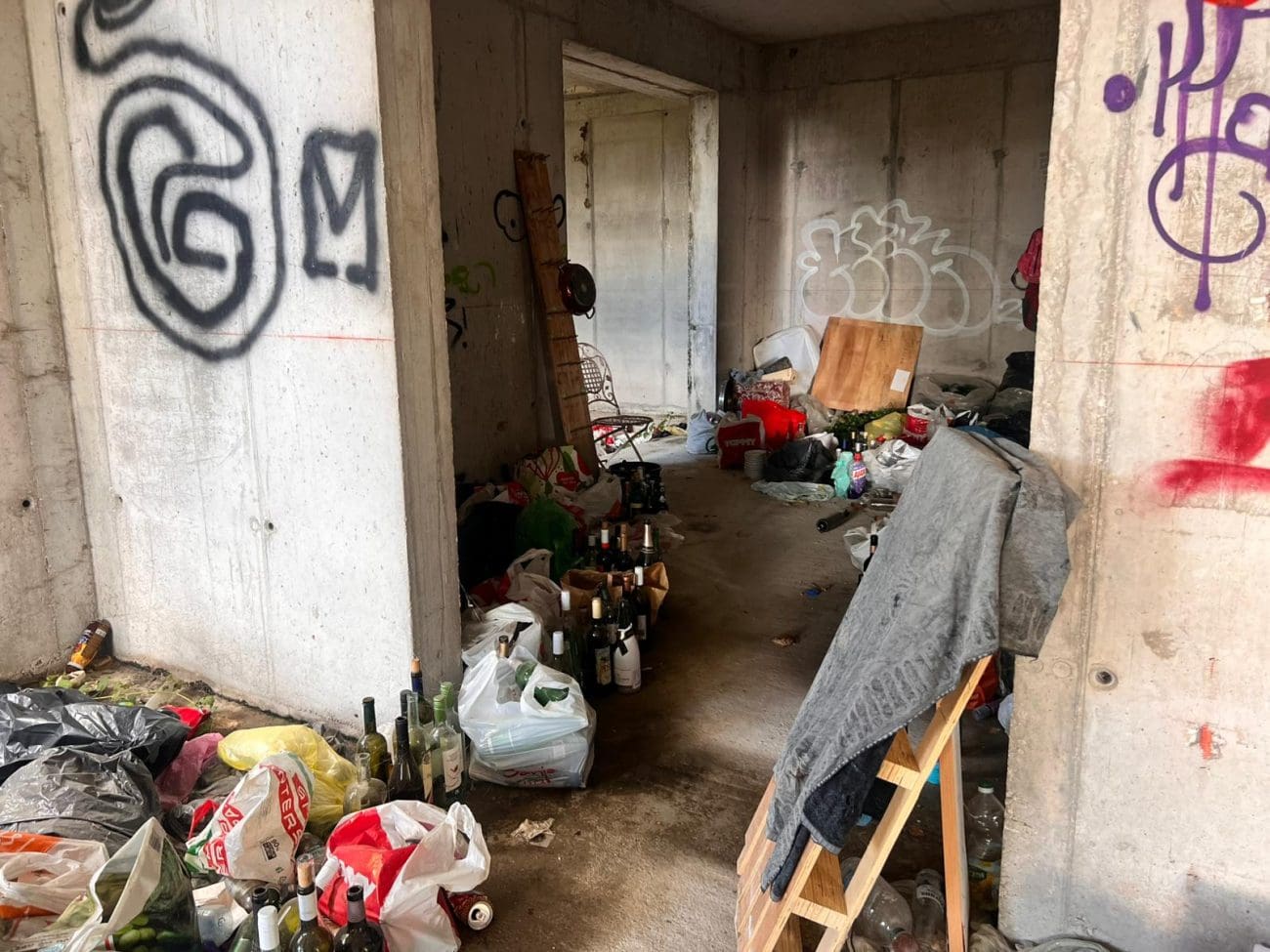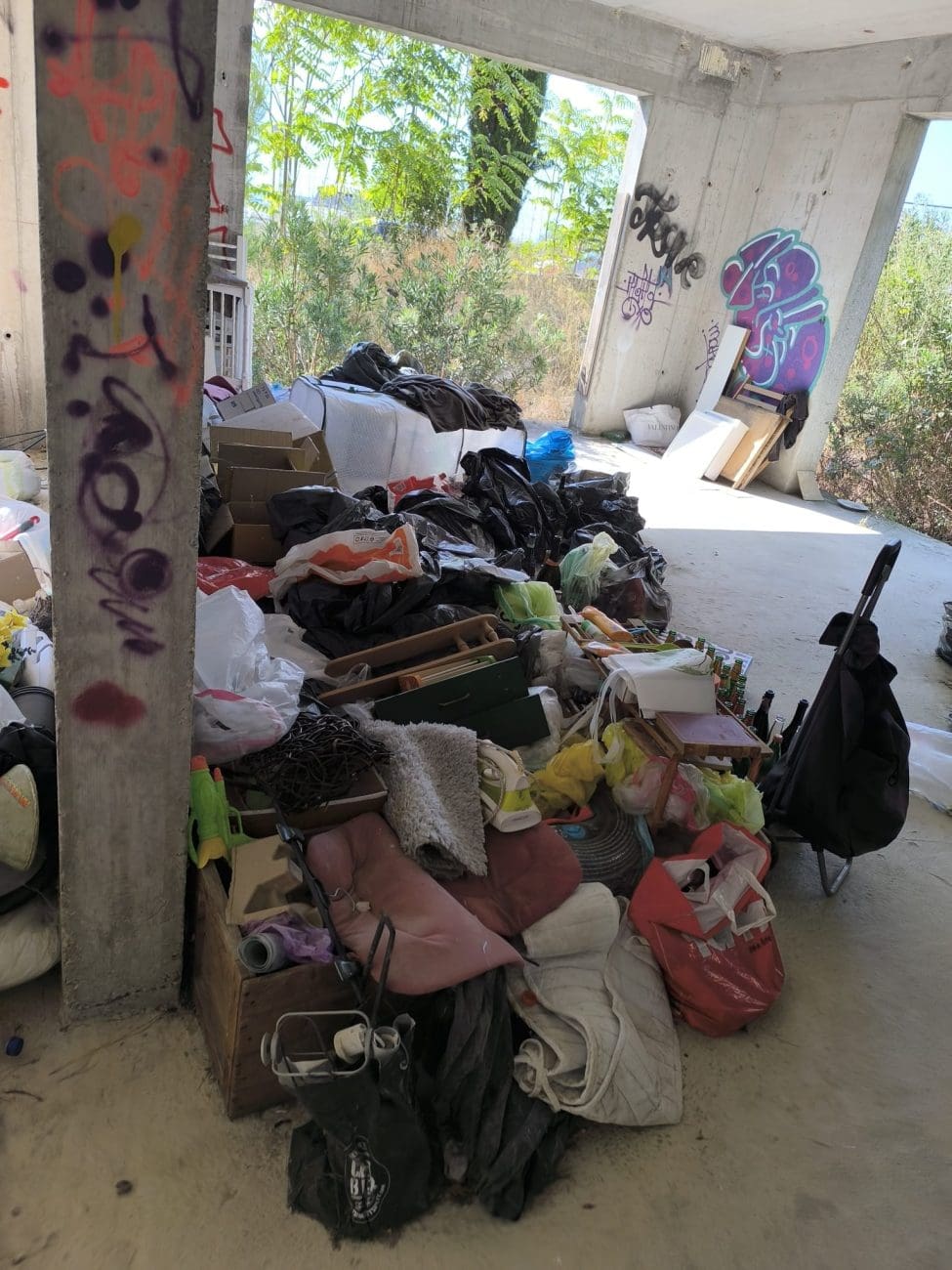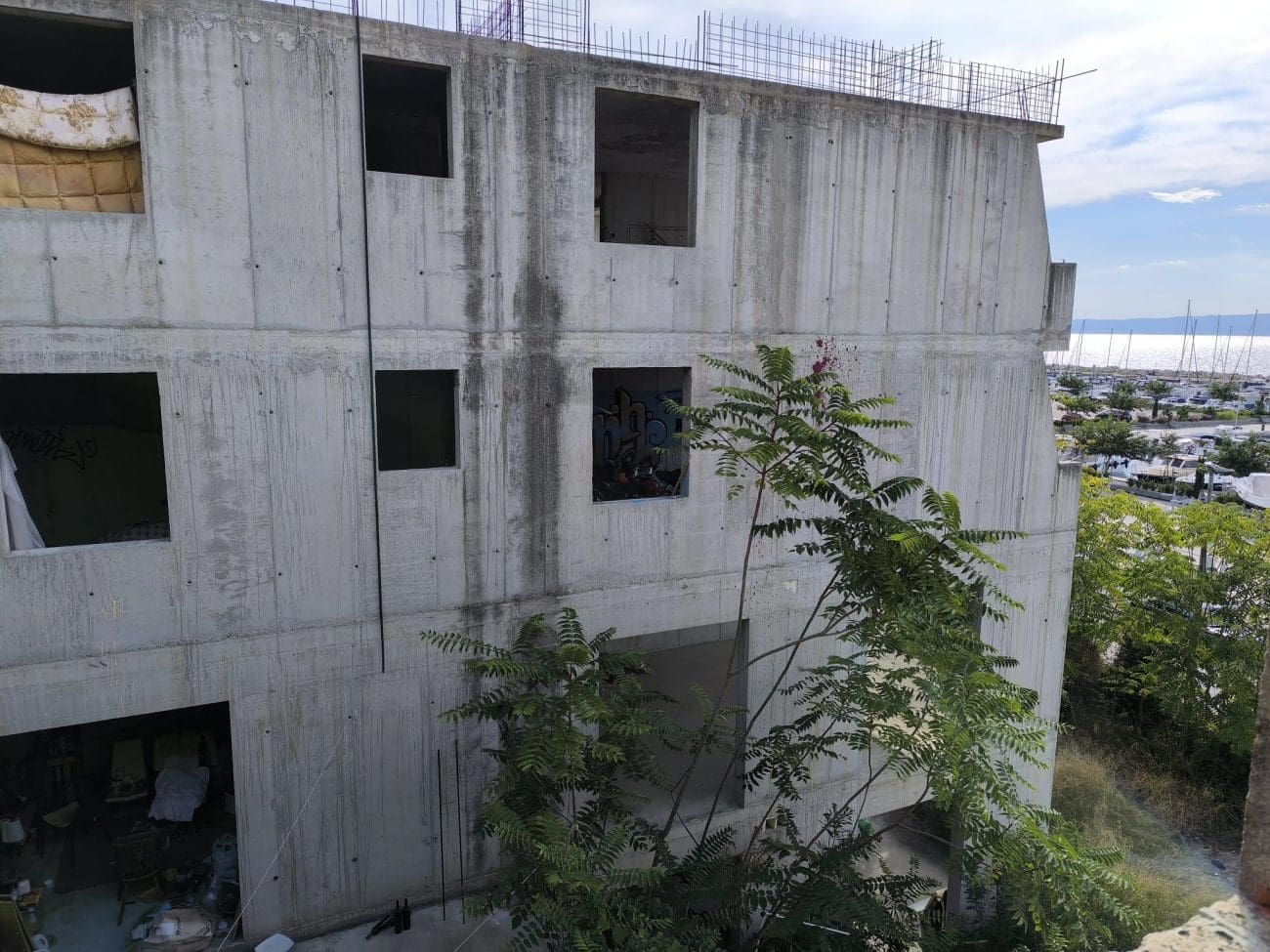 Prostor koji je očito trebao postati stambeni kompleks, danas je divlje odlagalište otpada i utočište beskućnika, a prizori koje smo vidjeli u jednoj od zgrada su nadrealni. Prvi red do mora u Splitu - ruševine u kojima spavaju beskućnici i ovisnici u stotinama kilograma smeća koje donose.