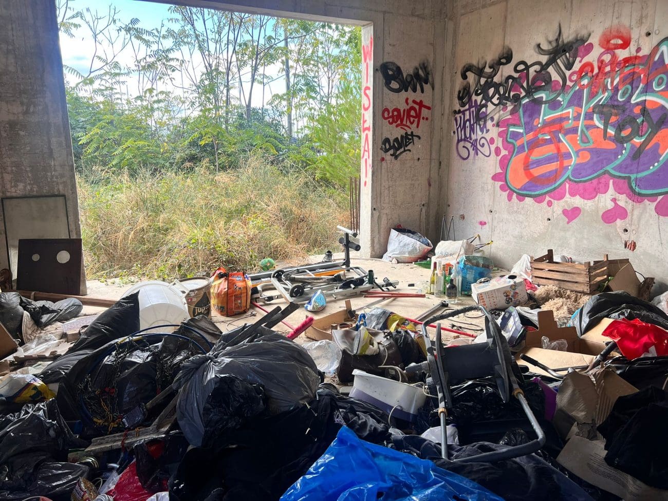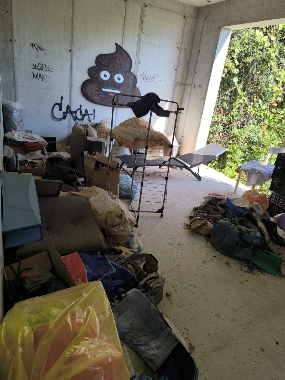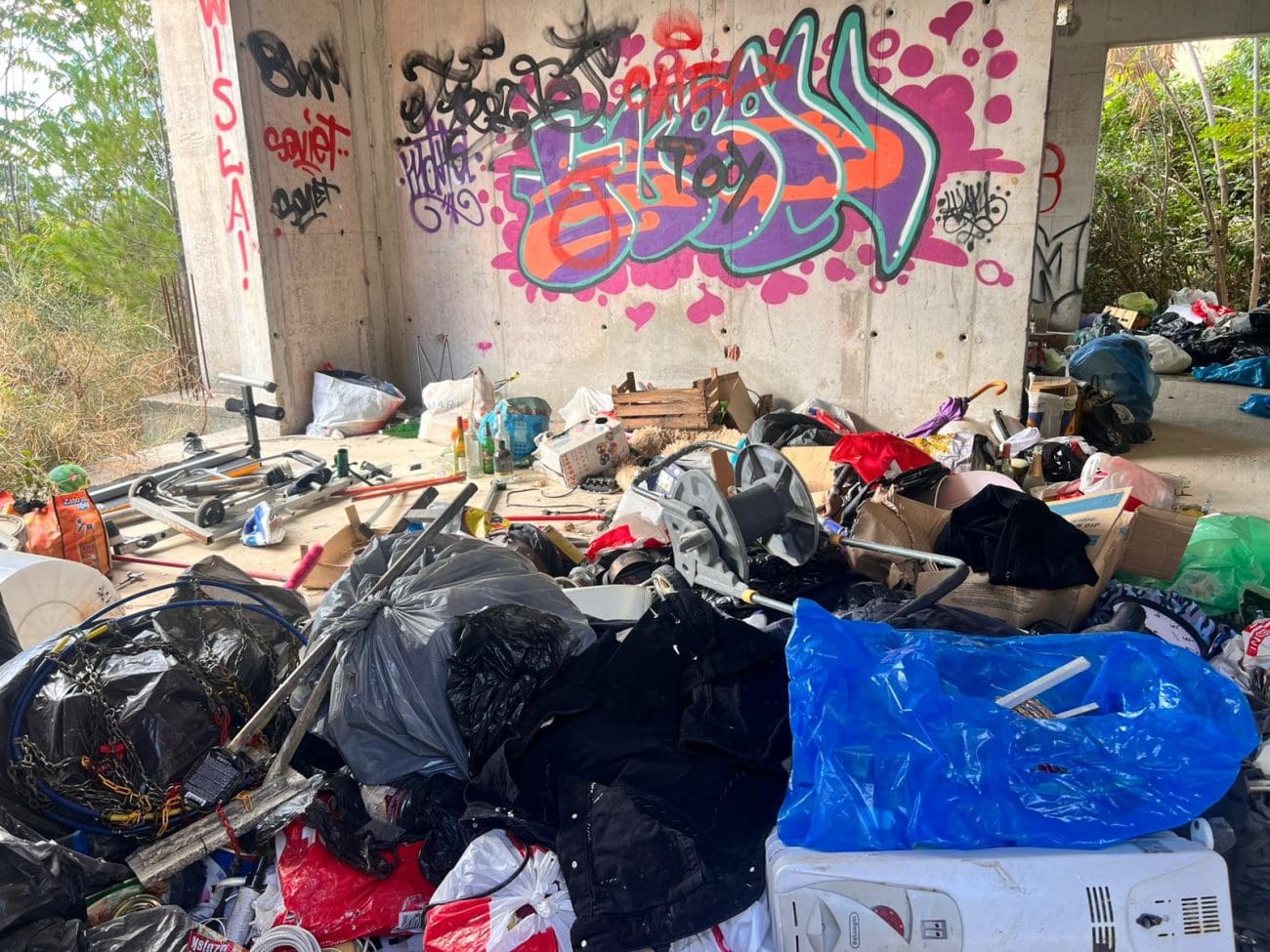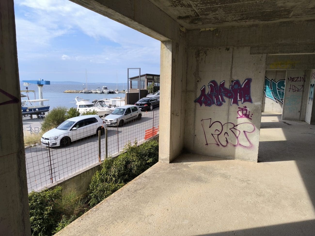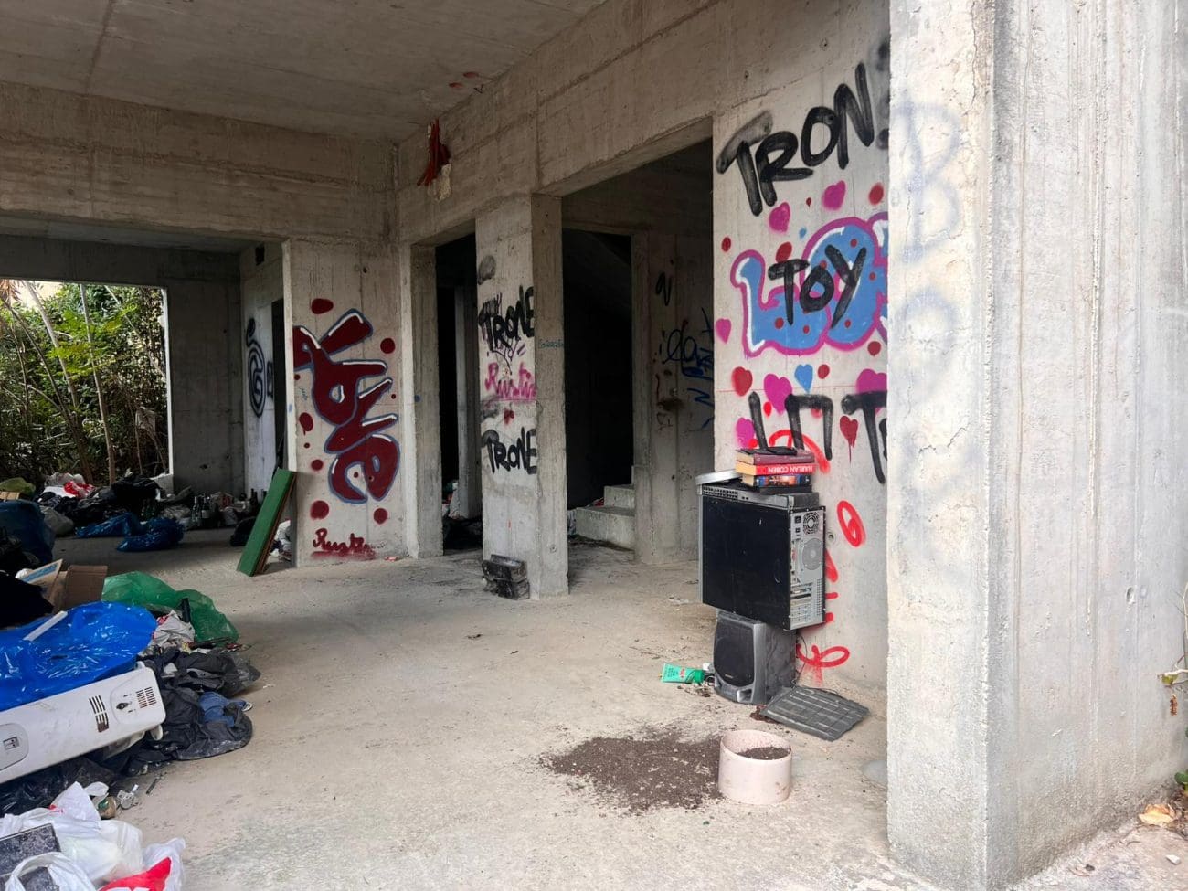 Prostor koji je očito trebao postati stambeni kompleks, danas je divlje odlagalište otpada i utočište beskućnika, a prizori koje smo vidjeli u jednoj od zgrada su nadrealni. Prvi red do mora u Splitu - ruševine u kojima spavaju beskućnici i ovisnici u stotinama kilograma smeća koje donose.