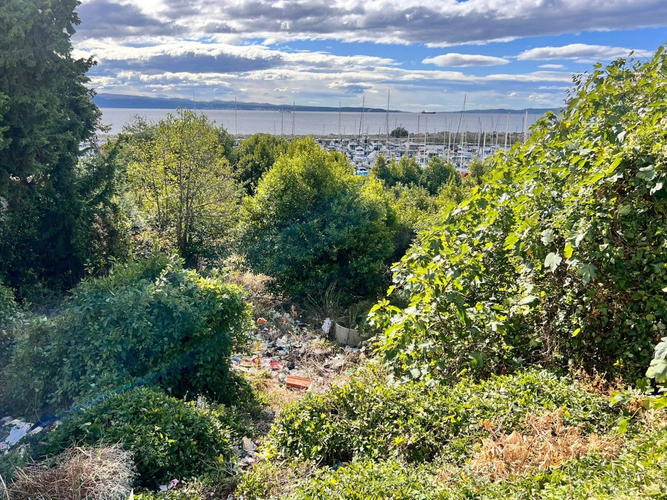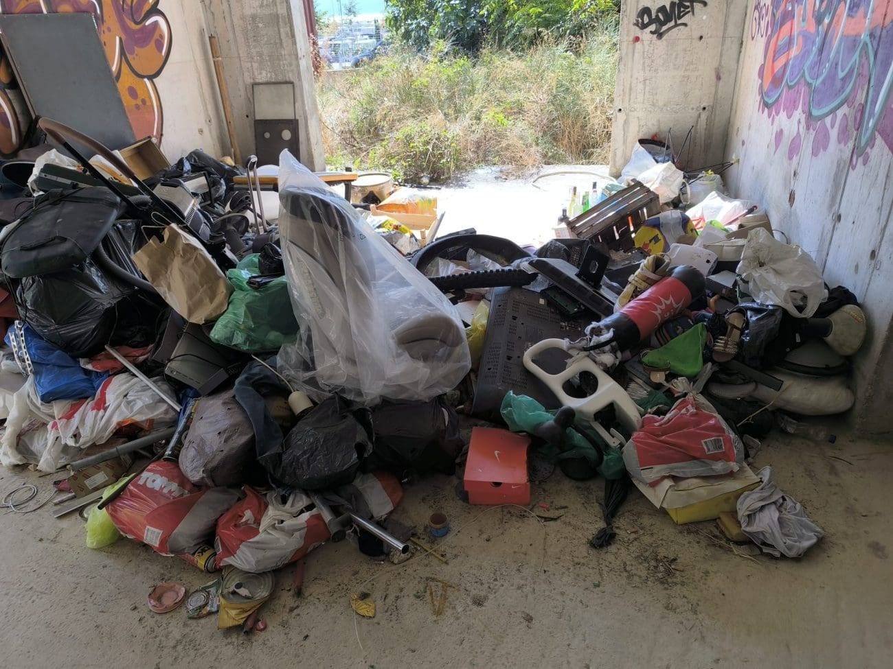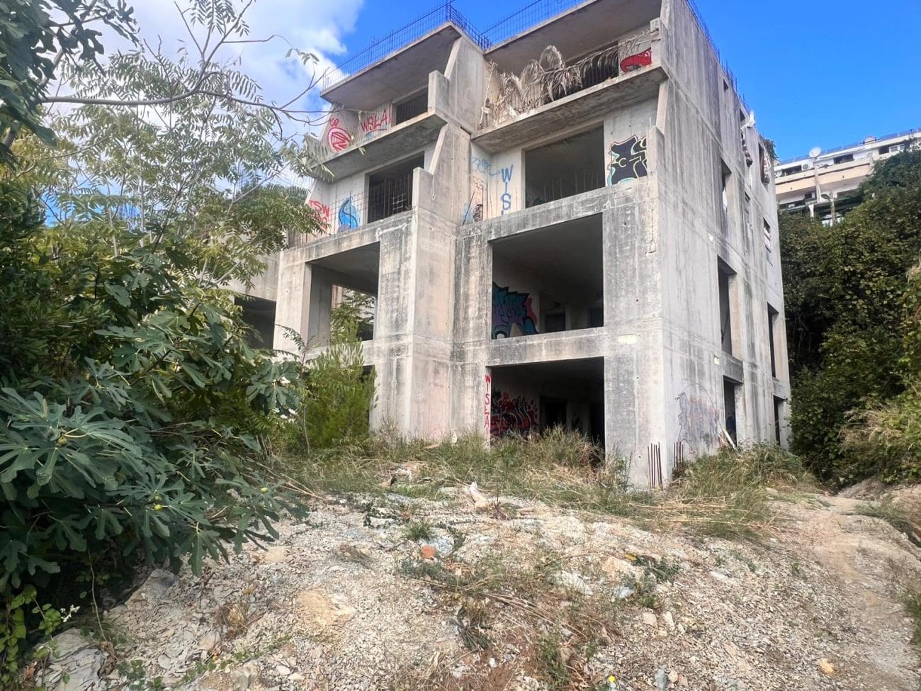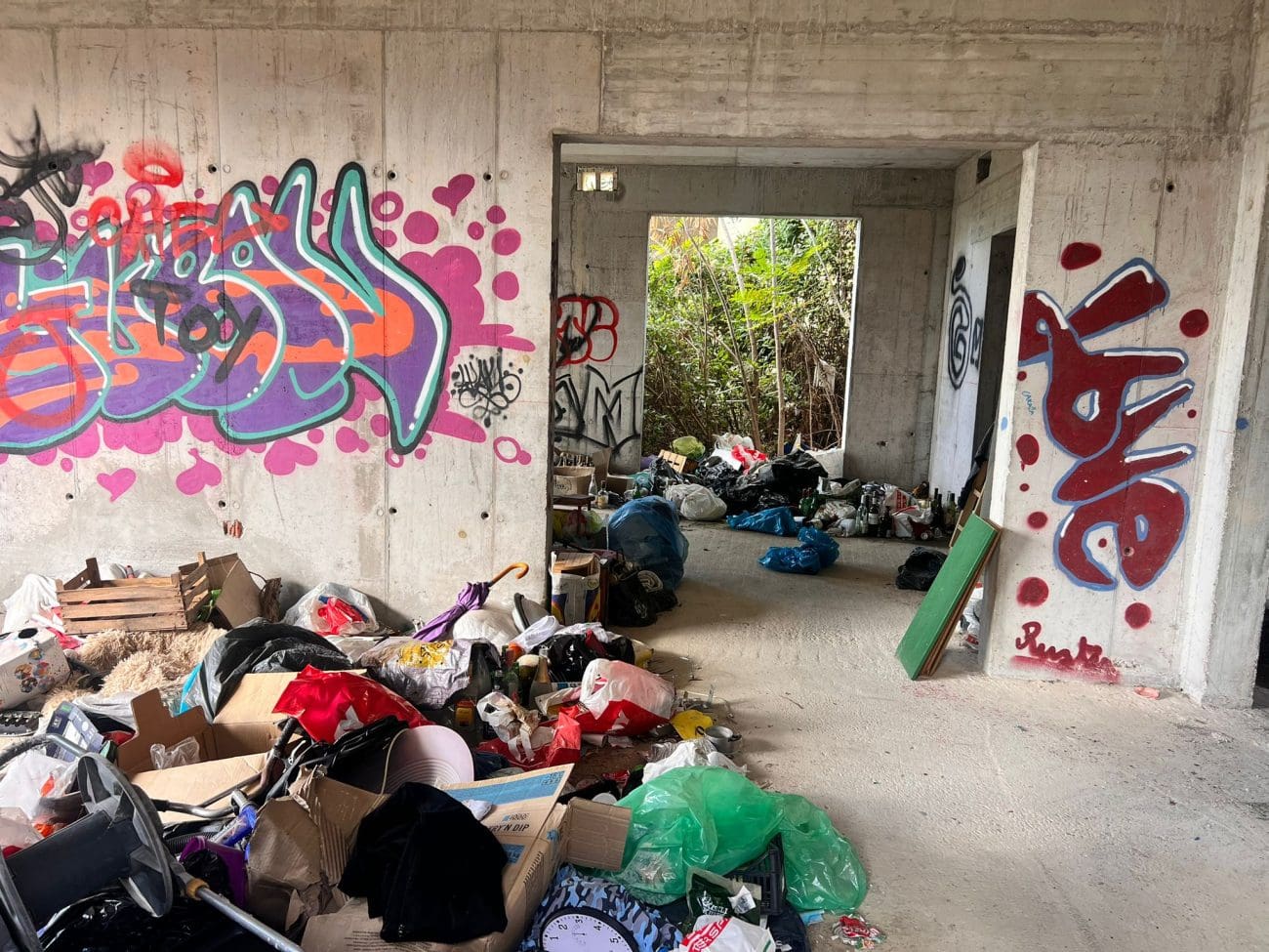 Prostor koji je očito trebao postati stambeni kompleks, danas je divlje odlagalište otpada i utočište beskućnika, a prizori koje smo vidjeli u jednoj od zgrada su nadrealni. Prvi red do mora u Splitu - ruševine u kojima spavaju beskućnici i ovisnici u stotinama kilograma smeća koje donose.