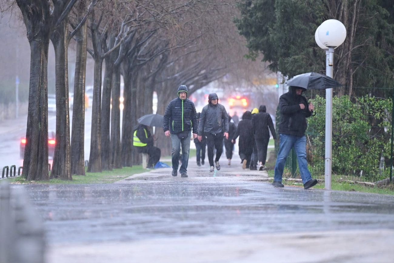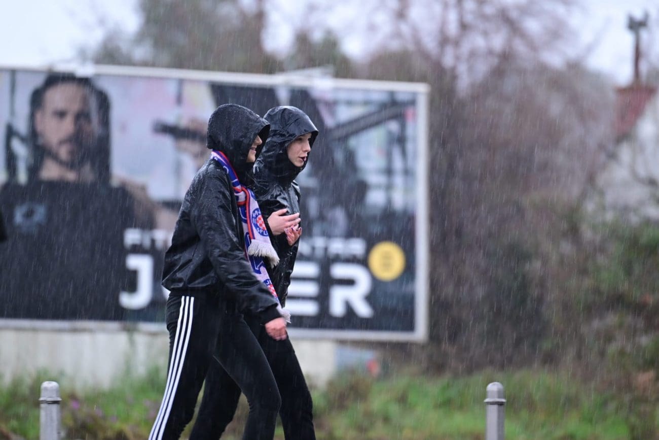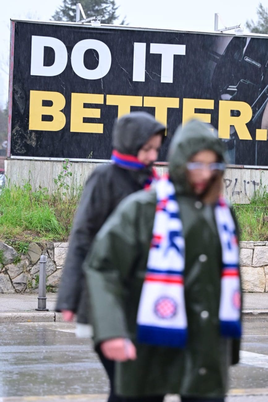 U teškim vremenskim uvjetima, uz kišu i jako jugo, na Poljudu se igra utakmica 19. kola prvenstva u kojoj Hajduk trenutačno gubi 2:0 od Istre. Unatoč lošem vremenu, velik broj navijača dolazi na stadion i pruža podršku Bijelima s tribina.