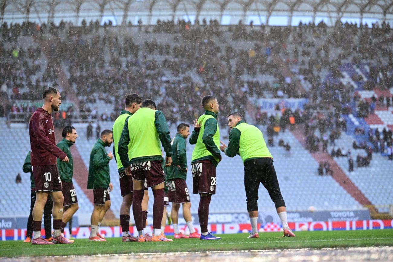 Hajduk pokušava uspostaviti igru i odgovoriti na rani zaostatak, ali težak teren i vremenske prilike otežavaju kontrolu lopte i izgradnju napada. Istra djeluje organizirano i koristi svoje prilike, dok domaći još traže način kako se vratiti u utakmicu.
