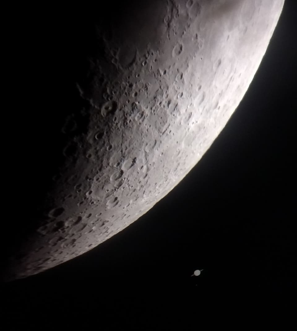 Ove subote smo imali priliku na večernjem nebu vidjeti jednu razmjerno rijetku astronomsku pojavu: okultaciju planeta Saturna Mjesecom! Na svom putu oko Zemlje, naš je prirodni satelit na kratko vrijeme bio pokrio puno veći, ali i puno udaljeniji planet ovjenčan prstenom.