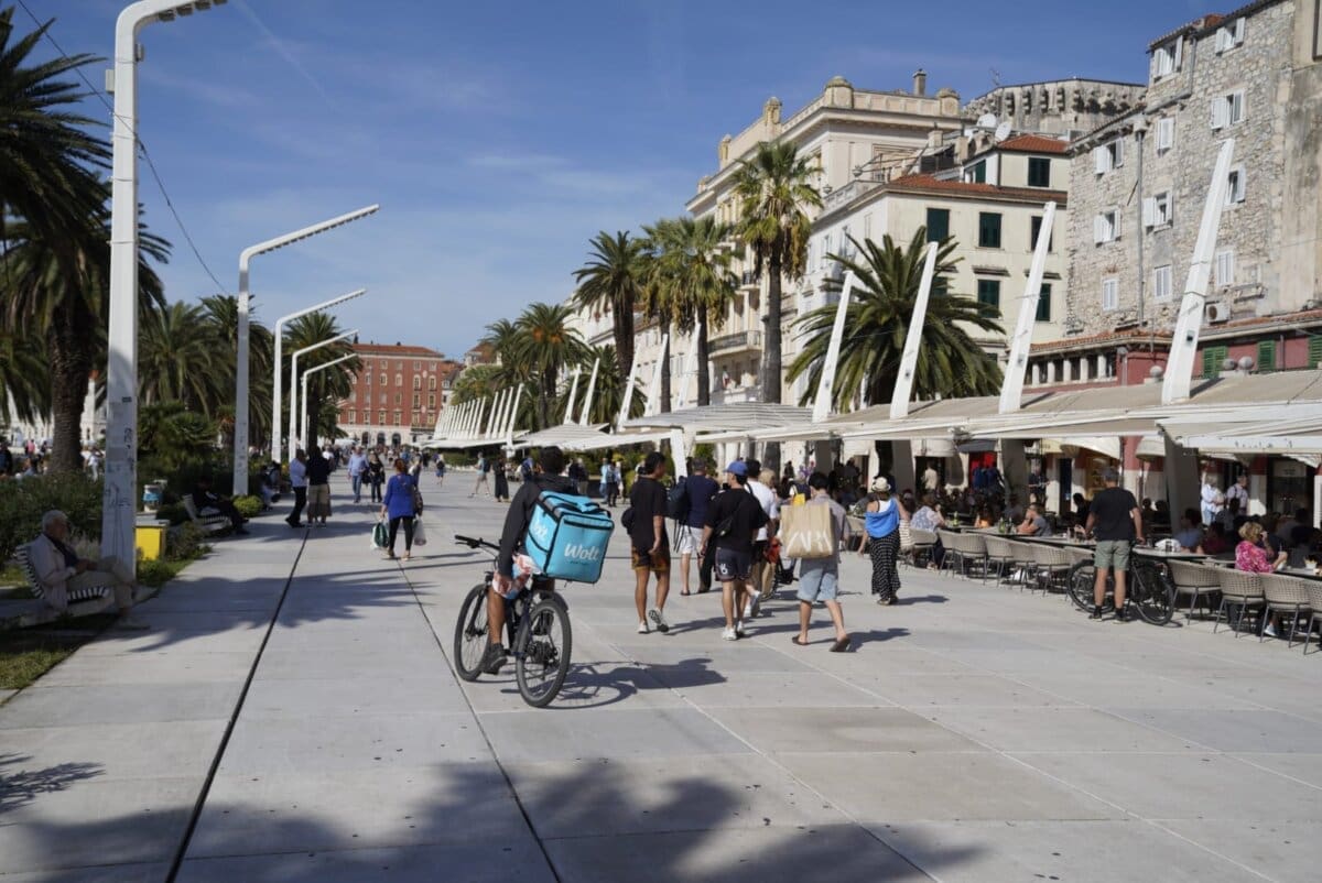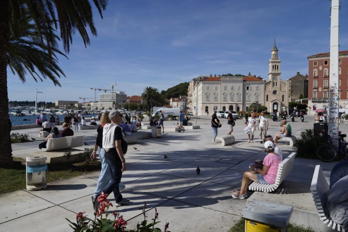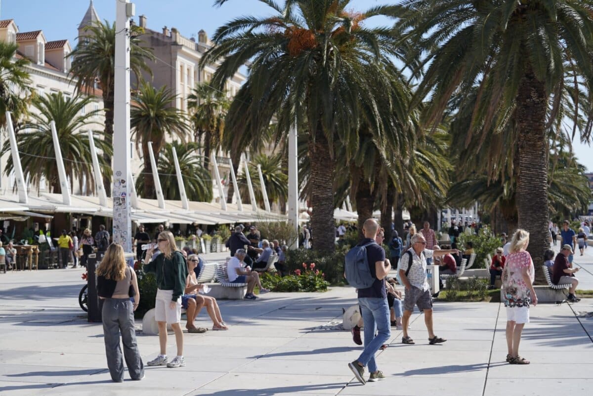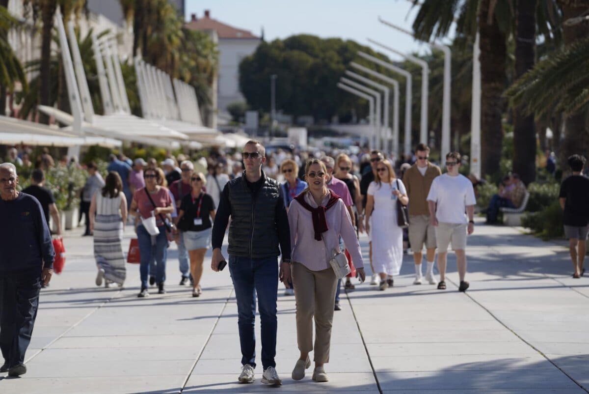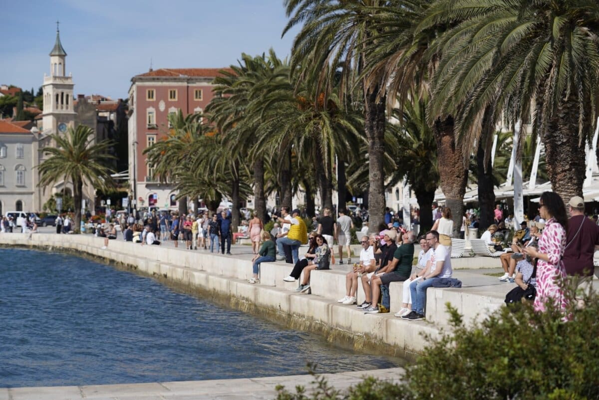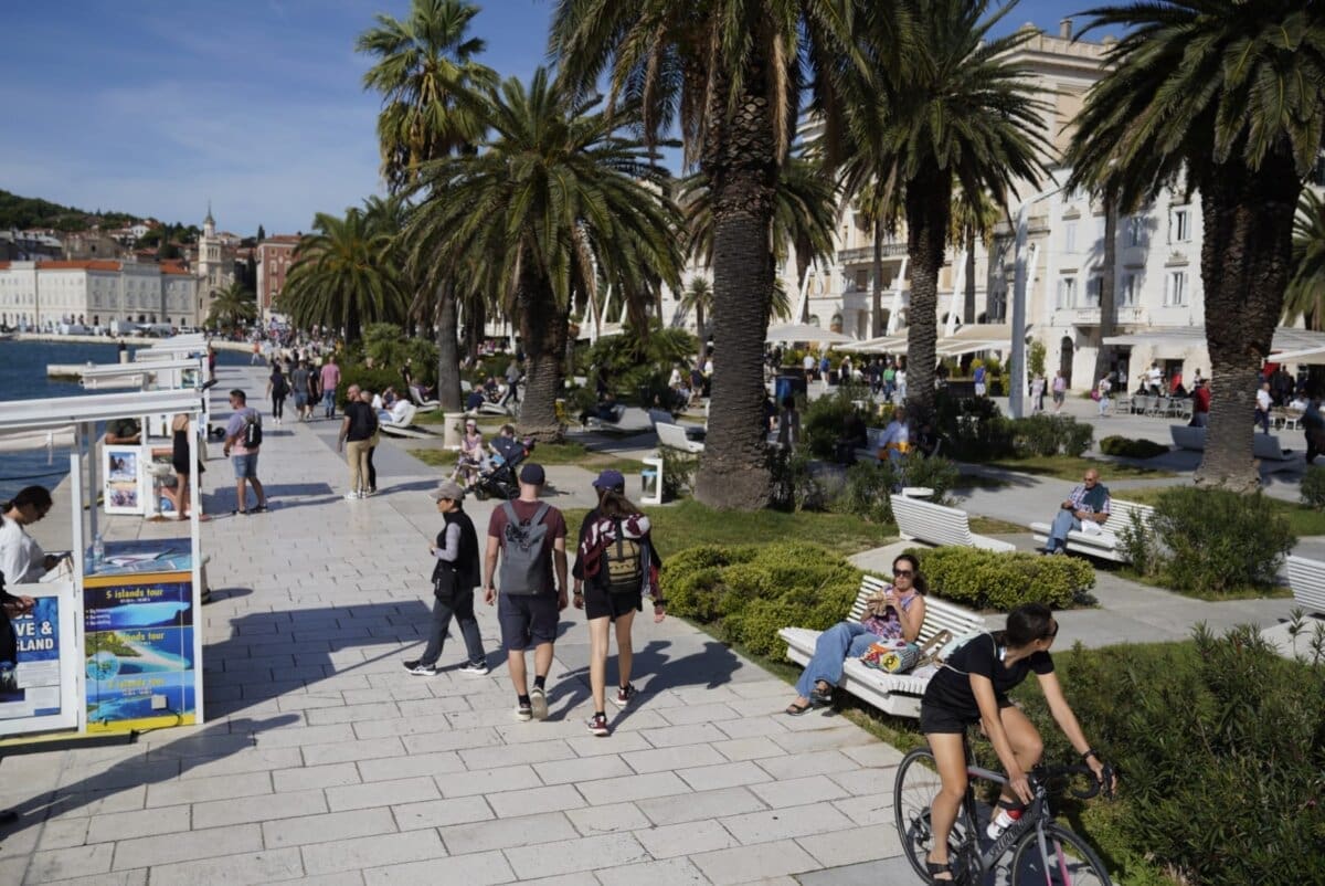 U Splitu je danas zabilježen ugodan dan s temperaturom od 22 stupnja Celzijeva. Na poznatoj šetnici, domaći i strani posjetitelji uživali su u sunčanju na klupicama, dok su se na popularnim štekatima ispijale kave i osvježavajući sokovi