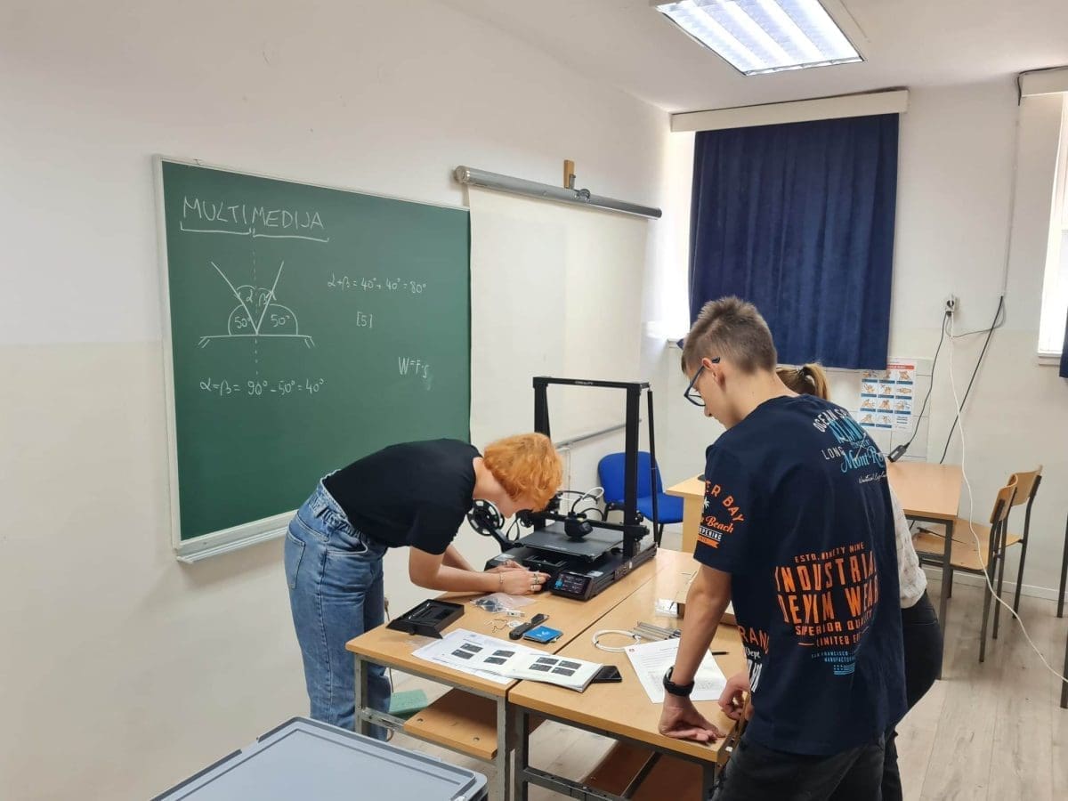 Druga radionica bila je predviđena za učenike starijih razreda osnovne škole. U sklopu radionice upoznali su se s 3D pisačem, njegovim osnovnim karakteristikama i postavkama. 3D pisač smo zajedno montirali, instalirali potreban softver te ga pripremili za daljnje korištenje.