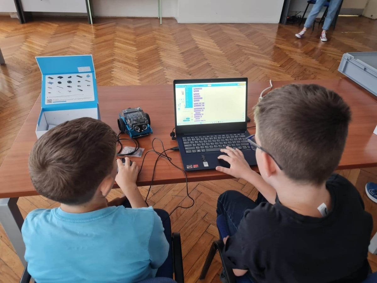 U petak, 2. lipnja 2023., u suradnji s OŠ „Spinut“ i pedagoginjom Fadilom Zoranić, održali smo dvije radionice – radionicu robotike i 3D tehnologije. Radionici robotike prisustvovali su učenici petog razreda iste škole koji su usvojili osnovna znanja o robotima kao programabilnim uređajima, a usvojeno su i primijenili na primjeru robota mBot2. Učenici su oblikovali vlastite programe koje su „uploadali“ na uređaje, a na kraju su se okušali i u upravljanju robotom pomoću daljinskog upravljača na zadatku „provođenja“ loptice po ocrtanoj stazi.