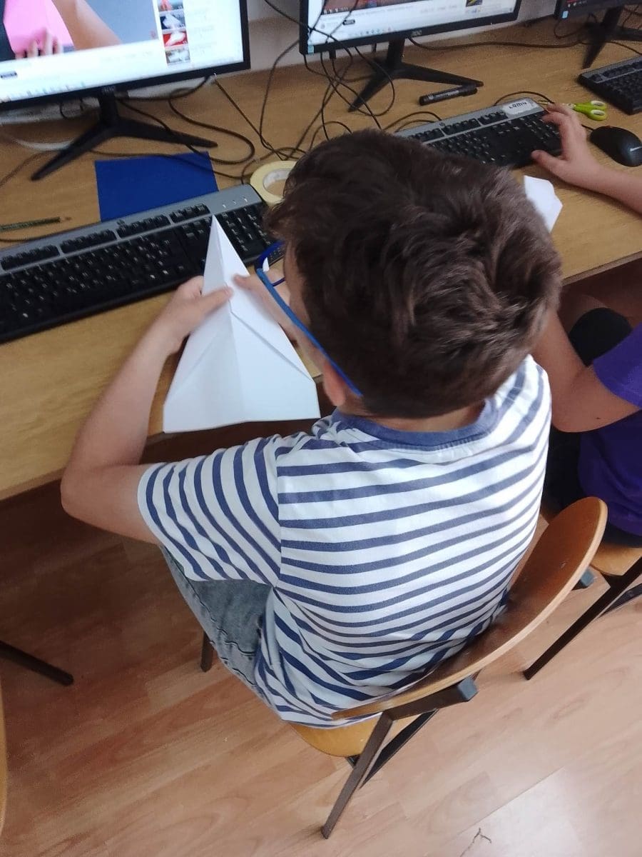 Navedenom tehnikom izradili su vlastite papirnate klizače koje su isprobali u sklopu malog natjecanja. Cilj zadatka bio je izraditi papirnati klizač koji će letjeti što dalje i vremenski duže.