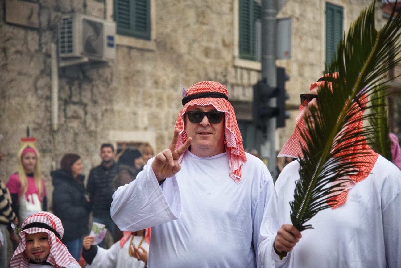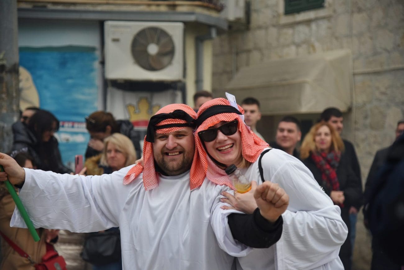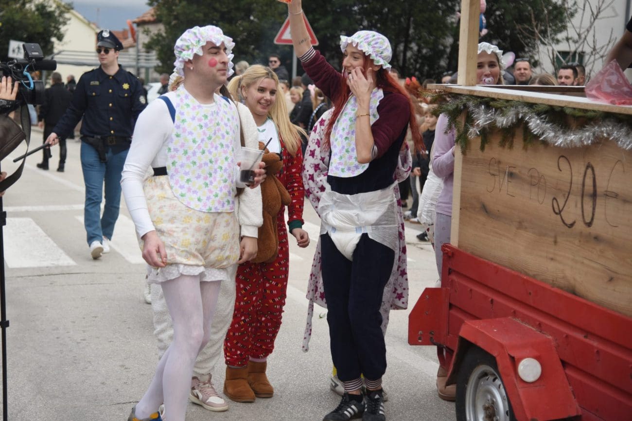 U 15 sati povorka je krenula iz Marine Kaštela preko donjokaštelanske ceste do brca u Kaštel Kambelovcu. Kako to uvijek biva u Kaštelima u točkama su na humorističan način prikazani događaji koji su nas zadesili u prošloj godini. Točke "Vojna obuka", "Dubai " i "Biciklistička bojna" privukle su najviše pažnje, a i nasmijale sve okupljene.