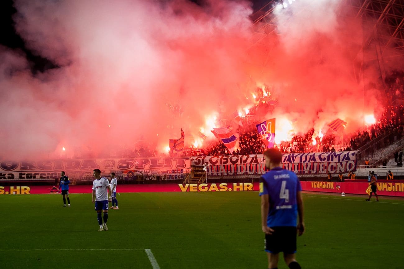 Tijekom utakmice na Poljudu navijači su u jednom trenutku zapalili veći broj baklji, zbog čega se nad stadionom podigao gust dim, a cijelo je područje nakratko bilo obavijeno crvenim odsjajem. Vidljivost je bila značajno smanjena, a tribine se u pojedinim trenucima gotovo nisu vidjele.