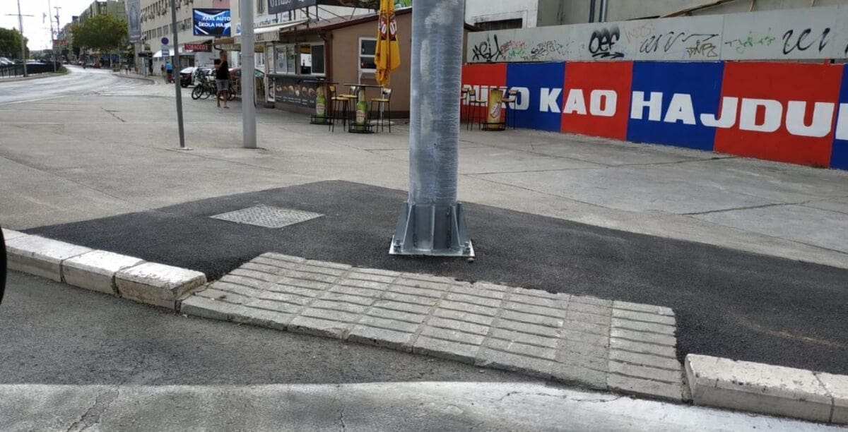 Naime, u Ulici Domovinskog rata na pješačkom prijelazu, semafor je nelogično postavljen na sredinu koja pješacima, a posebice biciklistima onemogućuje nesmetan prolaz.