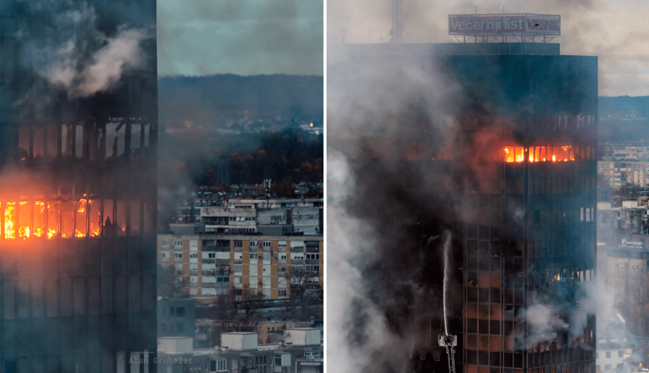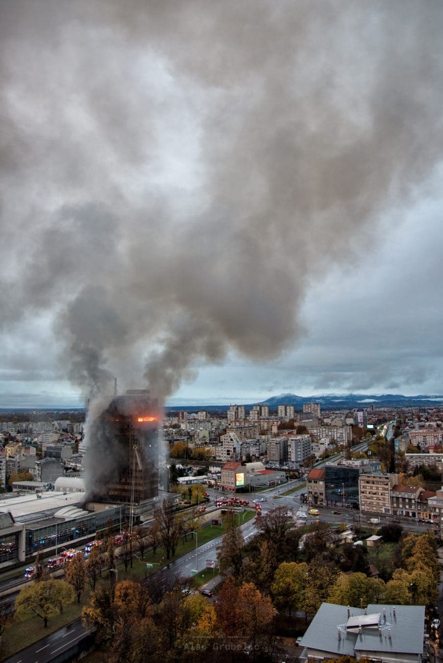 Vatra je buknula oko 23 sata i vrlo se brzo širila okomito, zahvaćajući više katova te krovište. Zbog razmjera požara angažiran je velik broj ljudi i tehničke opreme. Uzrok još nije poznat.