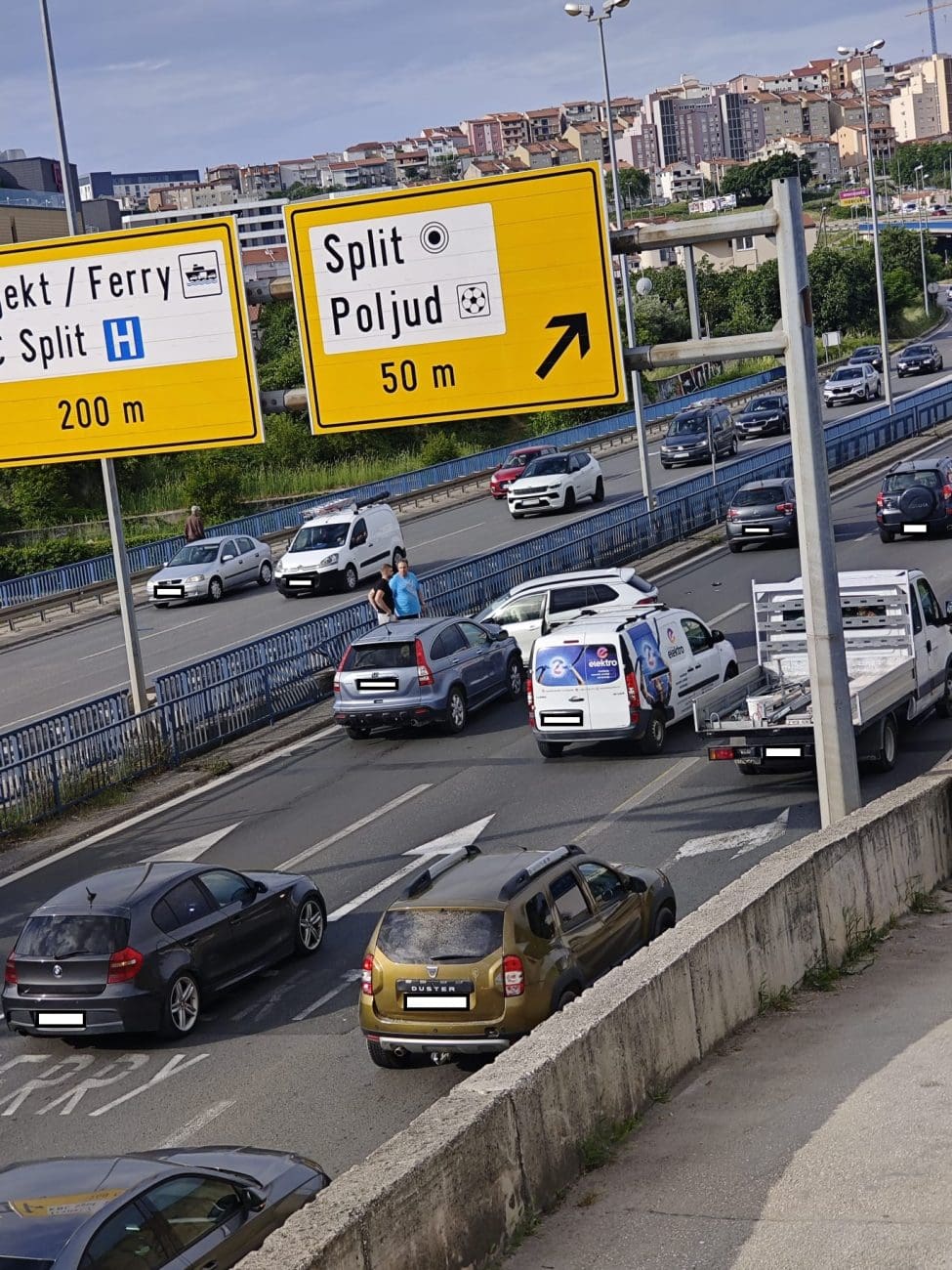 Zbog nesreće se stvorila veća prometna kolona, a vozači koji ulaze u grad iz smjera Solina mole se za dodatan oprez i strpljenje dok nadležne službe ne uklone vozila i normaliziraju promet.