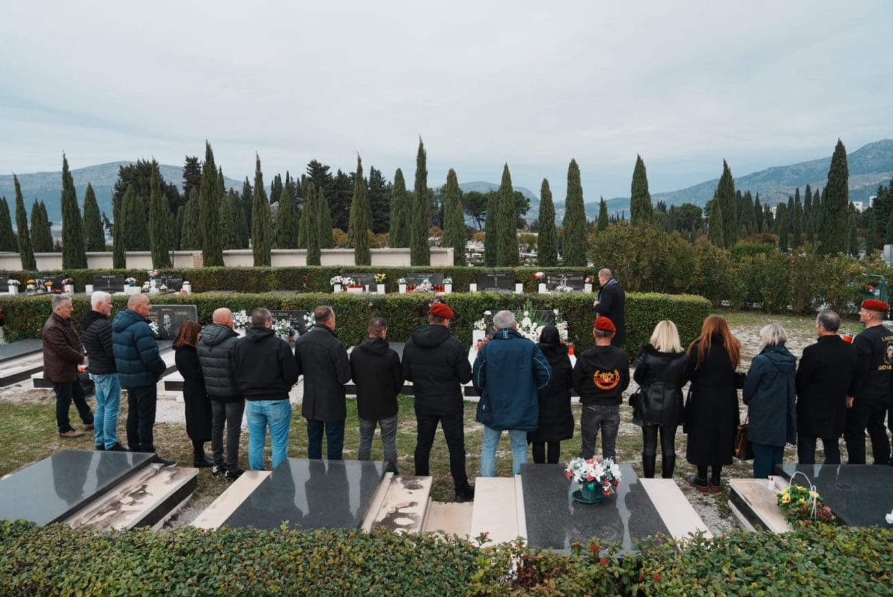 Veterani 1.satnije 3. bojne 4. gbr se okupili su se u 16 sati na parkingu groblja Lovrinac u Splitu, a zatim otišli do mjesta posljednjeg počivališta brigadira Ante Čokolića i obilježili 1.godišnjicu njegove smrti.