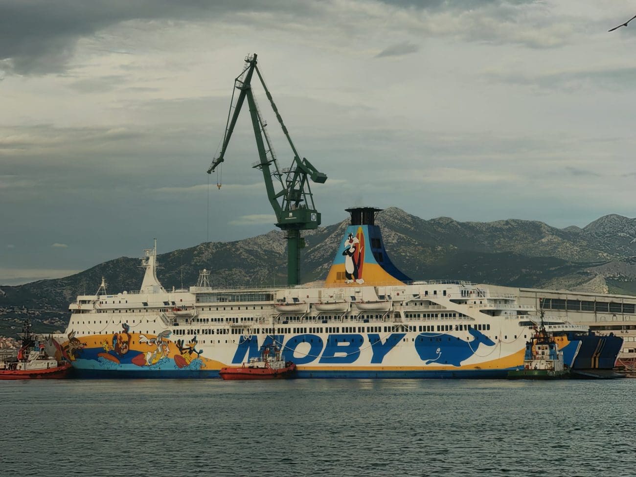 U utorak poslijepodne tegljač Protug 75 započeo je s otegljenjem talijanskog putničkog broda Moby Drea, koji je prethodnih mjesec dana bio privezan u Brodosplitovoj luci zbog uklanjanja 250 tona azbestnih panela iz kabina.