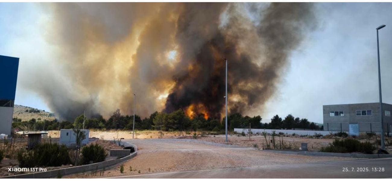 ''Požar ulazi u gospodarsku zoni Podi i na taj način ugrožava deponij Bikarac. Sve raspoložive vatrogasne snage su na terenu, uključujući i zračne snage. Aktivno radimo, za sada nemamo izgorenih objekata te se trudimo da se to ni ne dogodi'', kazao je Volimir Milošević zapovjednik JVP Šibenik.