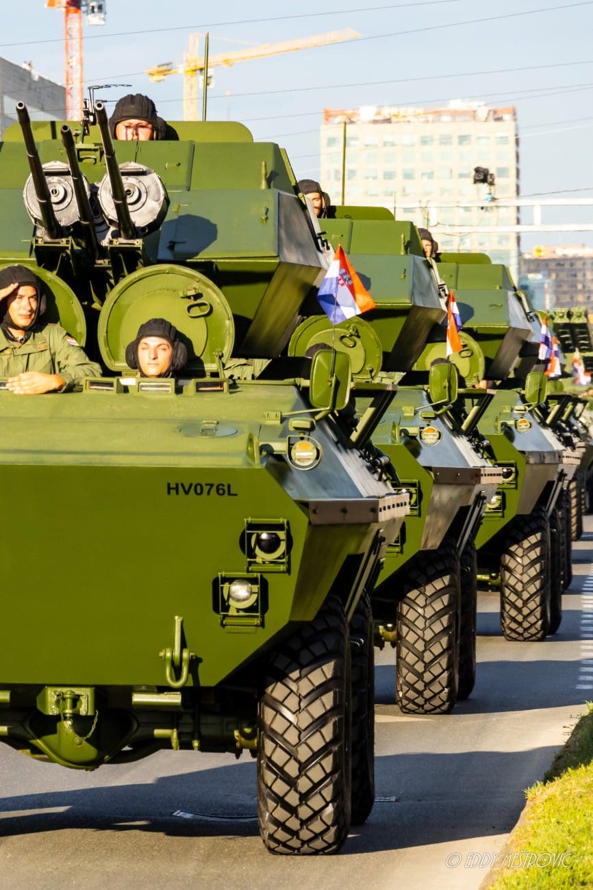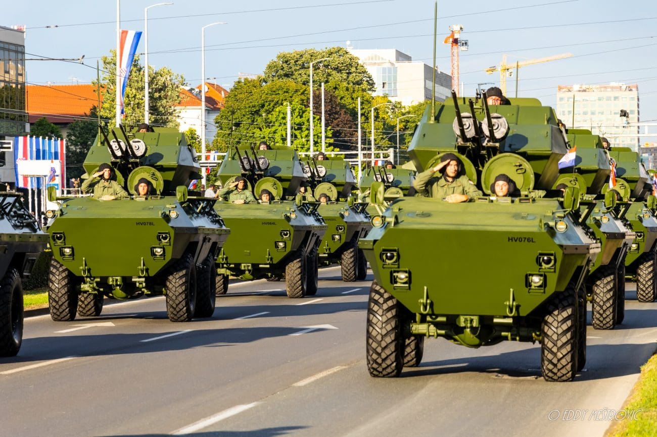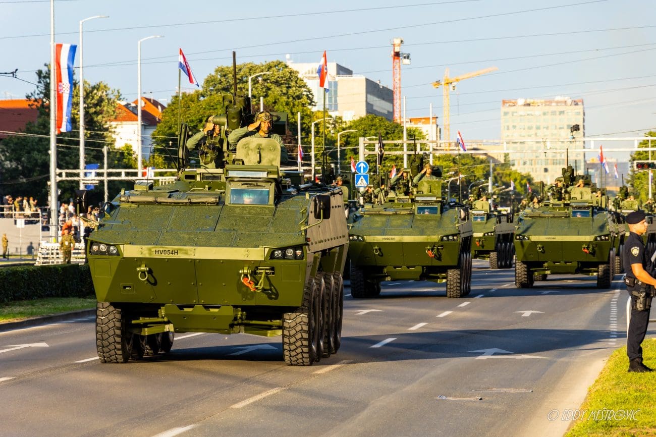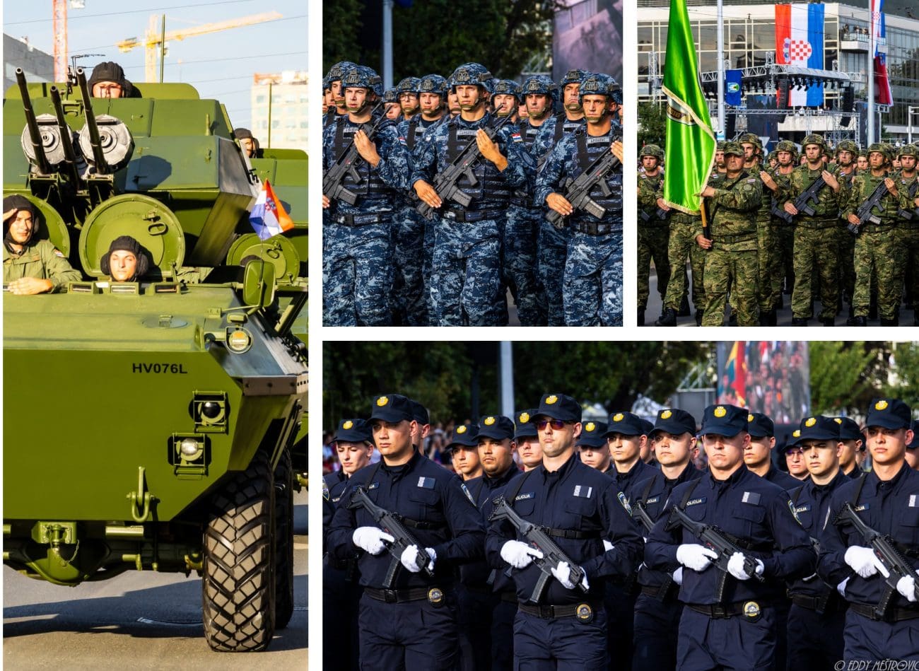 Među prikazanom opremom posebno su se istaknuli tenkovi M‑84, Bradleyevi borbeni vozila, oklopnjaci Patria te dronovi Bayraktar i FPV platforme, a građani su imali priliku vidjeti i helikoptere i lovce Rafale u zračnoj paradi s više od 40 različitih letjelica.