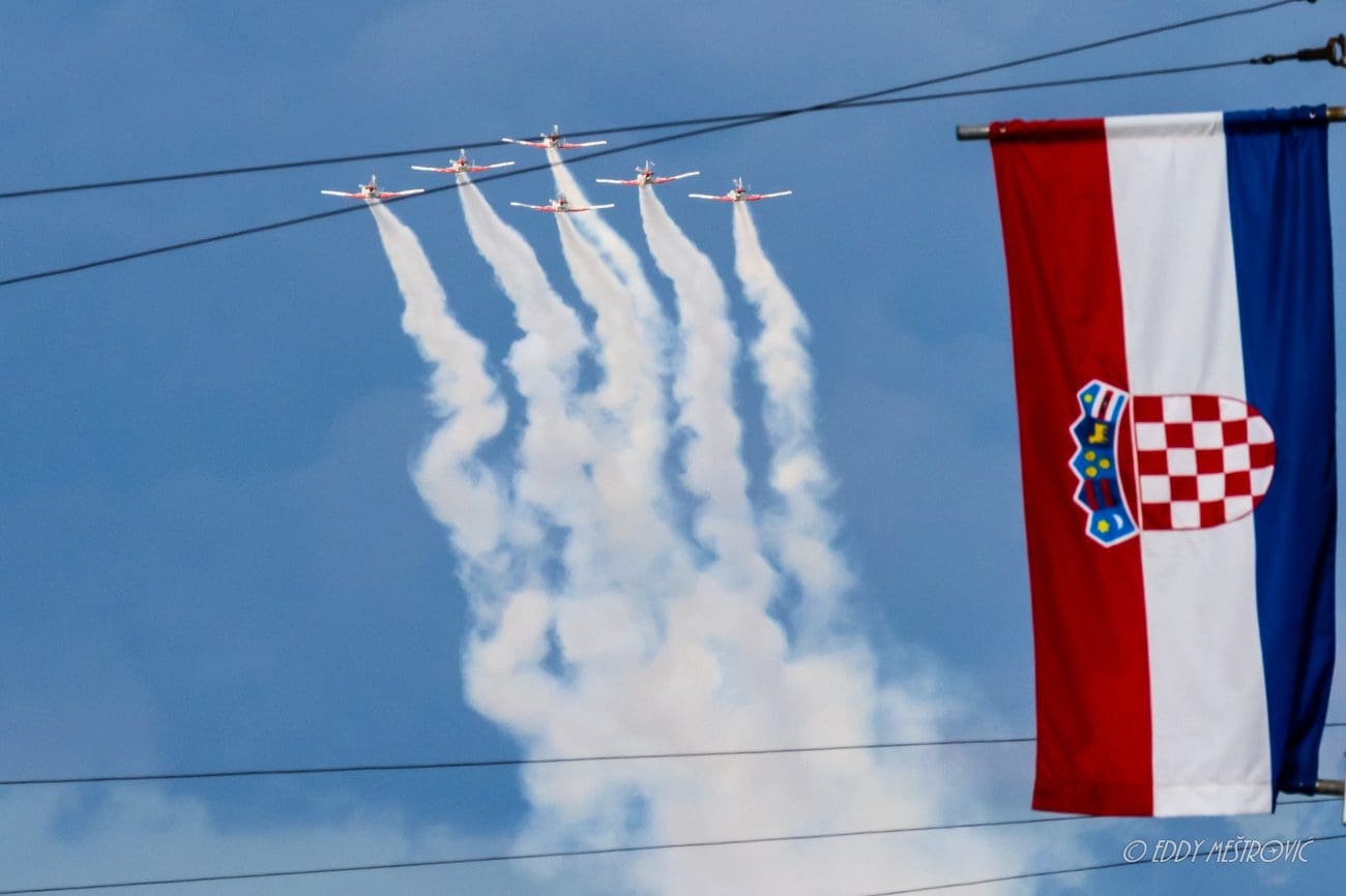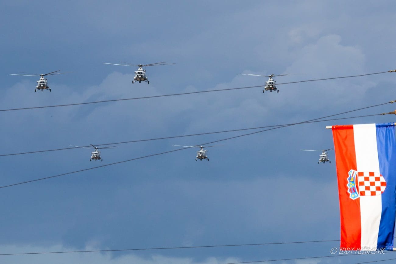 Mimohod je zaključio veličanstven prelet Francuskih borbenih aviona Rafale, njih najmanje šest, uz prateće helikoptere iz sastava MUP‑a i HRZ‑a.