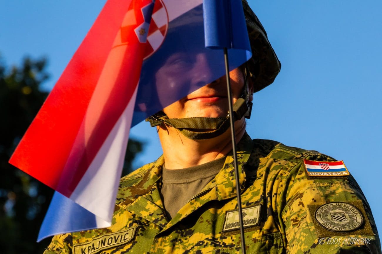 Poseban je trenutak nastupio kada su veterani svečano predali zastavu, čiji uzorak se vijori na Kninskoj tvrđavi još od 5. kolovoza 1995., mladim kadetima HV-a i MUP‑a kao simbol trajne povezanosti generacija.