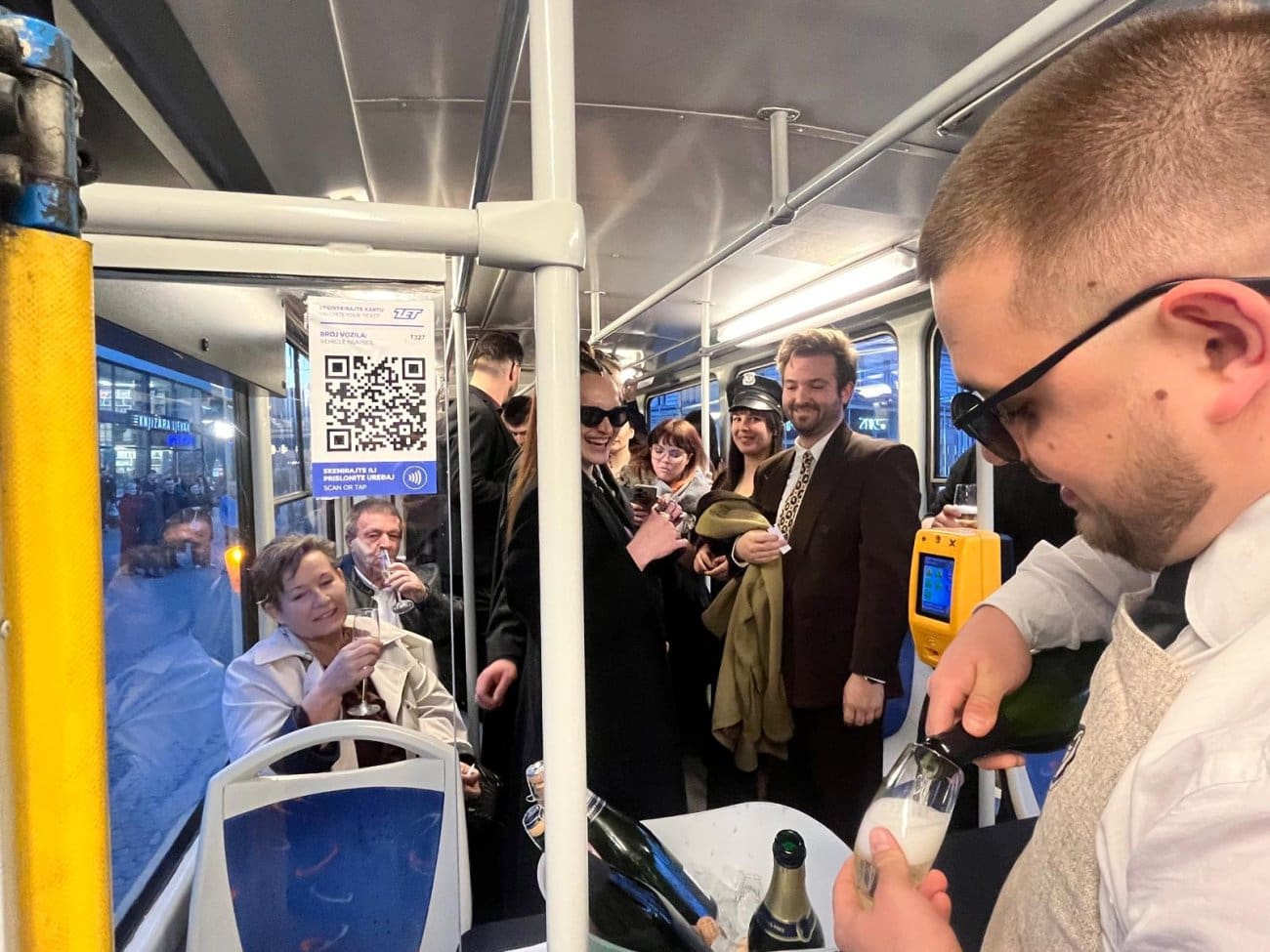 Posebno ukrašen tramvaj vozio je zagrebačkim ulicama pretvoren u pokretni prostor za slavlje. Unutrašnjost je bila ispunjena gostima, smijehom i glazbom, a atmosfera je podsjećala na pravu malu svadbenu povorku na tračnicama. Mladenci su, okruženi obitelji i prijateljima, nazdravljali i slavili dok je tramvaj prolazio gradom.