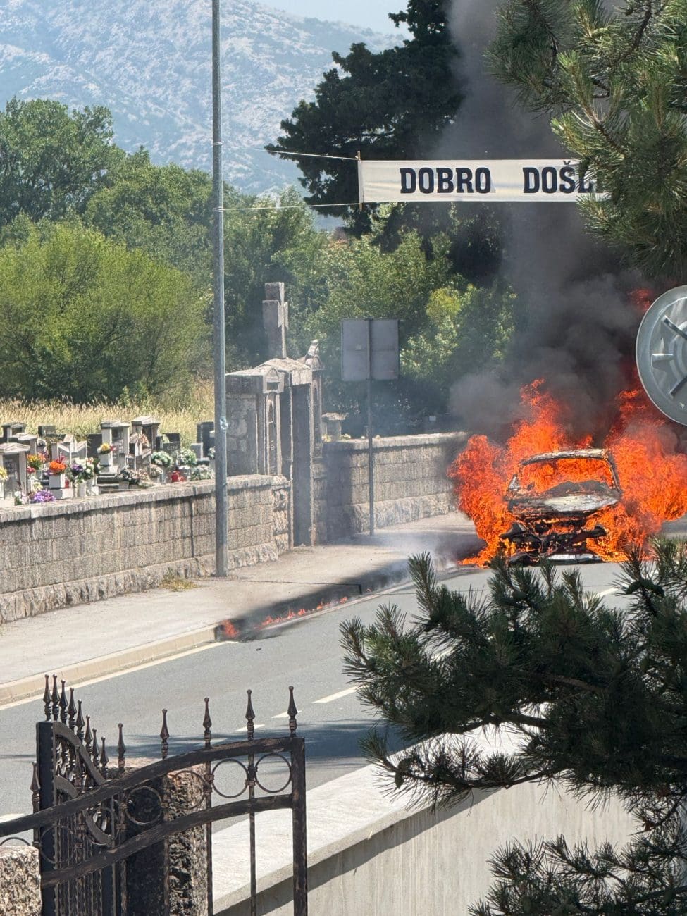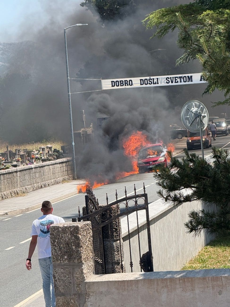 Automobil se zapalio nasred ceste, najvjerojatnije u vožnji, a na teren su odmah izašli vatrogasci kako bi ugasili požar. Na teren je izašla i policija te će utvrditi okolnosti događaja.