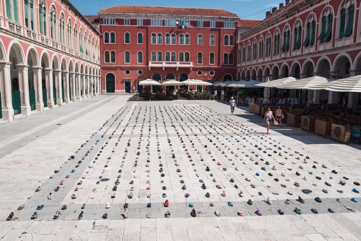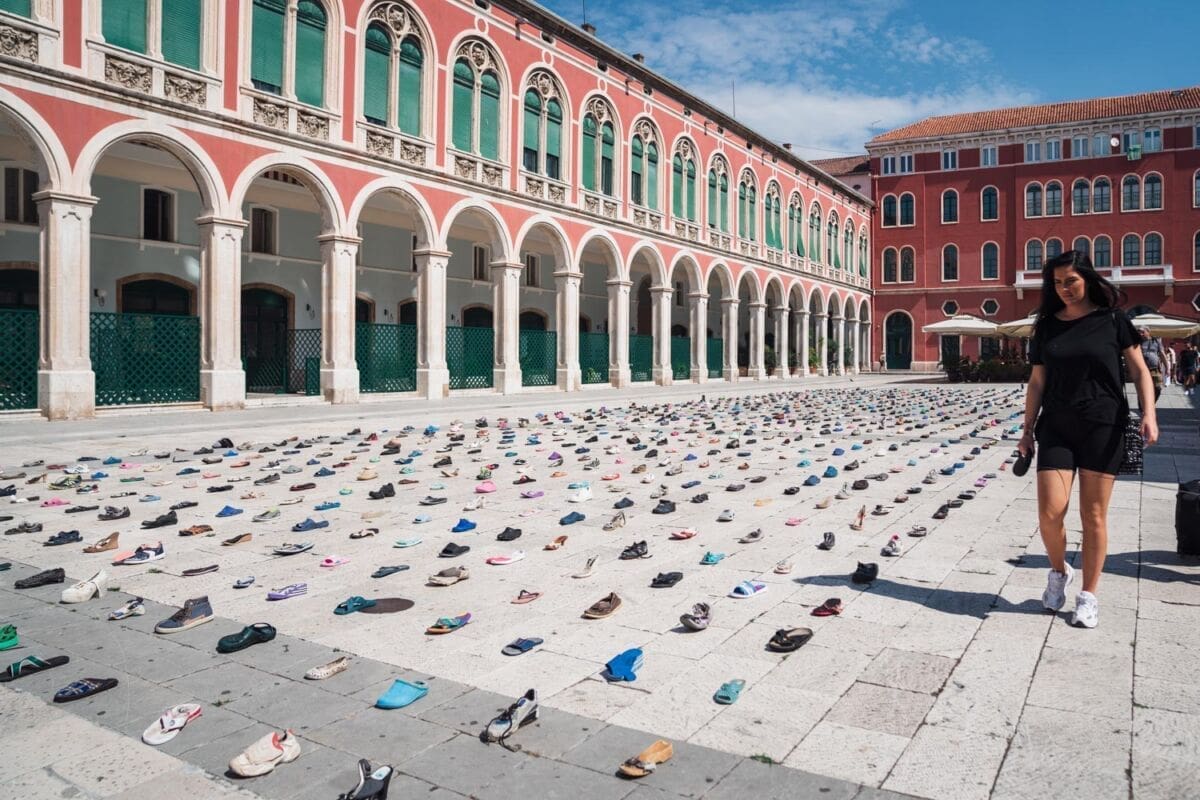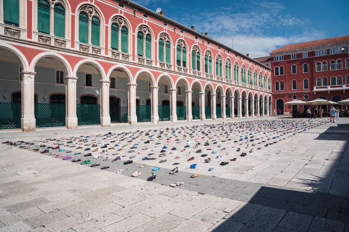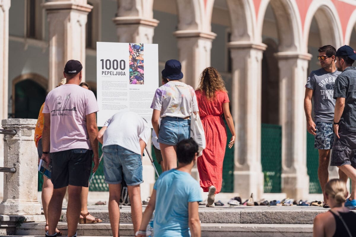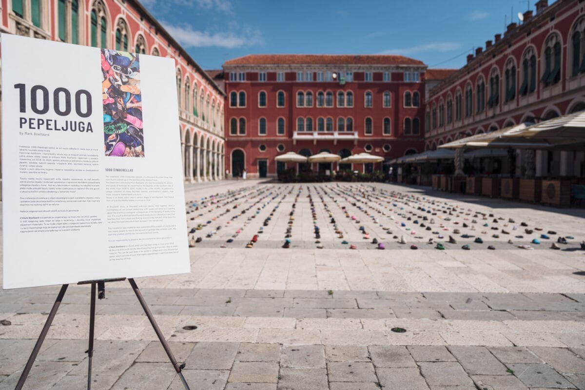 Od 9 sati ujutro na splitskim Prokurativama tisuću cipela pričat će svoje priče slučajnim i namjernim prolaznicima. Njihova raznolikost je zapanjujuća – ima tu sportskih tenisica, zimskih čizama, štikli, plastičnih sandala i dječjih kroksi, svih mogućih oblika, boja, materijala i veličina, zaista – ponešto za svakoga. Navodno je Ernest Hemingway autor slavne „priče od 6 riječi“ koja glasi „Nekorišten par dječjih cipela na prodaju.“ A sad zamislite količinu priča iz njih tisuću.
