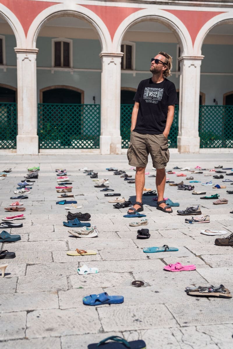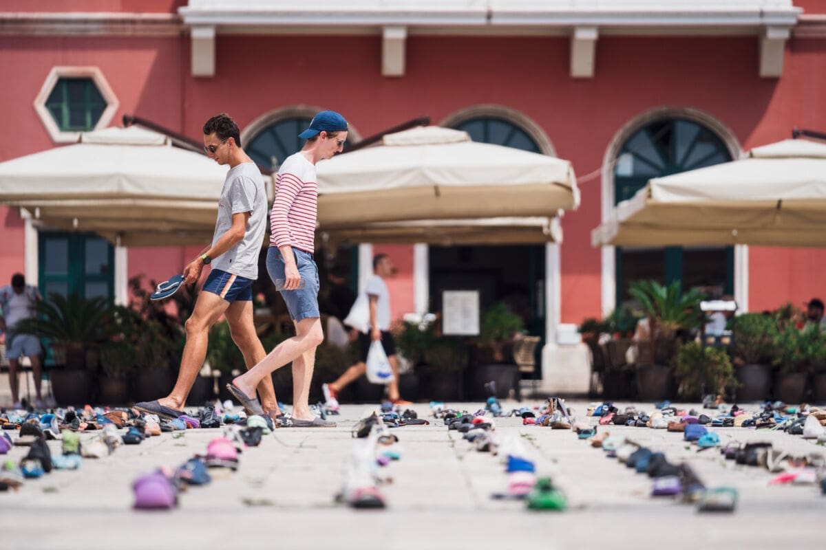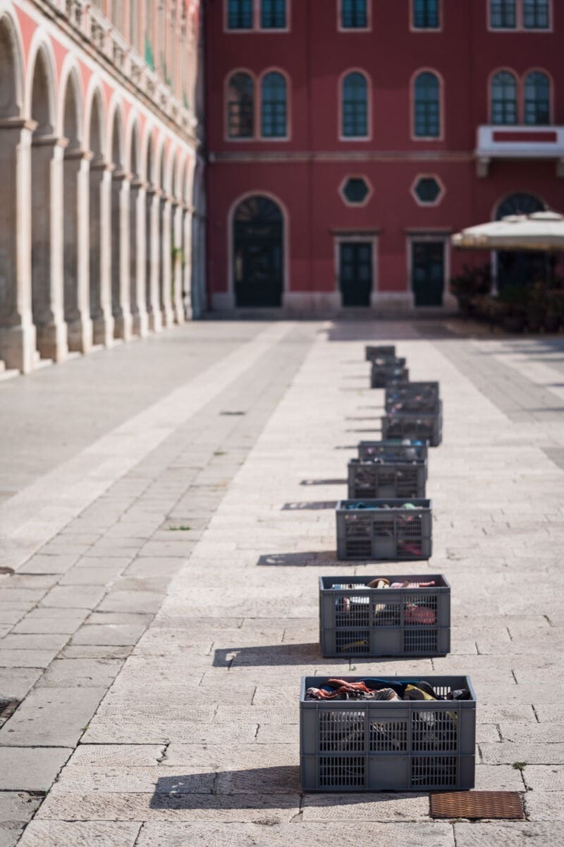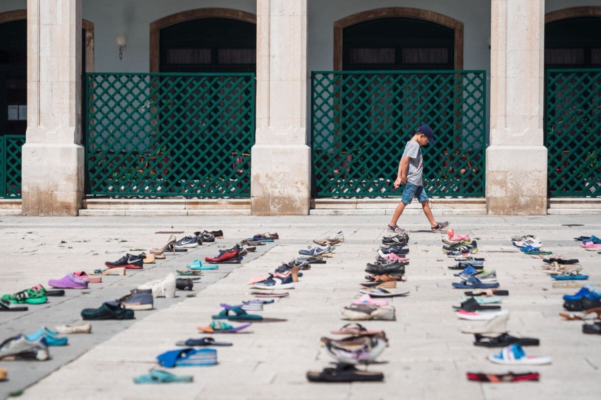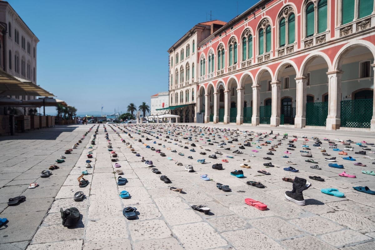 Od 9 sati ujutro na splitskim Prokurativama tisuću cipela pričat će svoje priče slučajnim i namjernim prolaznicima. Njihova raznolikost je zapanjujuća – ima tu sportskih tenisica, zimskih čizama, štikli, plastičnih sandala i dječjih kroksi, svih mogućih oblika, boja, materijala i veličina, zaista – ponešto za svakoga. Navodno je Ernest Hemingway autor slavne „priče od 6 riječi“ koja glasi „Nekorišten par dječjih cipela na prodaju.“ A sad zamislite količinu priča iz njih tisuću.