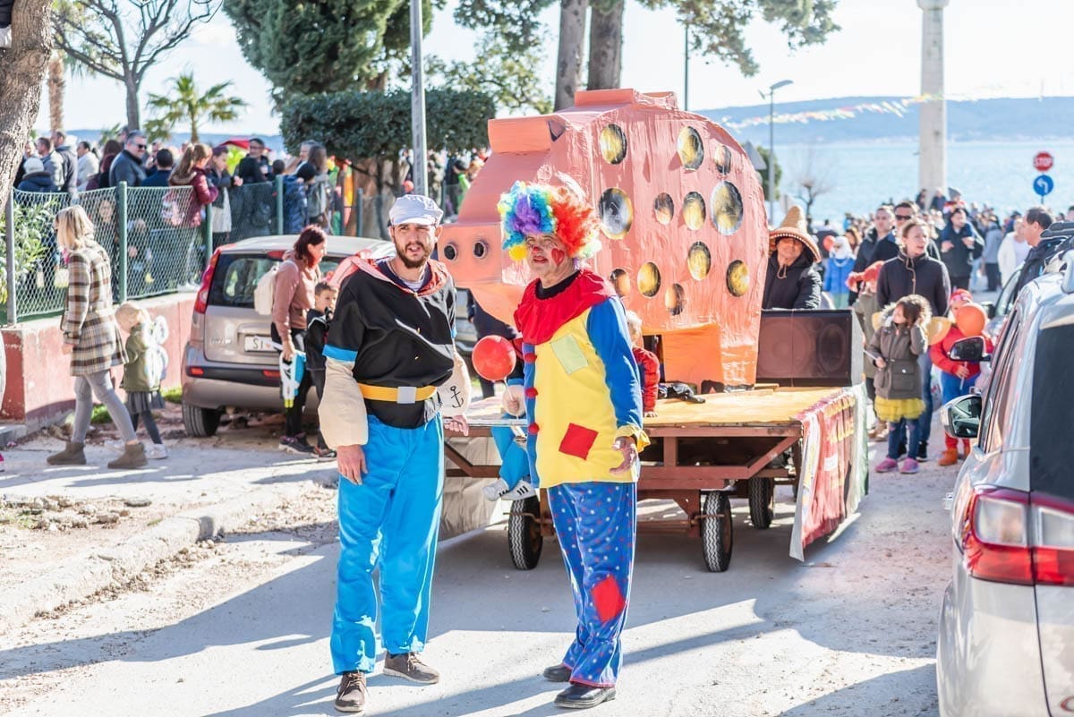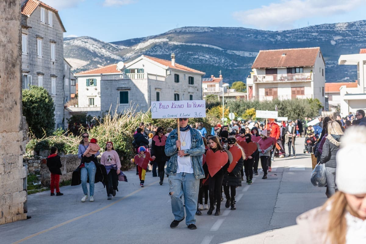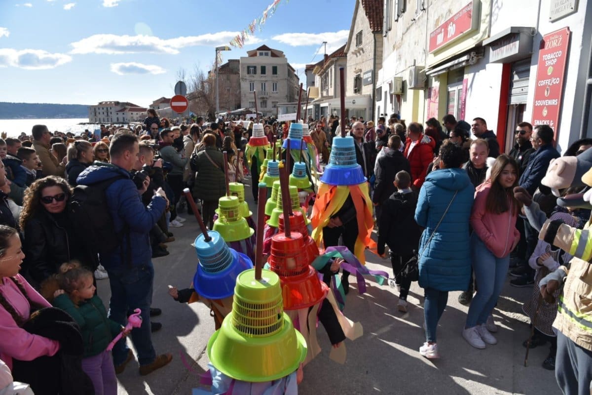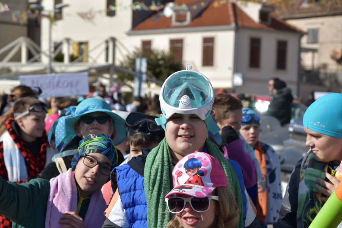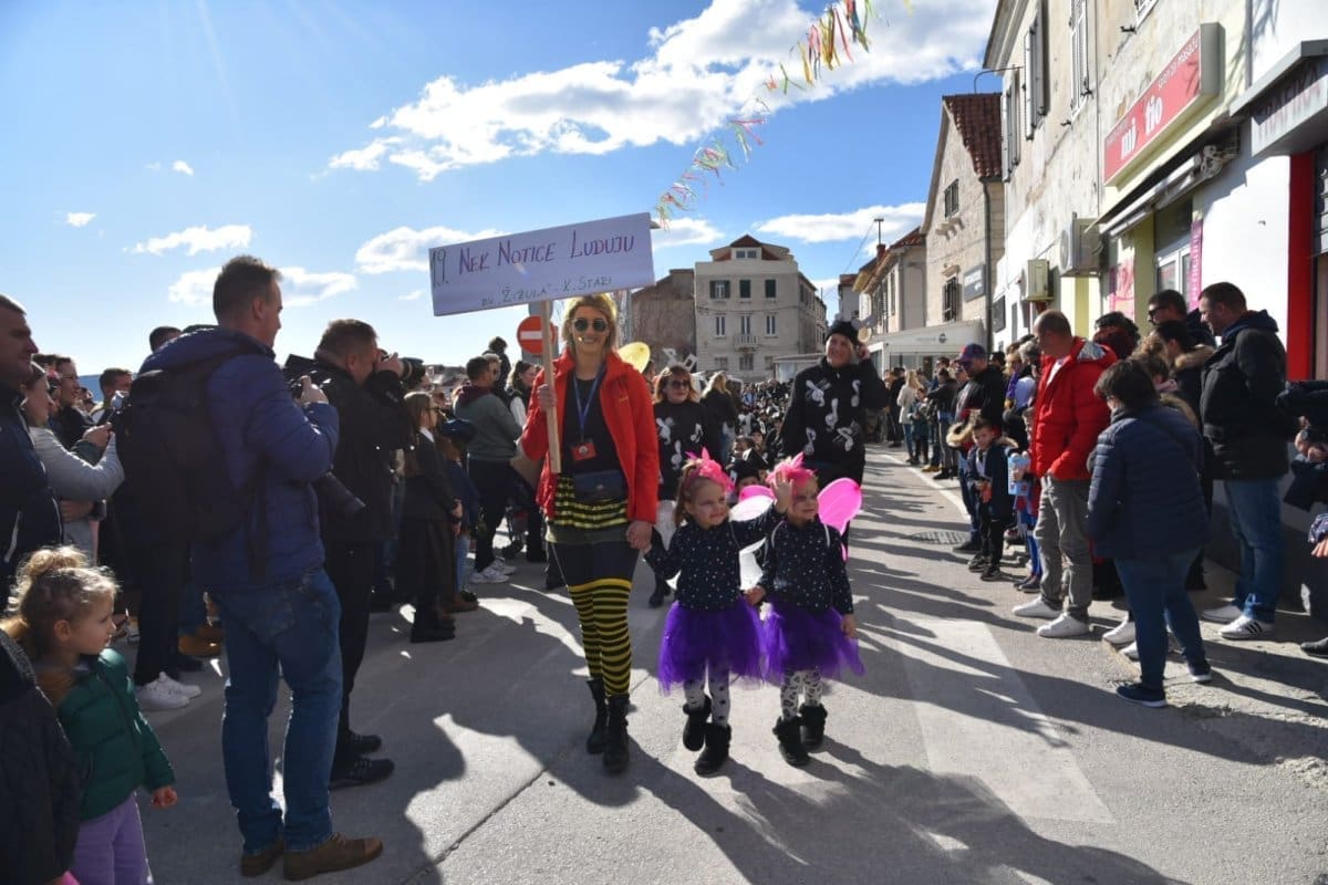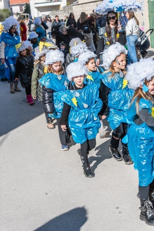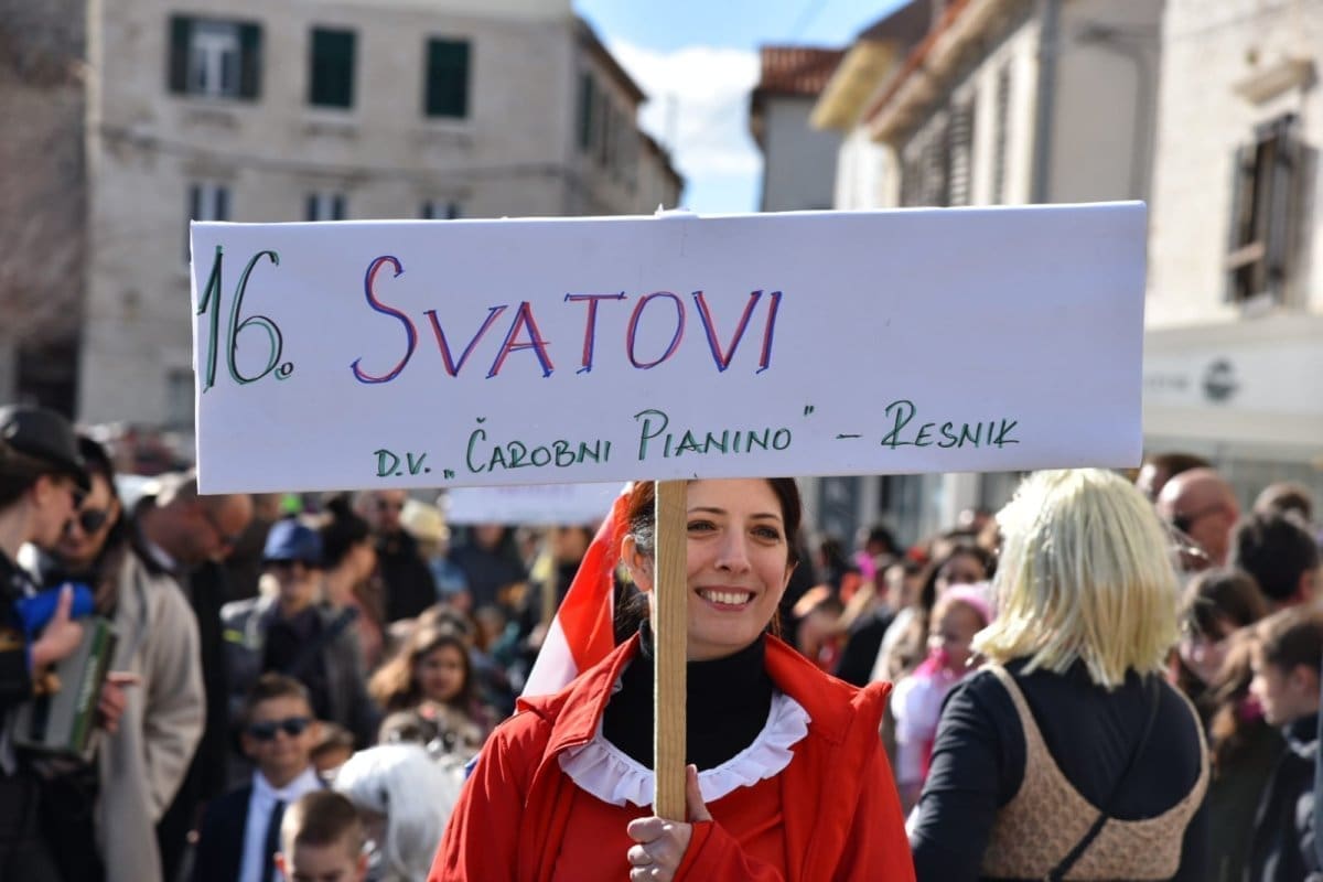 U povorci su se našla djeca iz kaštelanskih osnovnih škola i vrtića te skupa s tetama formirali oko 20 točki. Bilo je tu kuhara, likova iz bajki , autića, farmera, dokrorice Pliško, Masterchefa, Prosjaka i sinova te mnogih drugih. Na parkingu su ih dočekale maskote s kojima su mogli napraviti fotografije za pamćenje, a na dva mjesta bili su punktovi s face paintingom, gdje su zainteresirana djeca mogla oslikati svoja lica. Na kraju su djeci podijeljene krafne i sokiće te su se nakon okrepe nastavili zabavljati uz pjesmu i ples.