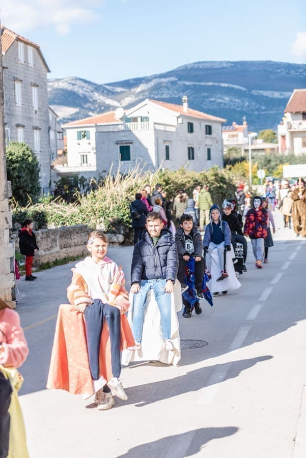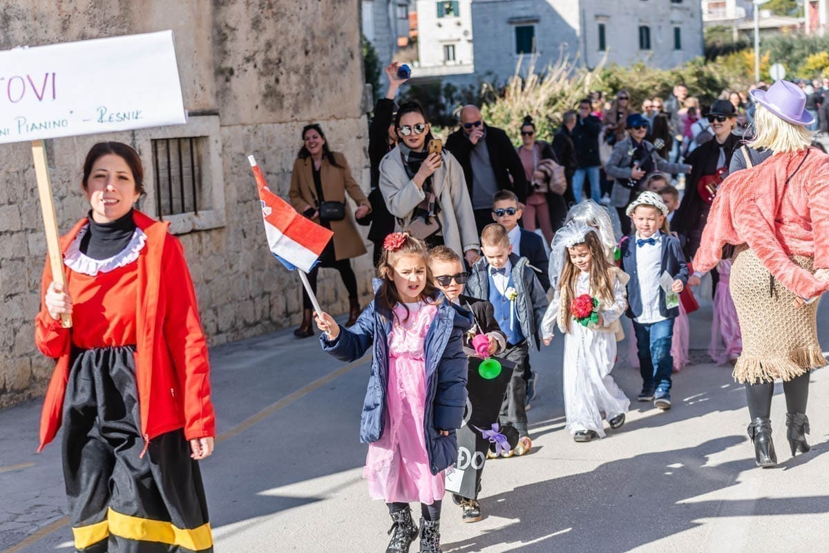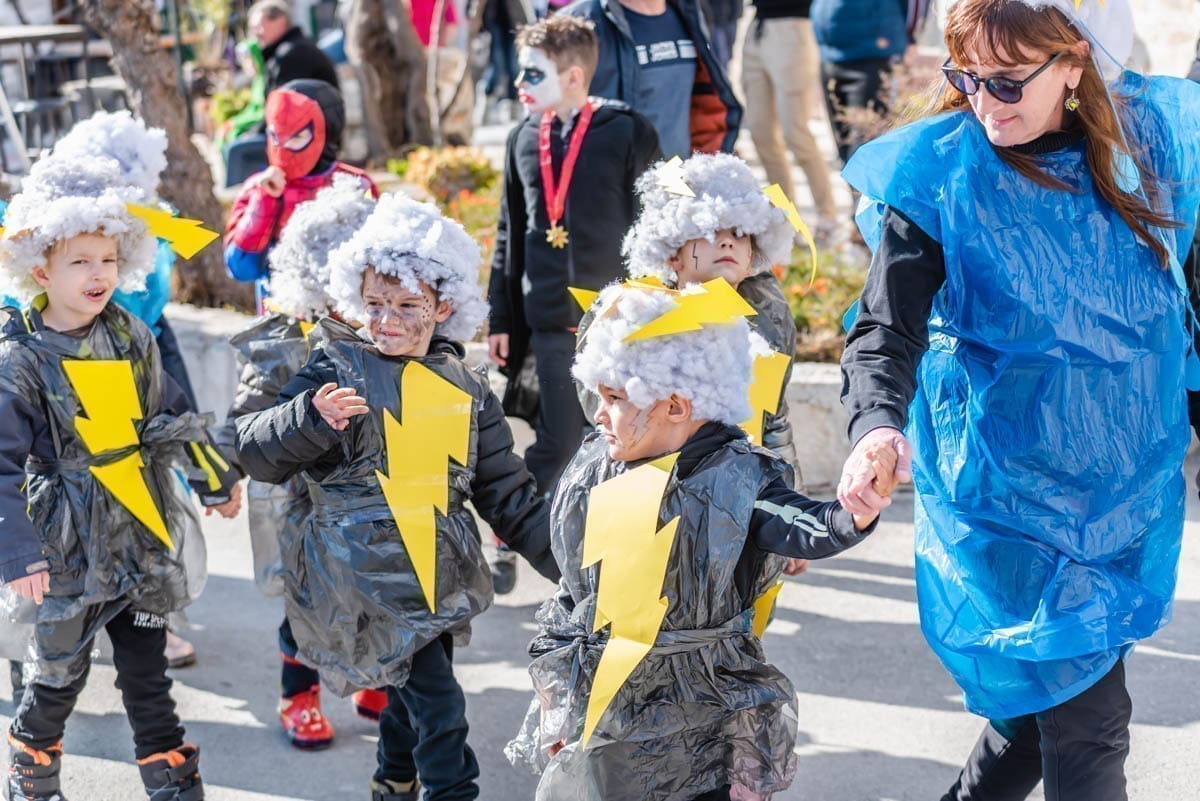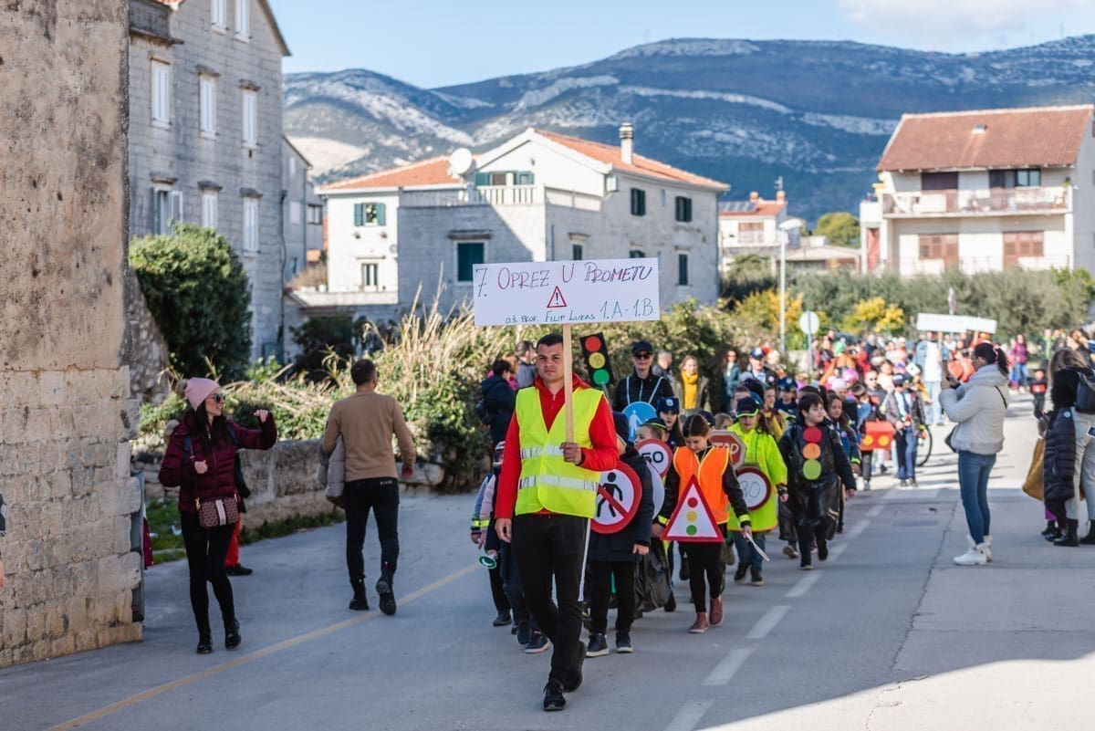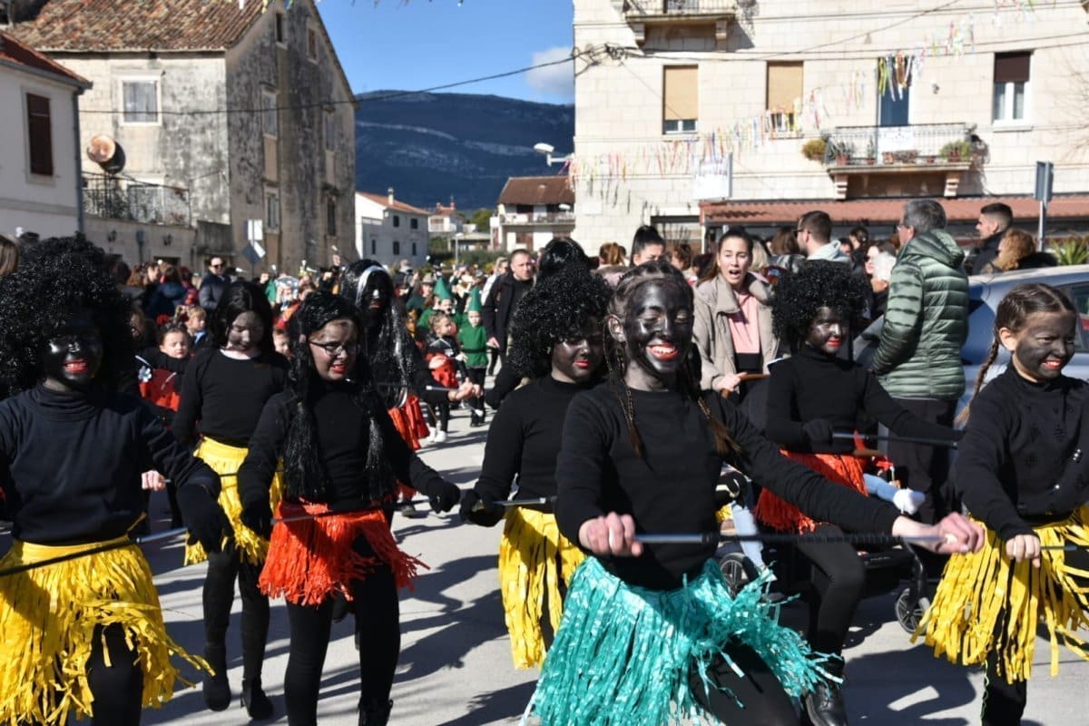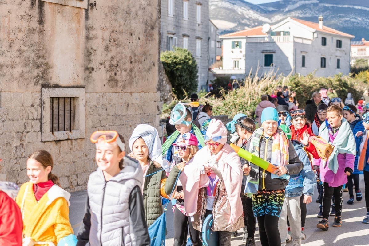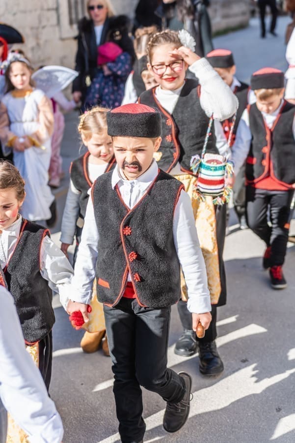 U povorci su se našla djeca iz kaštelanskih osnovnih škola i vrtića te skupa s tetama formirali oko 20 točki. Bilo je tu kuhara, likova iz bajki , autića, farmera, dokrorice Pliško, Masterchefa, Prosjaka i sinova te mnogih drugih. Na parkingu su ih dočekale maskote s kojima su mogli napraviti fotografije za pamćenje, a na dva mjesta bili su punktovi s face paintingom, gdje su zainteresirana djeca mogla oslikati svoja lica. Na kraju su djeci podijeljene krafne i sokiće te su se nakon okrepe nastavili zabavljati uz pjesmu i ples.