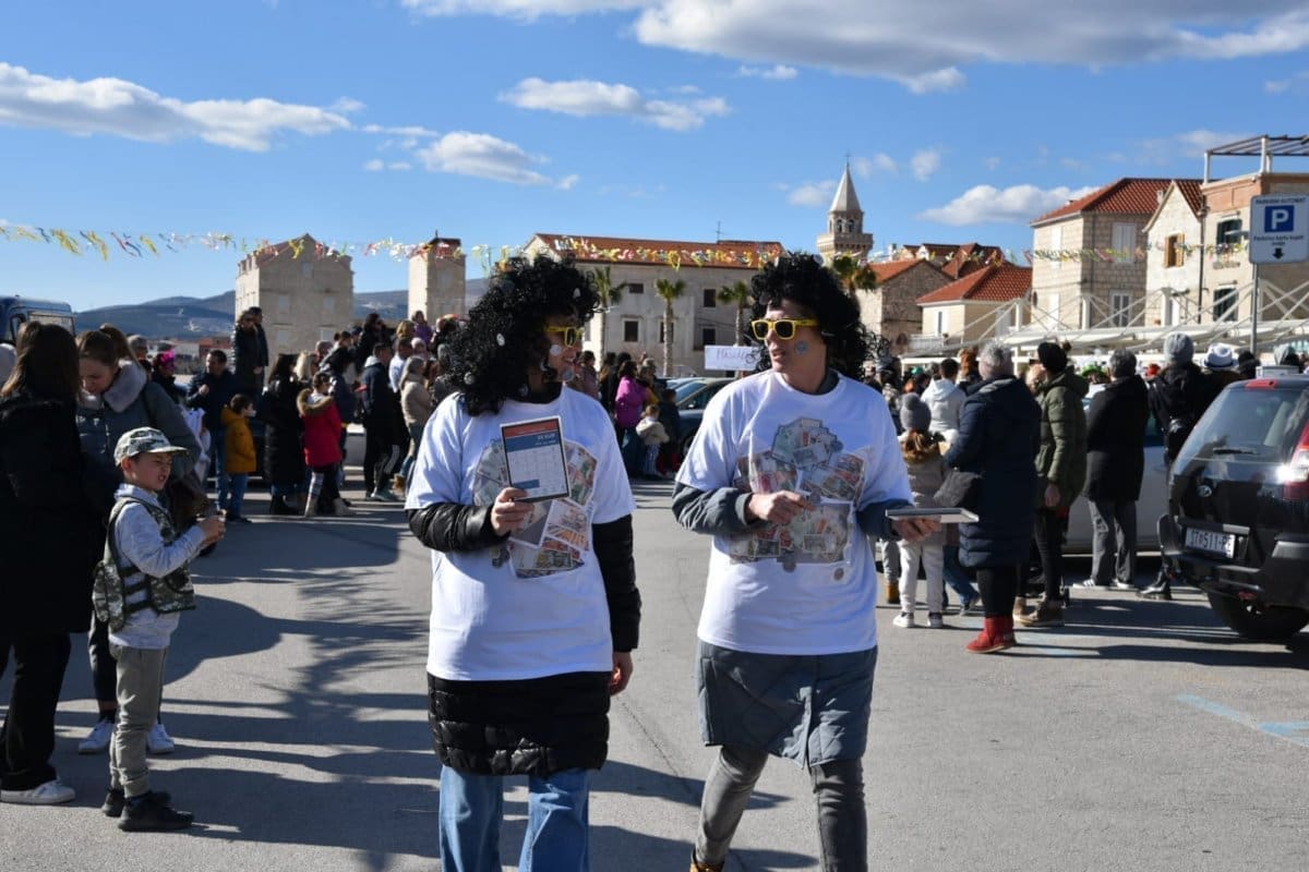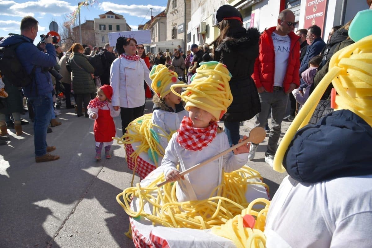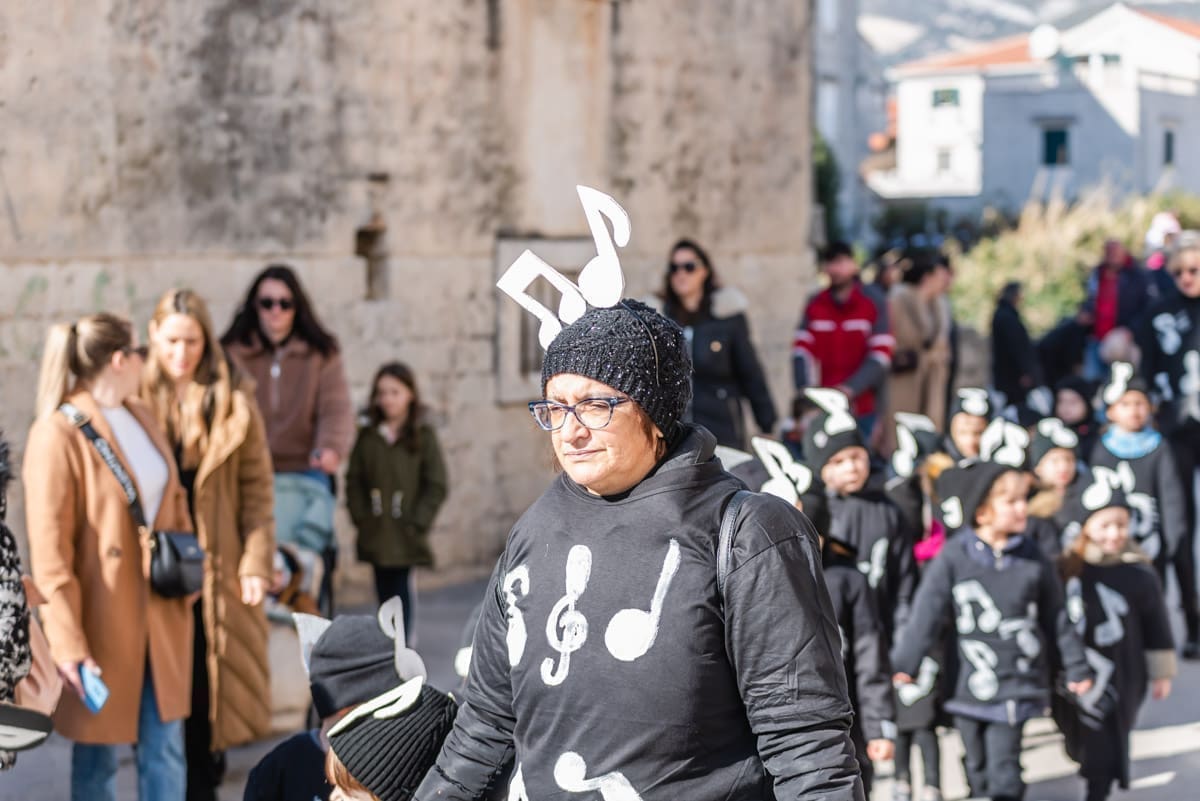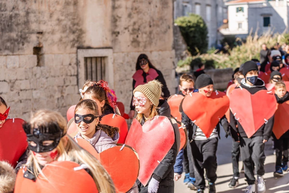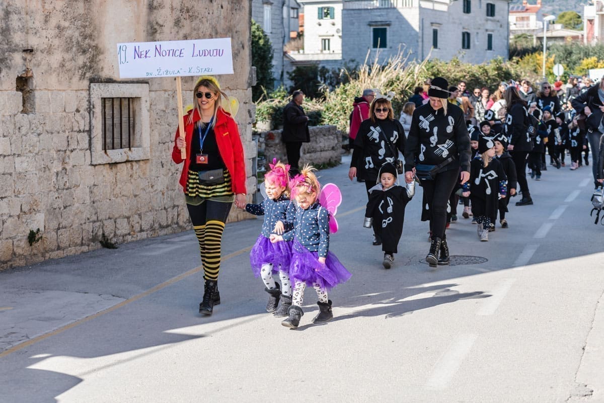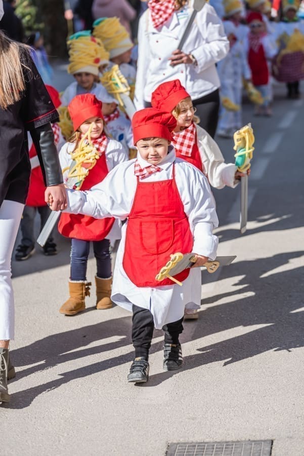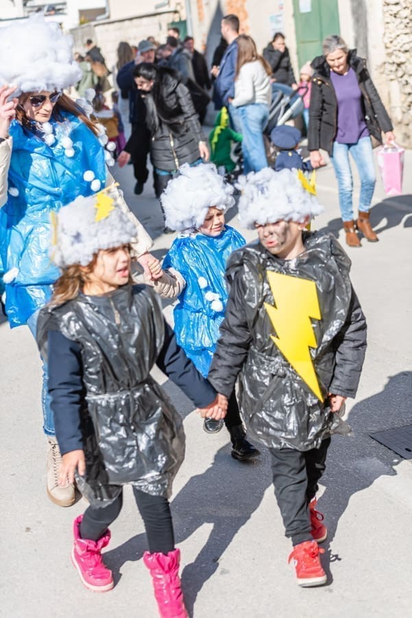 U povorci su se našla djeca iz kaštelanskih osnovnih škola i vrtića te skupa s tetama formirali oko 20 točki. Bilo je tu kuhara, likova iz bajki , autića, farmera, dokrorice Pliško, Masterchefa, Prosjaka i sinova te mnogih drugih. Na parkingu su ih dočekale maskote s kojima su mogli napraviti fotografije za pamćenje, a na dva mjesta bili su punktovi s face paintingom, gdje su zainteresirana djeca mogla oslikati svoja lica. Na kraju su djeci podijeljene krafne i sokiće te su se nakon okrepe nastavili zabavljati uz pjesmu i ples.