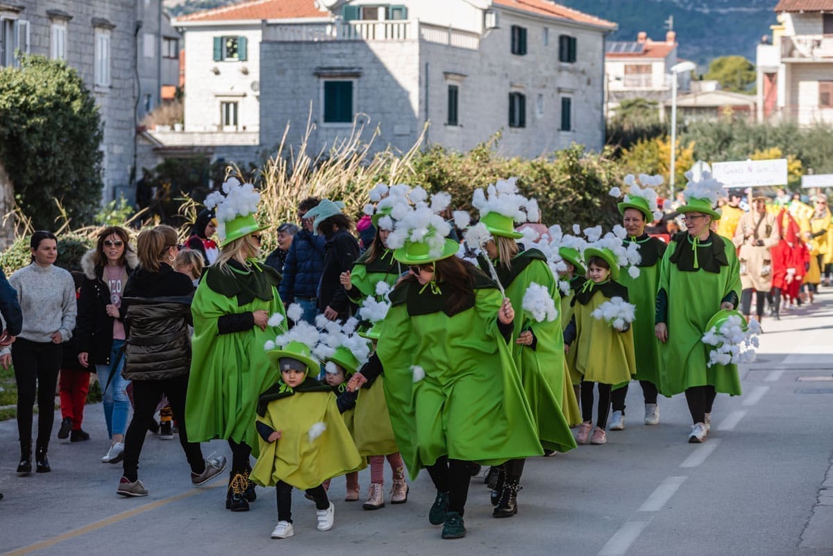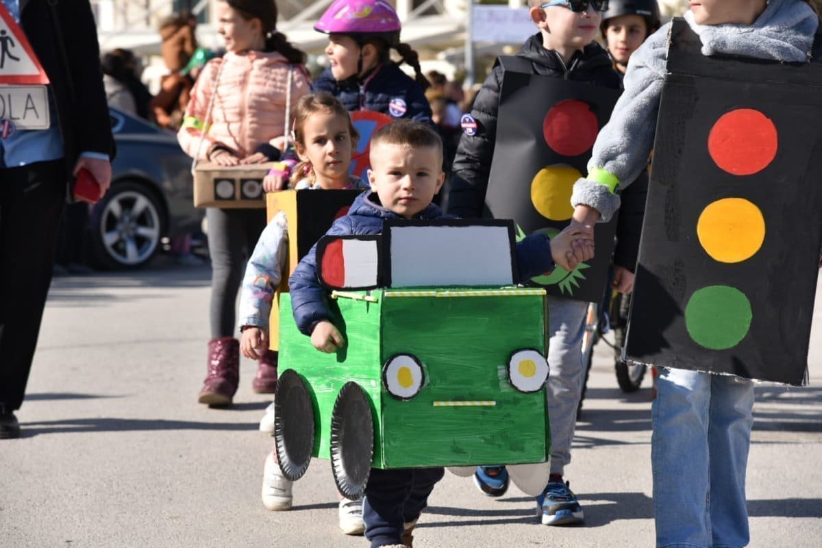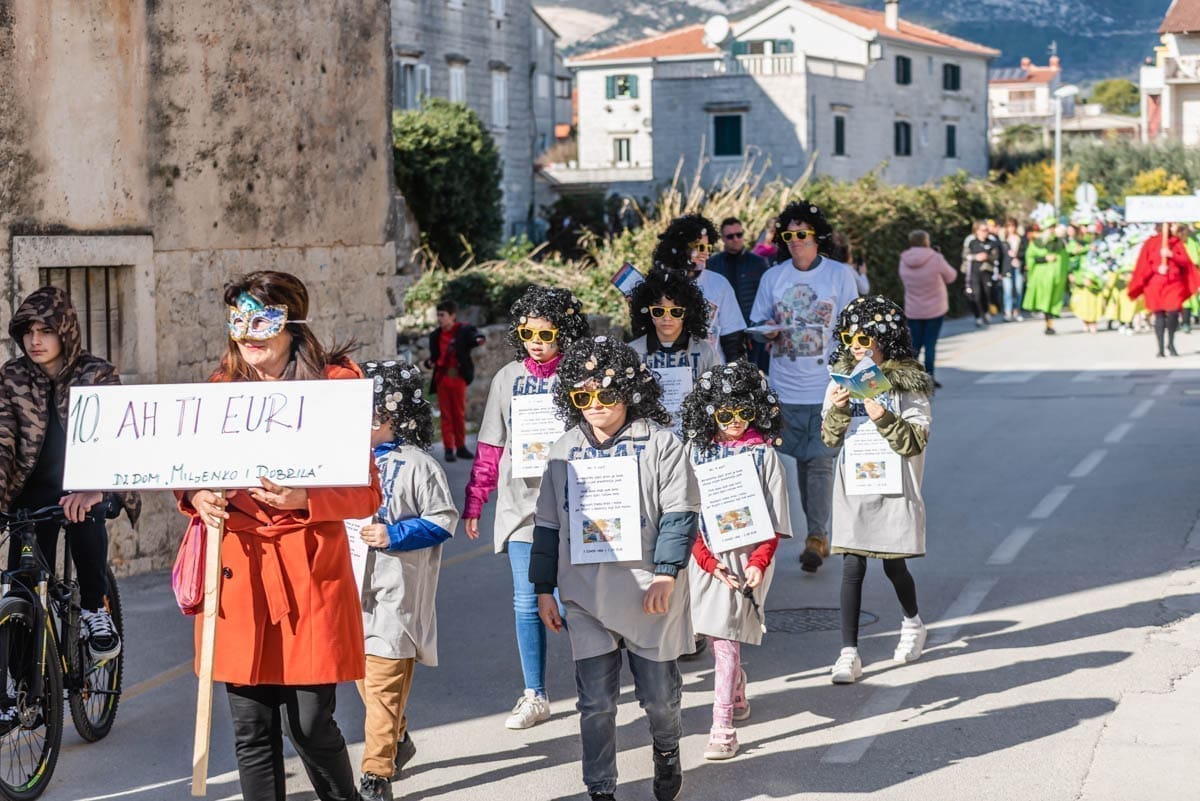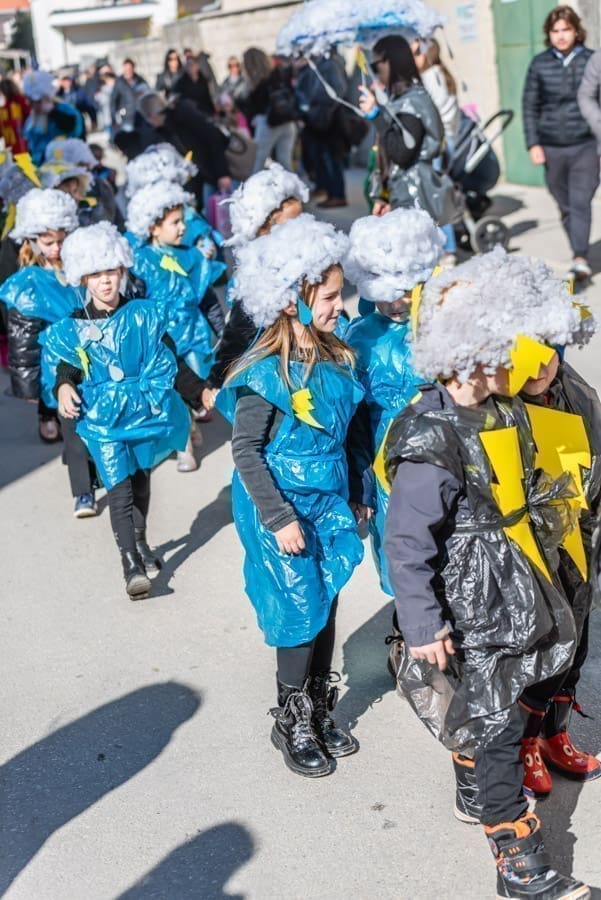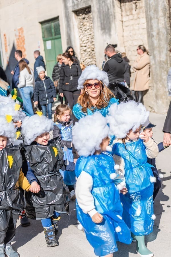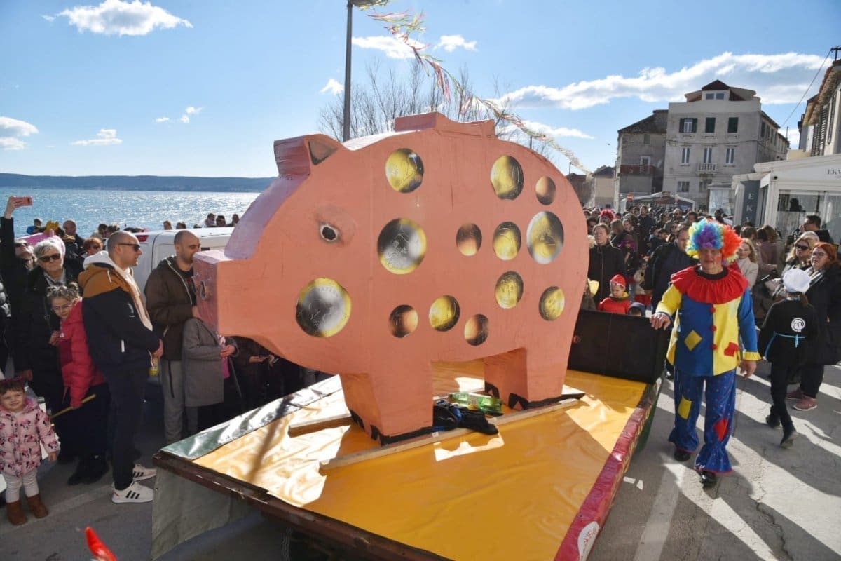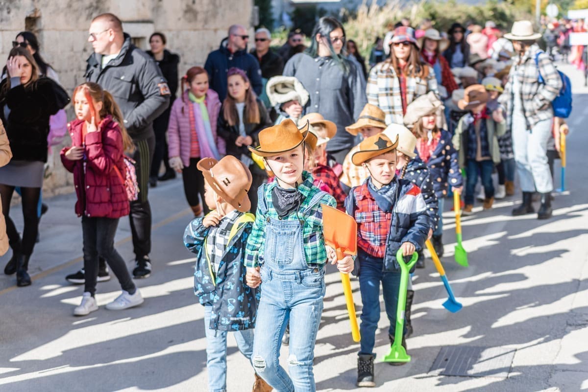 U povorci su se našla djeca iz kaštelanskih osnovnih škola i vrtića te skupa s tetama formirali oko 20 točki. Bilo je tu kuhara, likova iz bajki , autića, farmera, dokrorice Pliško, Masterchefa, Prosjaka i sinova te mnogih drugih. Na parkingu su ih dočekale maskote s kojima su mogli napraviti fotografije za pamćenje, a na dva mjesta bili su punktovi s face paintingom, gdje su zainteresirana djeca mogla oslikati svoja lica. Na kraju su djeci podijeljene krafne i sokiće te su se nakon okrepe nastavili zabavljati uz pjesmu i ples.