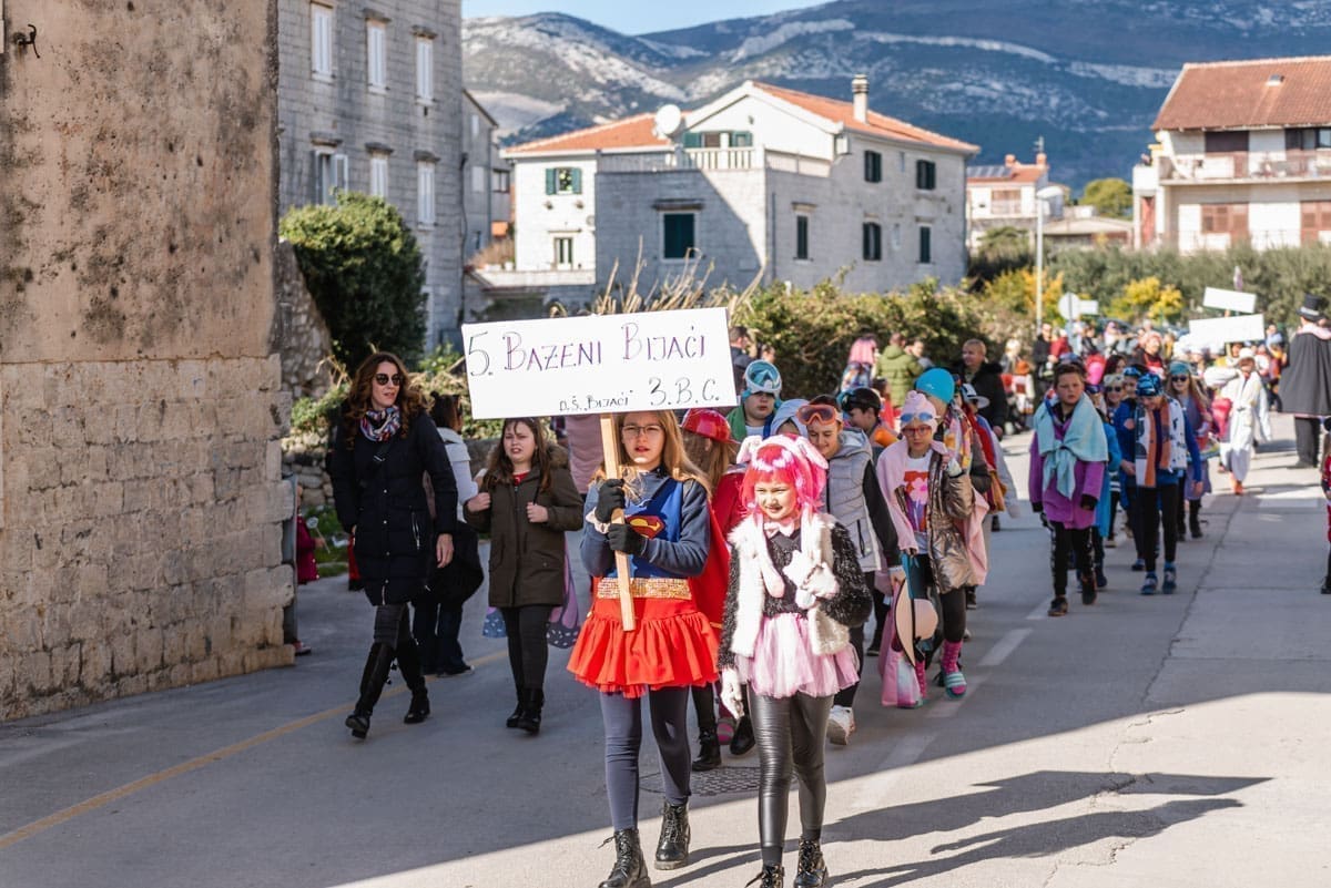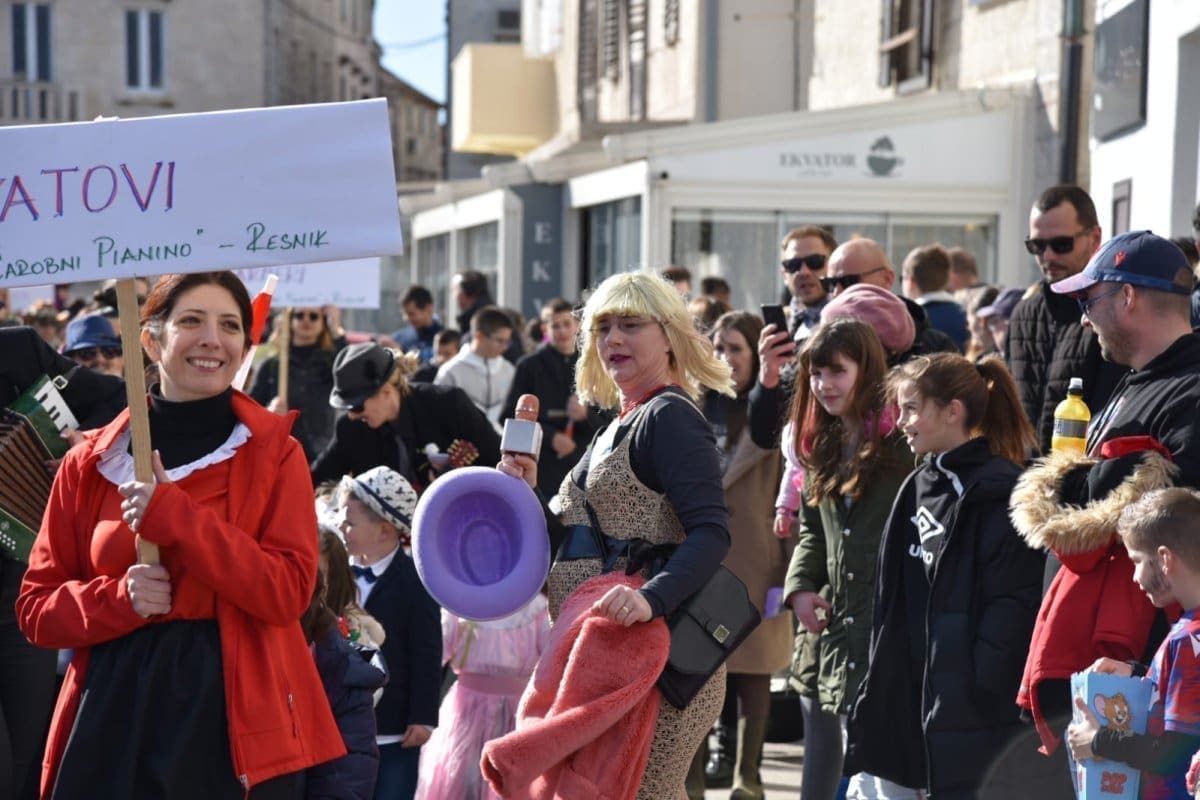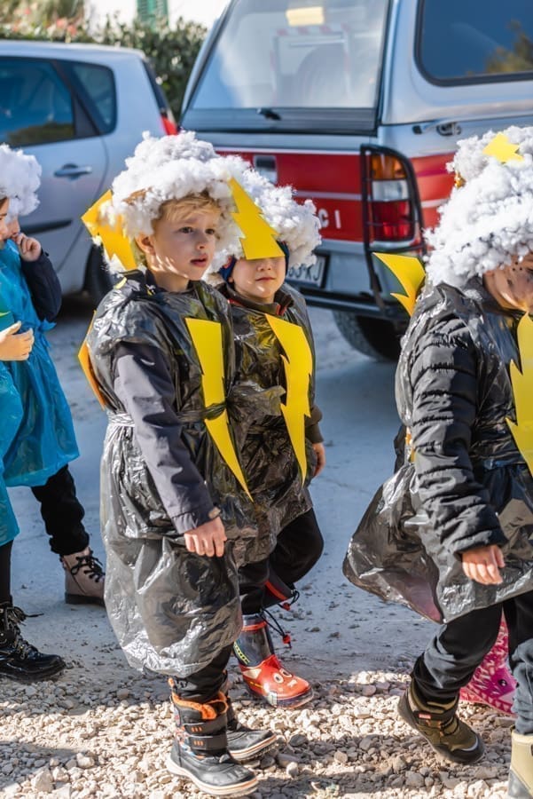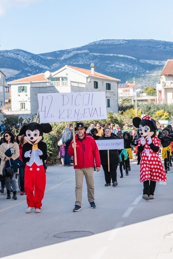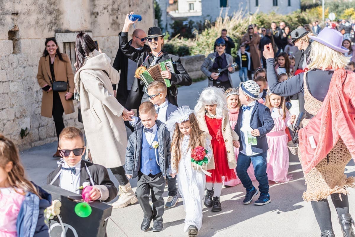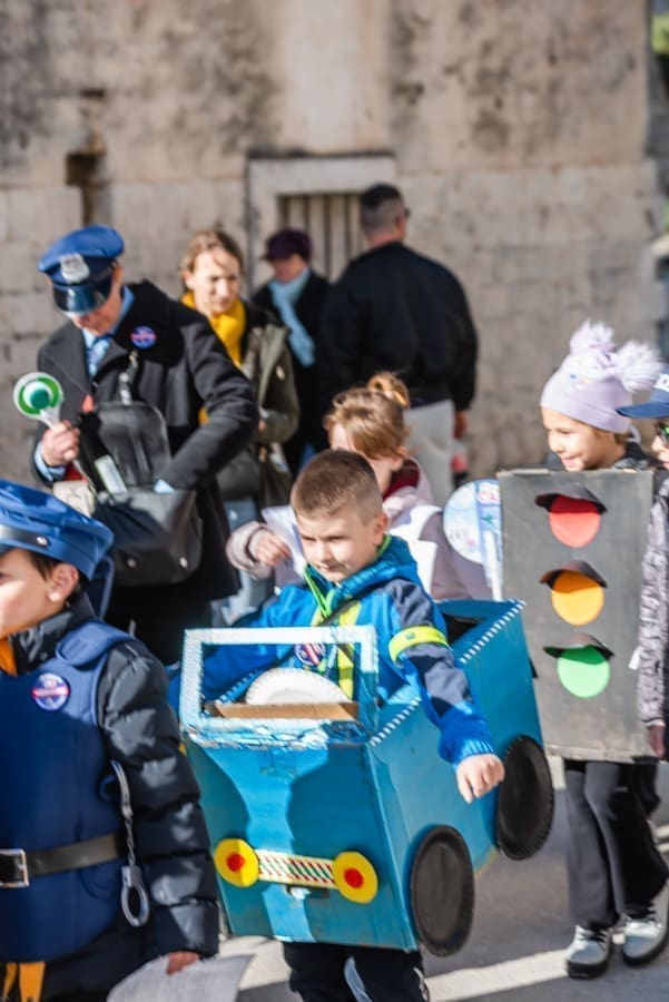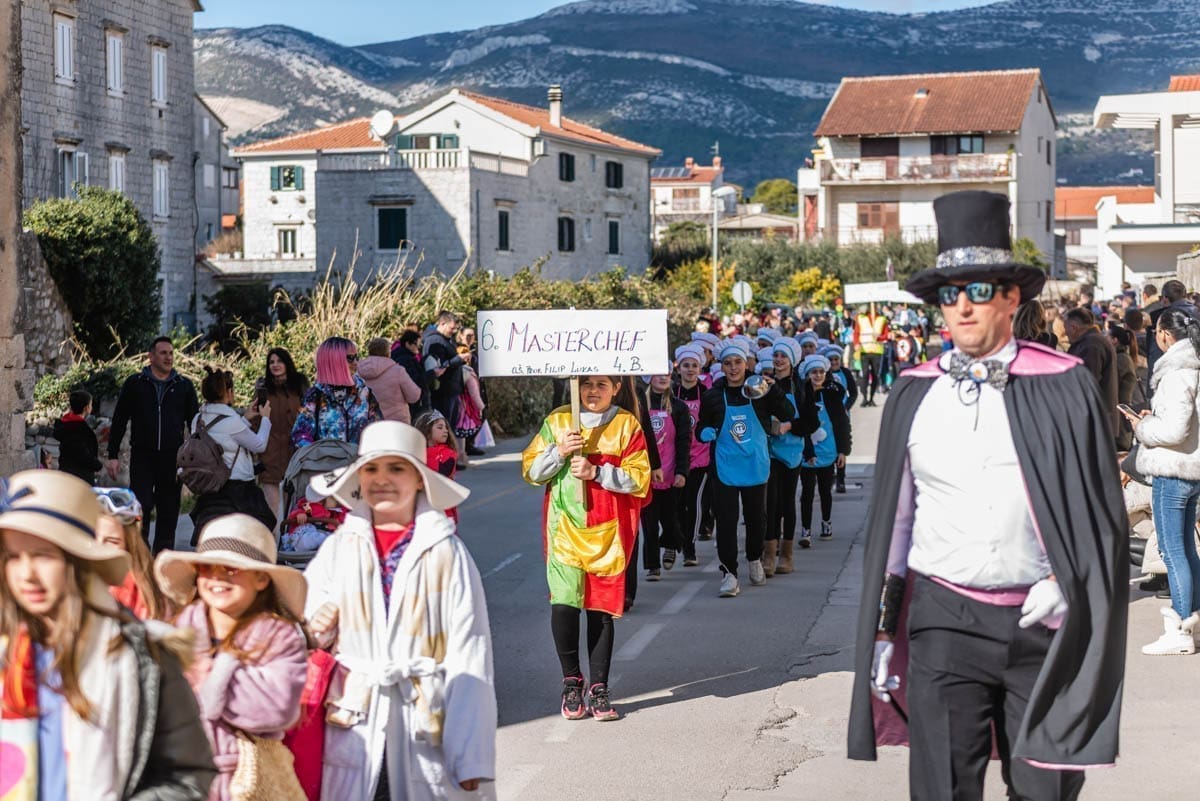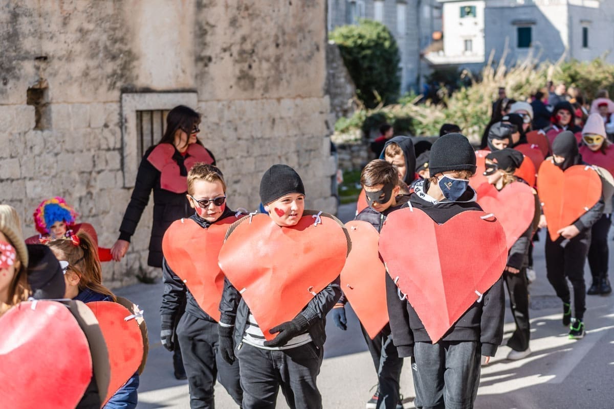 U povorci su se našla djeca iz kaštelanskih osnovnih škola i vrtića te skupa s tetama formirali oko 20 točki. Bilo je tu kuhara, likova iz bajki , autića, farmera, dokrorice Pliško, Masterchefa, Prosjaka i sinova te mnogih drugih. Na parkingu su ih dočekale maskote s kojima su mogli napraviti fotografije za pamćenje, a na dva mjesta bili su punktovi s face paintingom, gdje su zainteresirana djeca mogla oslikati svoja lica. Na kraju su djeci podijeljene krafne i sokiće te su se nakon okrepe nastavili zabavljati uz pjesmu i ples.