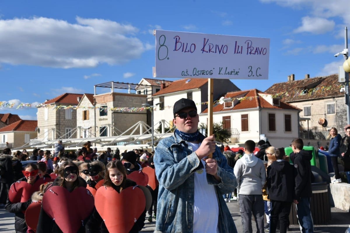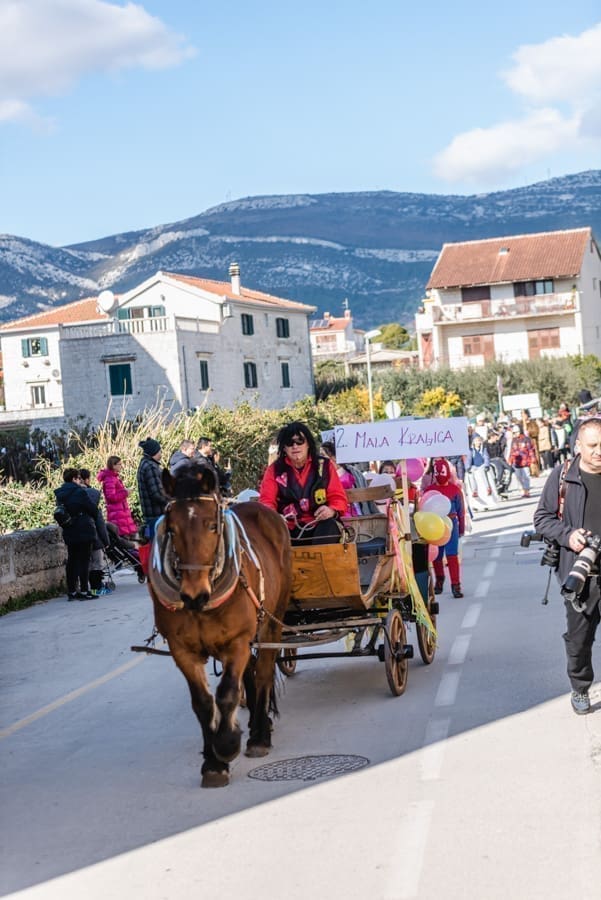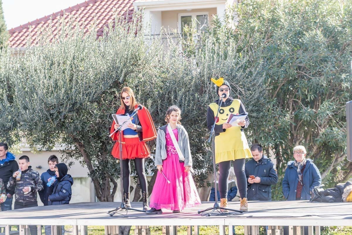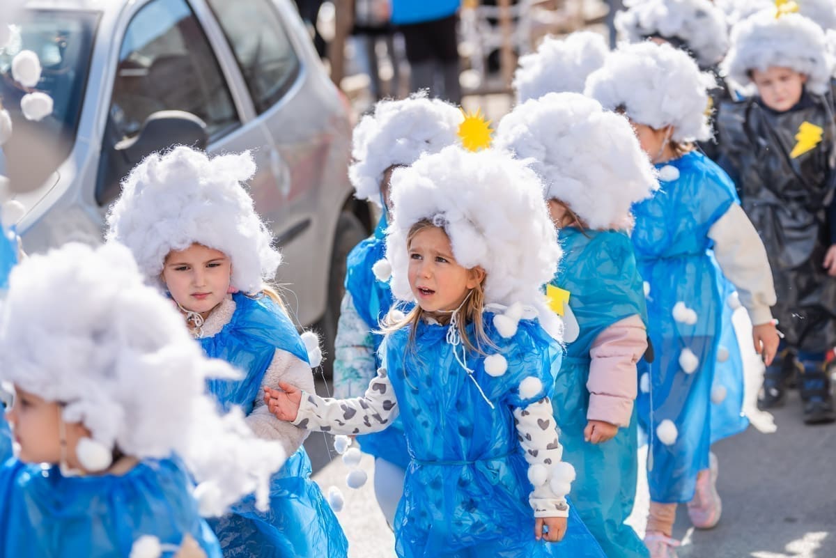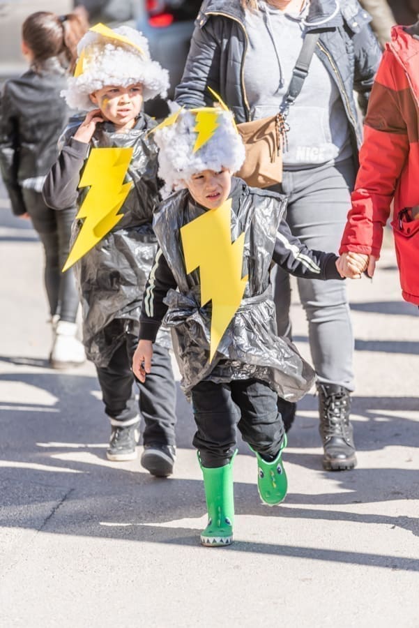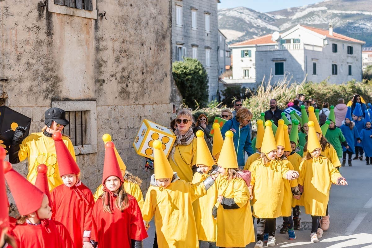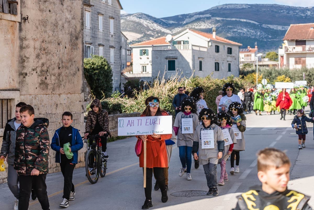 U povorci su se našla djeca iz kaštelanskih osnovnih škola i vrtića te skupa s tetama formirali oko 20 točki. Bilo je tu kuhara, likova iz bajki , autića, farmera, dokrorice Pliško, Masterchefa, Prosjaka i sinova te mnogih drugih. Na parkingu su ih dočekale maskote s kojima su mogli napraviti fotografije za pamćenje, a na dva mjesta bili su punktovi s face paintingom, gdje su zainteresirana djeca mogla oslikati svoja lica. Na kraju su djeci podijeljene krafne i sokiće te su se nakon okrepe nastavili zabavljati uz pjesmu i ples.