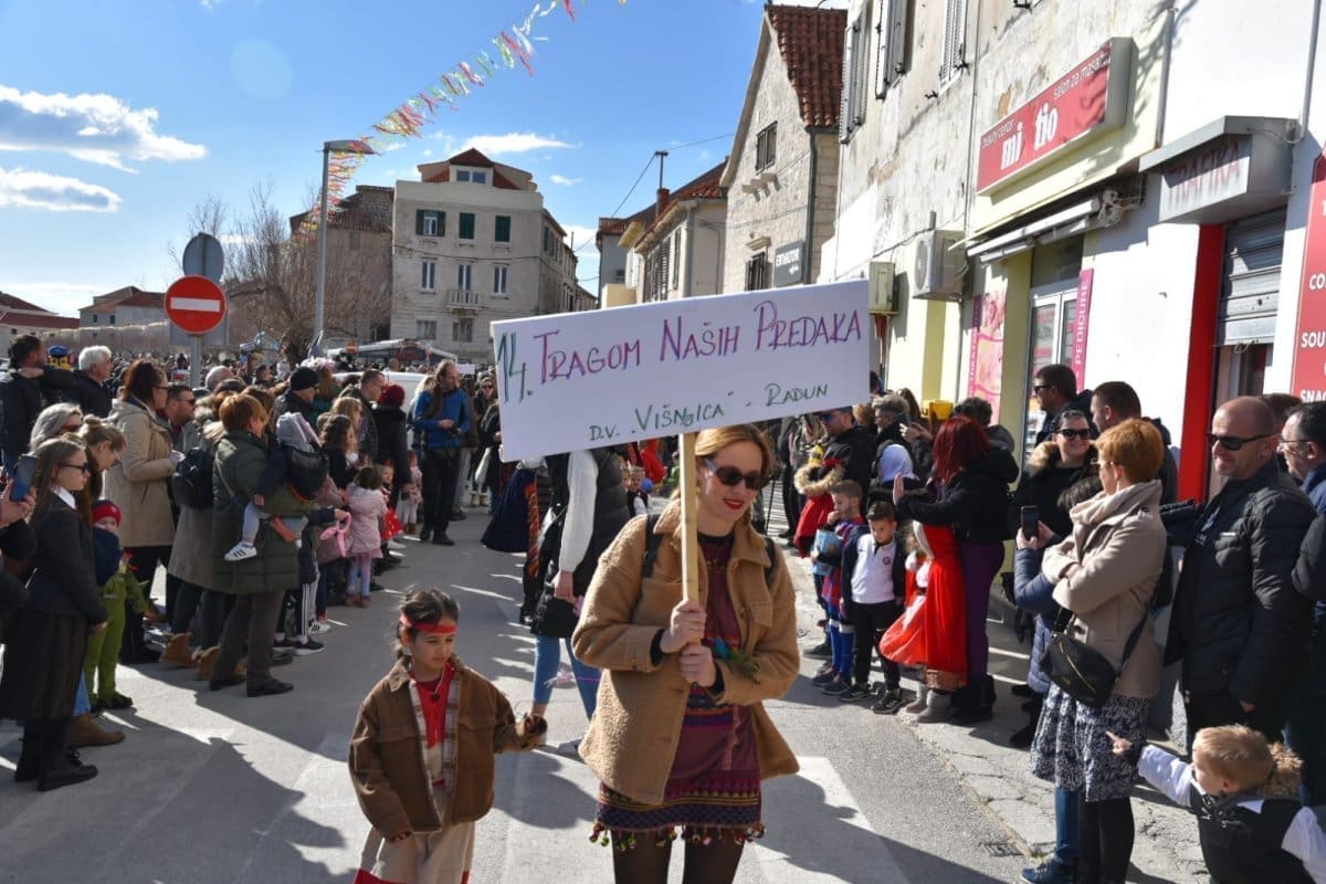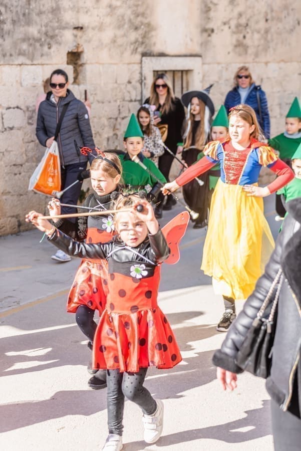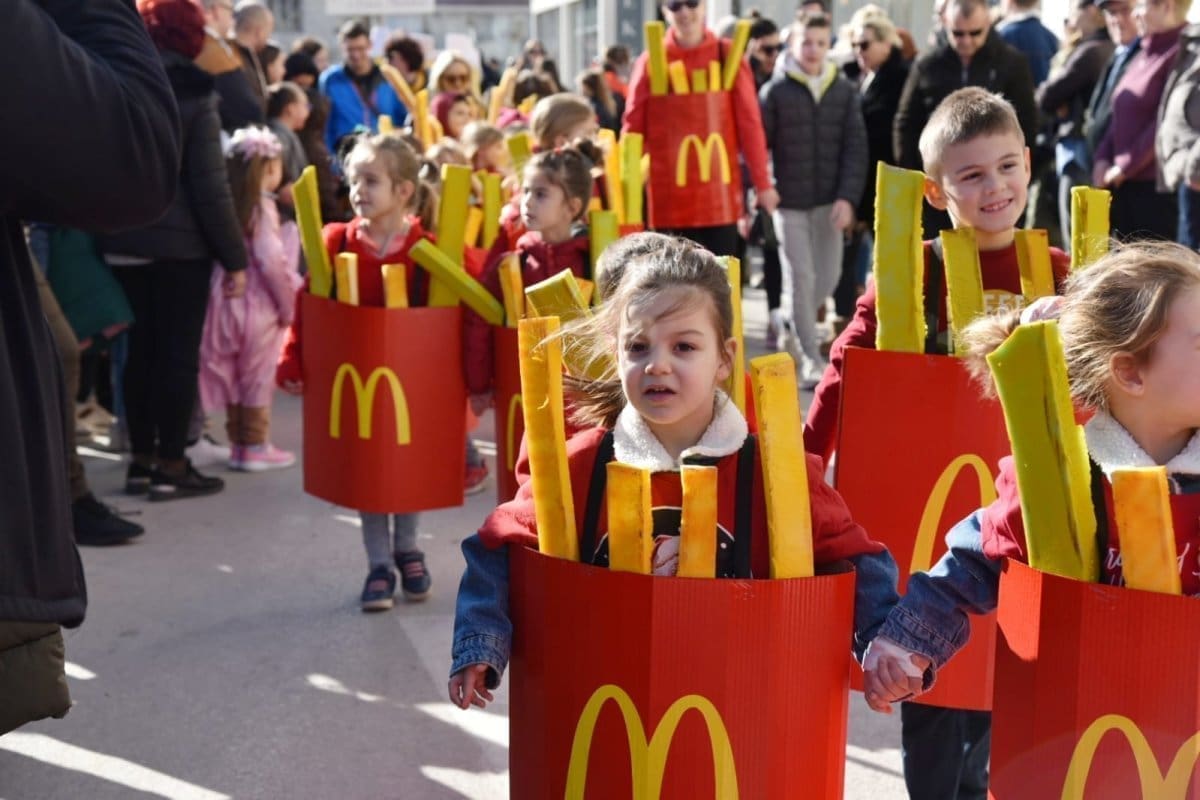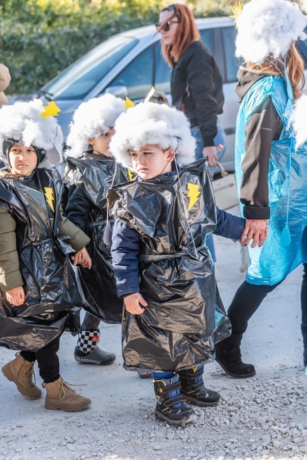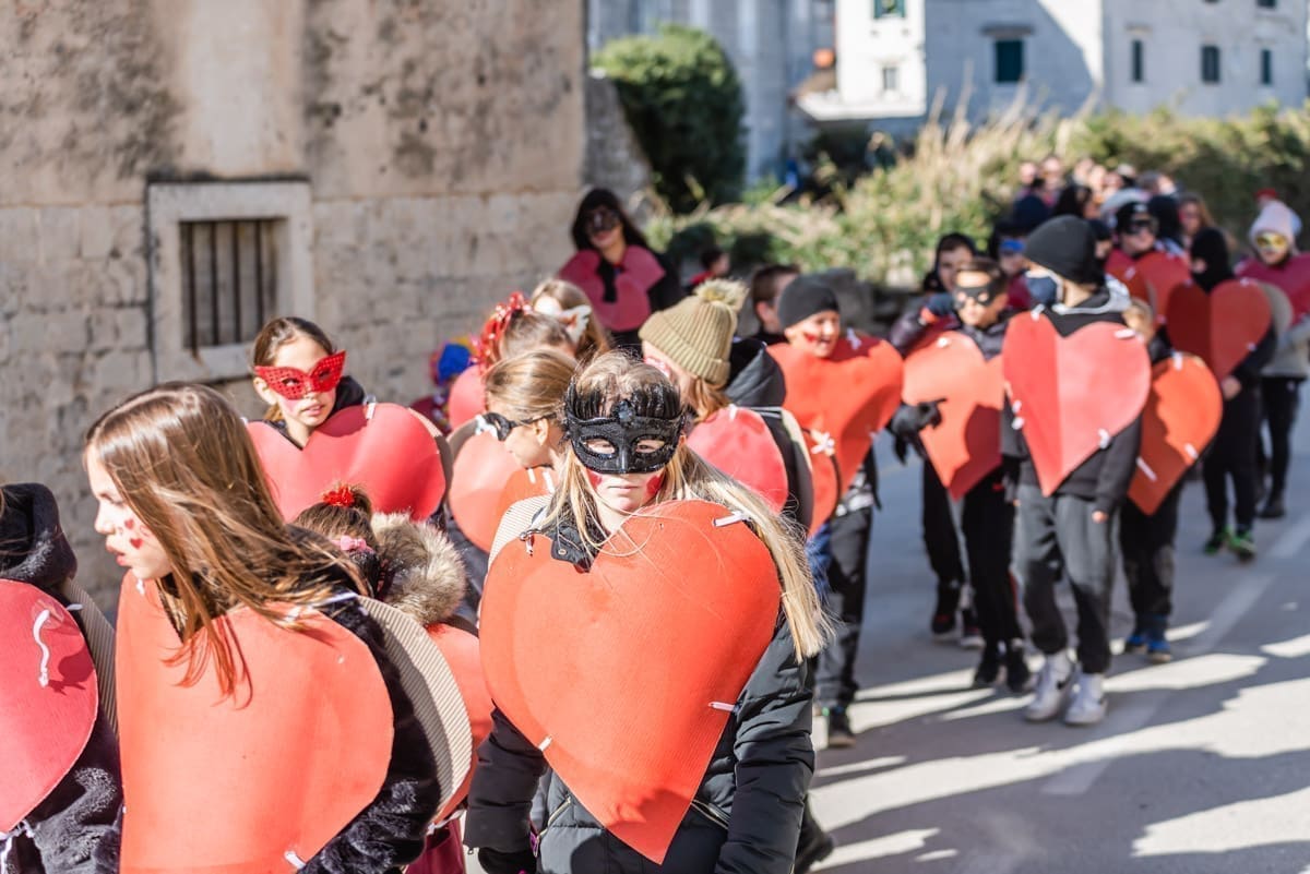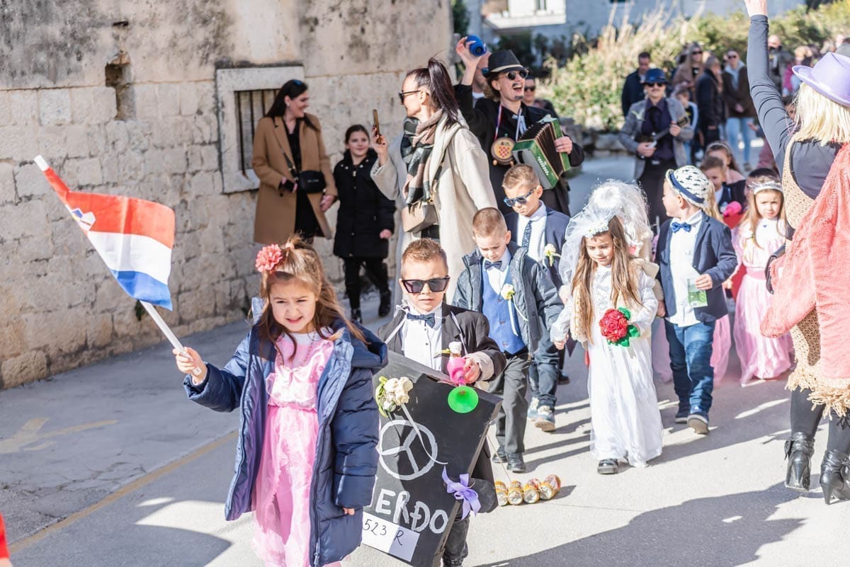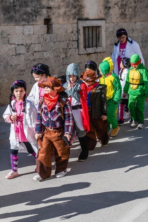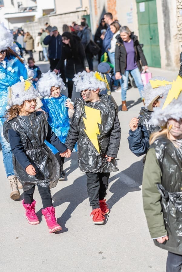 U povorci su se našla djeca iz kaštelanskih osnovnih škola i vrtića te skupa s tetama formirali oko 20 točki. Bilo je tu kuhara, likova iz bajki , autića, farmera, dokrorice Pliško, Masterchefa, Prosjaka i sinova te mnogih drugih. Na parkingu su ih dočekale maskote s kojima su mogli napraviti fotografije za pamćenje, a na dva mjesta bili su punktovi s face paintingom, gdje su zainteresirana djeca mogla oslikati svoja lica. Na kraju su djeci podijeljene krafne i sokiće te su se nakon okrepe nastavili zabavljati uz pjesmu i ples.
