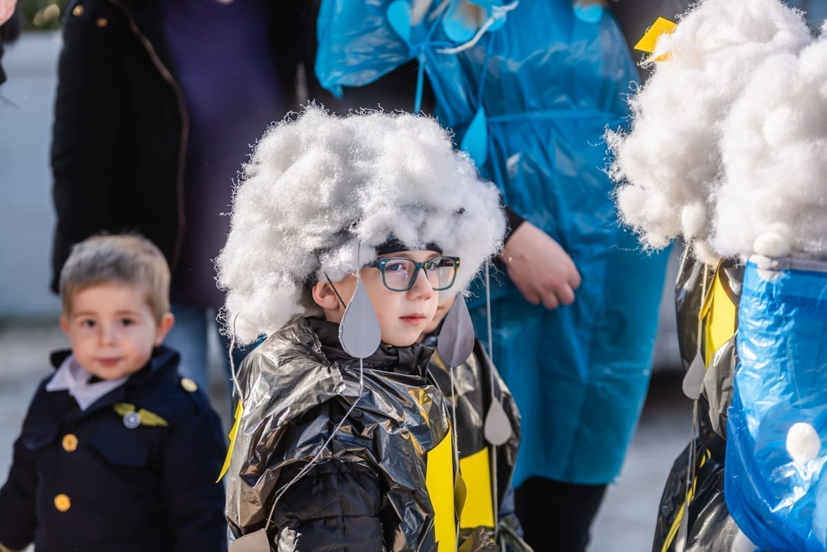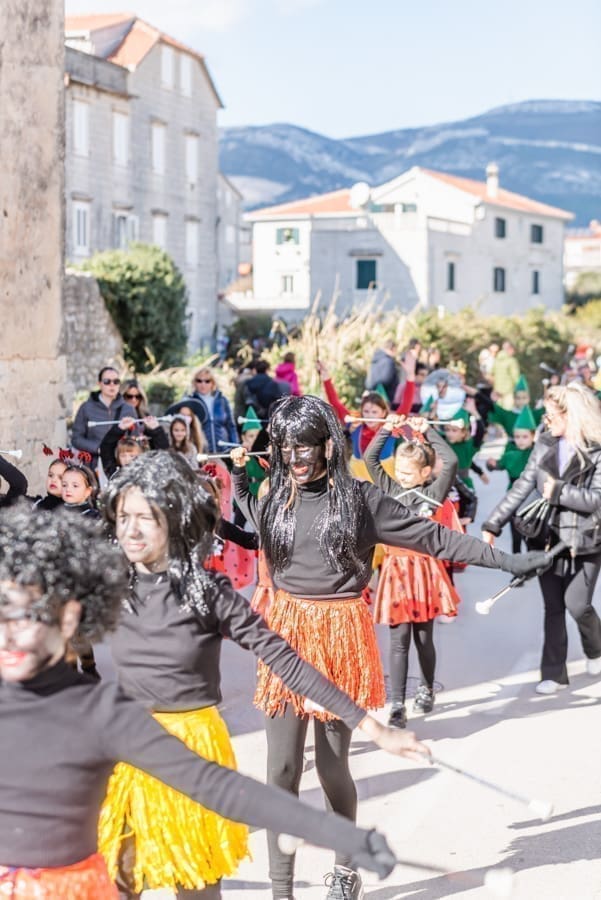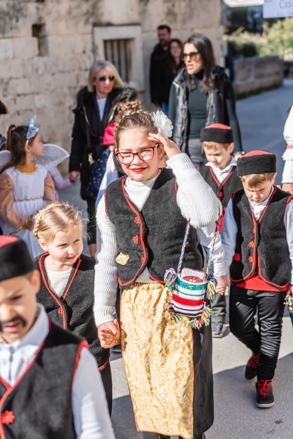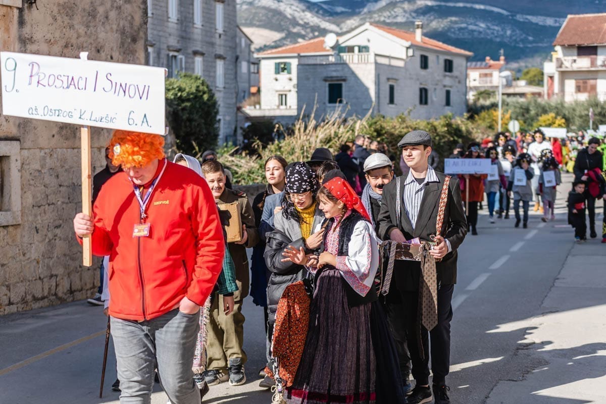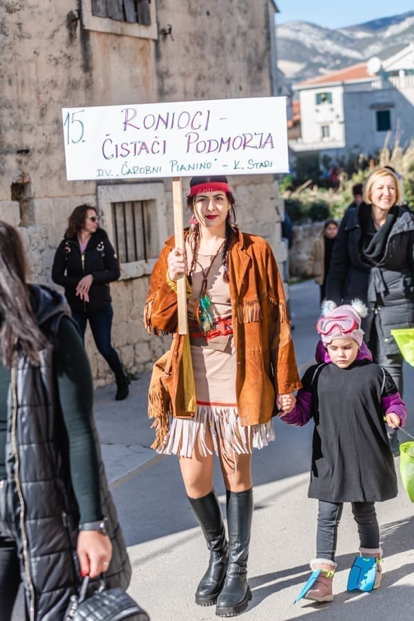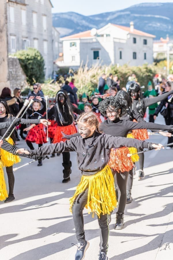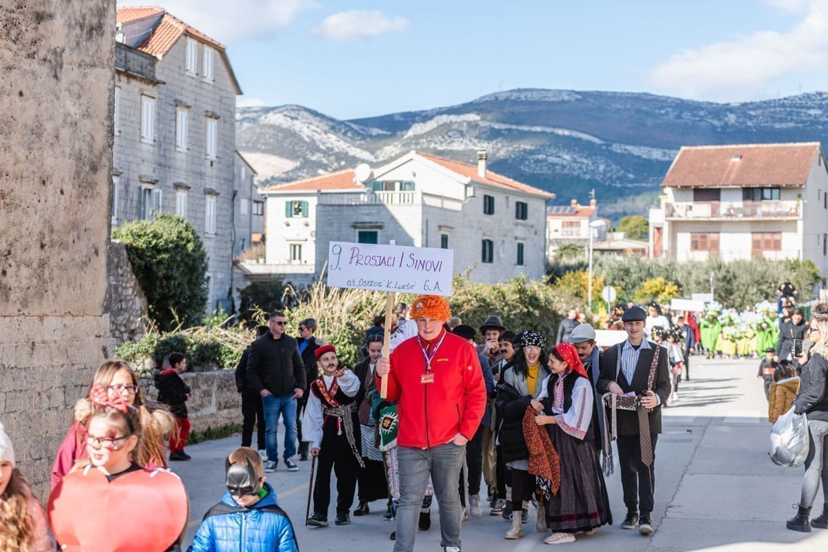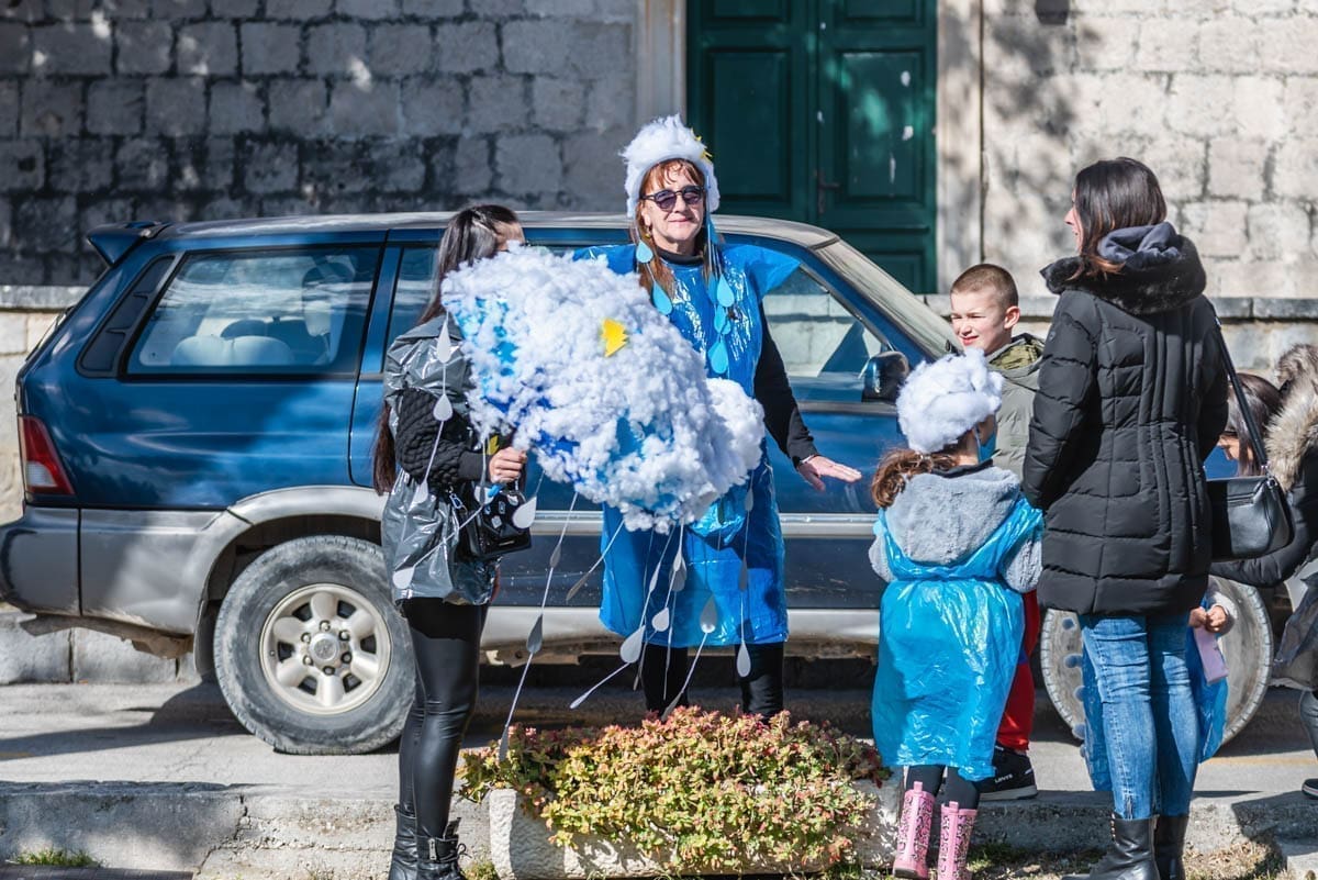 U povorci su se našla djeca iz kaštelanskih osnovnih škola i vrtića te skupa s tetama formirali oko 20 točki. Bilo je tu kuhara, likova iz bajki , autića, farmera, dokrorice Pliško, Masterchefa, Prosjaka i sinova te mnogih drugih. Na parkingu su ih dočekale maskote s kojima su mogli napraviti fotografije za pamćenje, a na dva mjesta bili su punktovi s face paintingom, gdje su zainteresirana djeca mogla oslikati svoja lica. Na kraju su djeci podijeljene krafne i sokiće te su se nakon okrepe nastavili zabavljati uz pjesmu i ples.