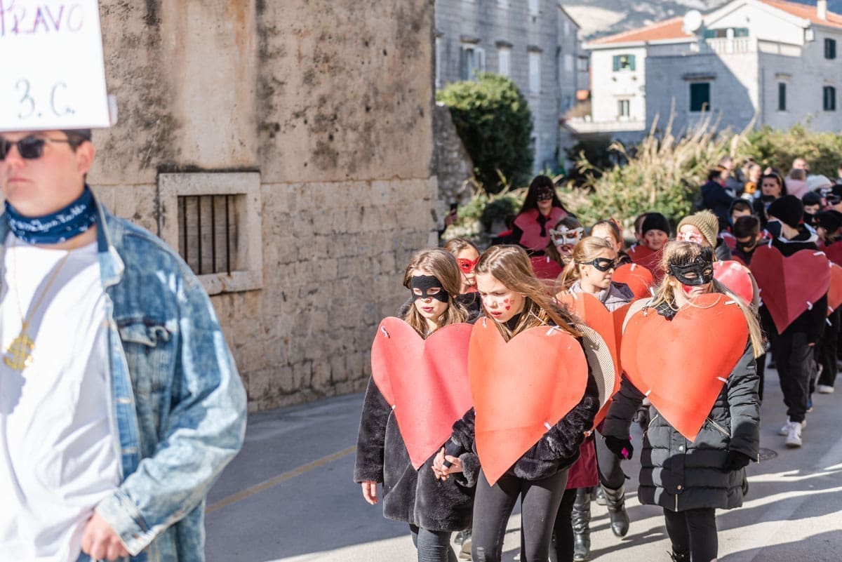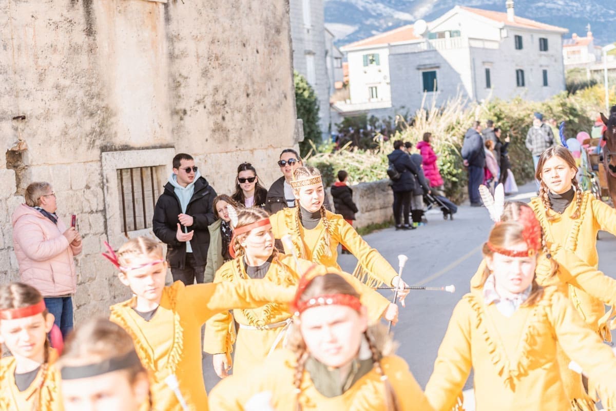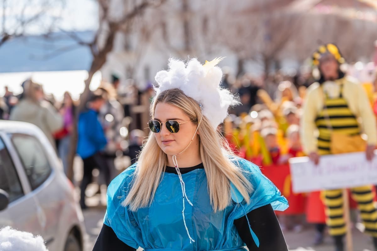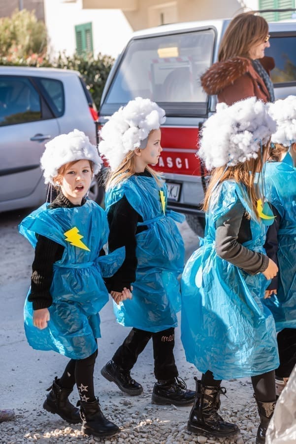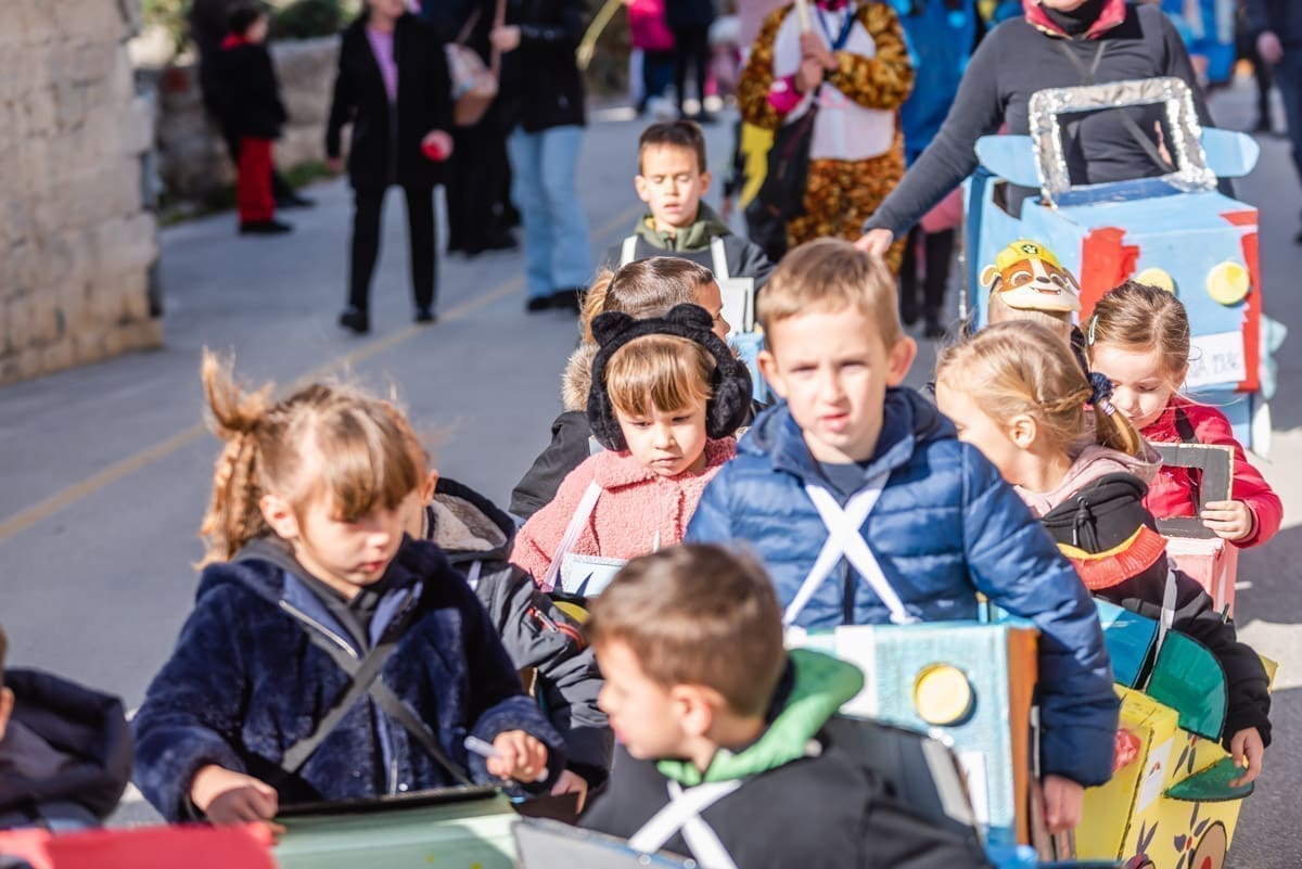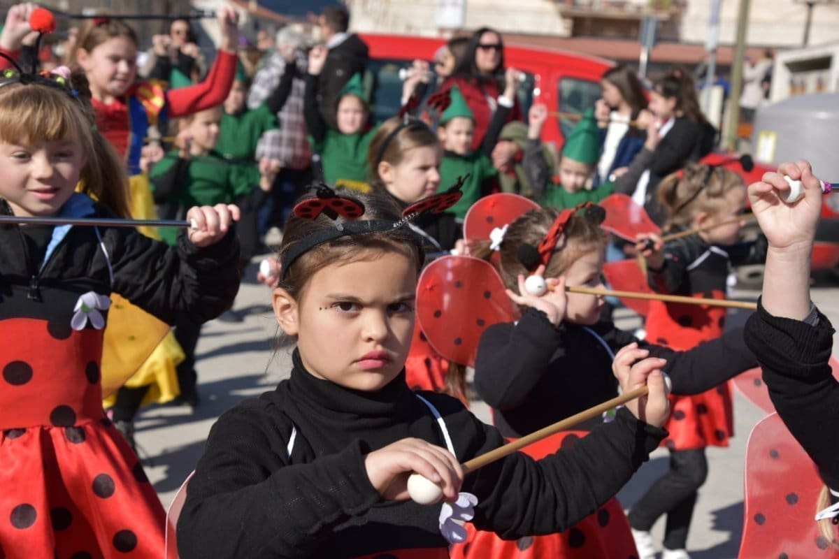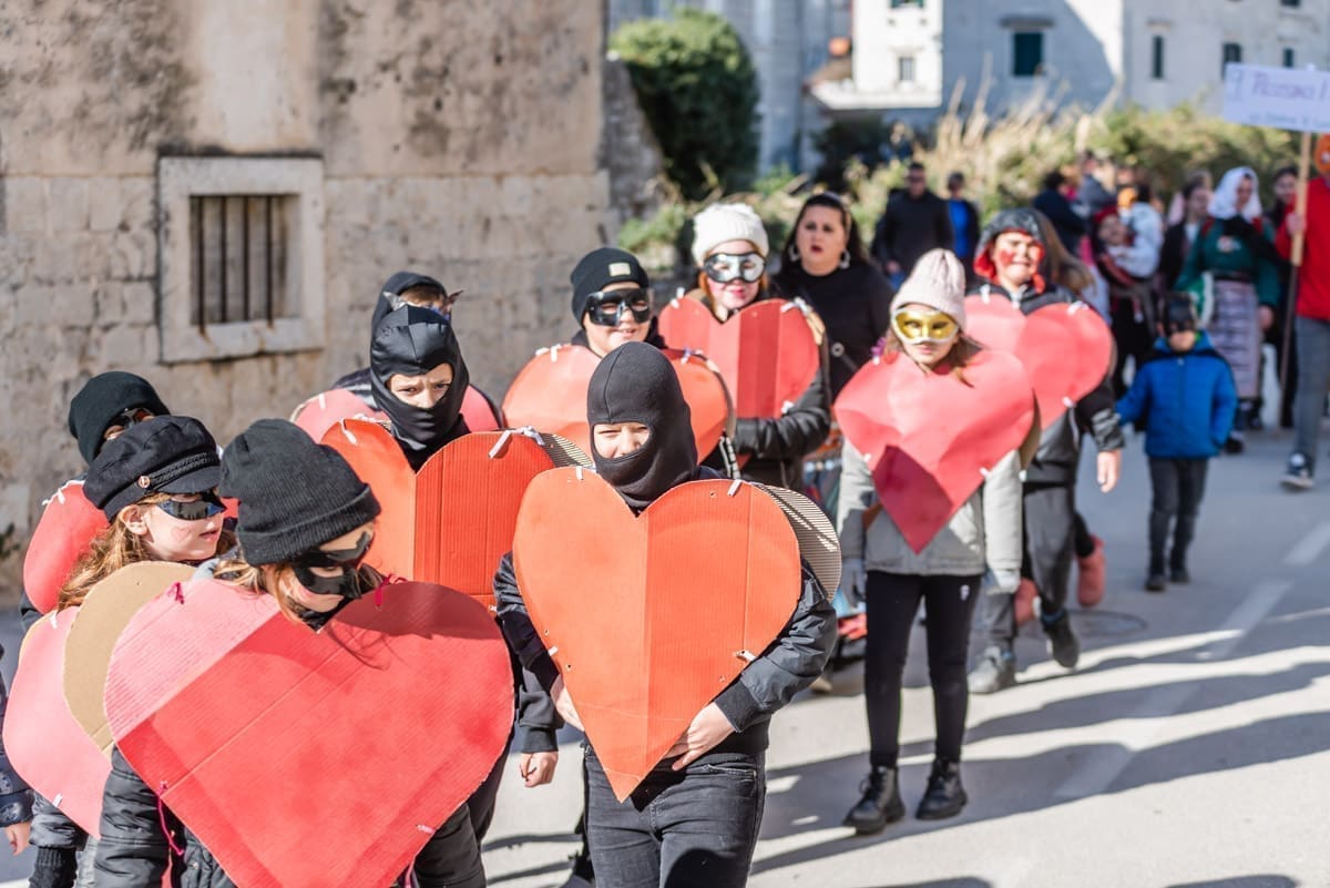 U povorci su se našla djeca iz kaštelanskih osnovnih škola i vrtića te skupa s tetama formirali oko 20 točki. Bilo je tu kuhara, likova iz bajki , autića, farmera, dokrorice Pliško, Masterchefa, Prosjaka i sinova te mnogih drugih. Na parkingu su ih dočekale maskote s kojima su mogli napraviti fotografije za pamćenje, a na dva mjesta bili su punktovi s face paintingom, gdje su zainteresirana djeca mogla oslikati svoja lica. Na kraju su djeci podijeljene krafne i sokiće te su se nakon okrepe nastavili zabavljati uz pjesmu i ples.