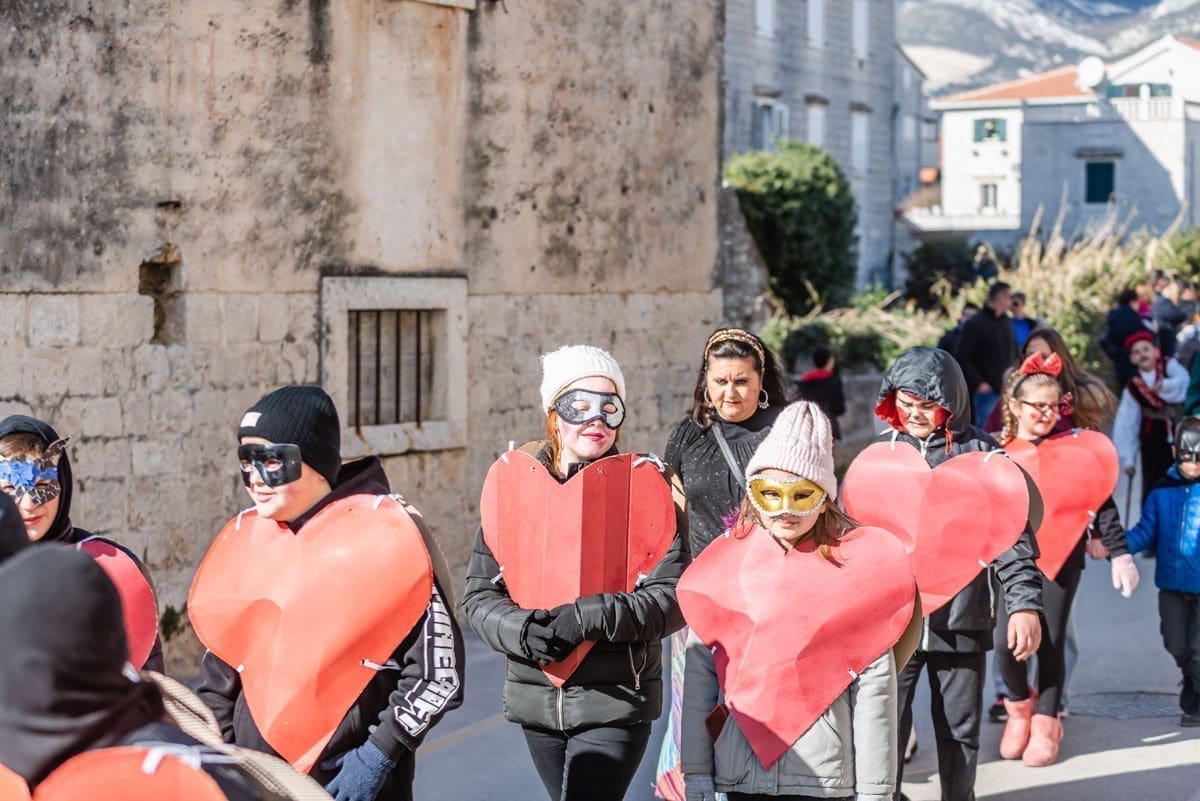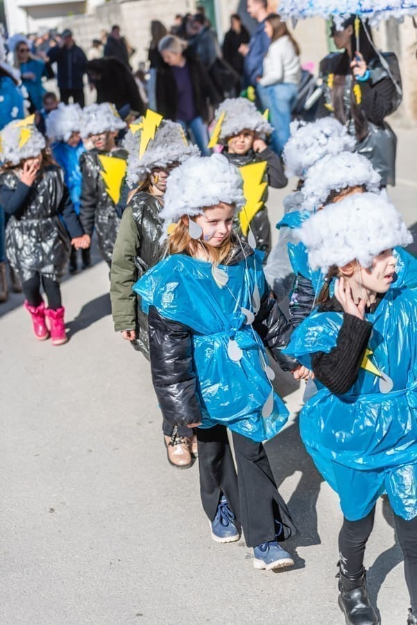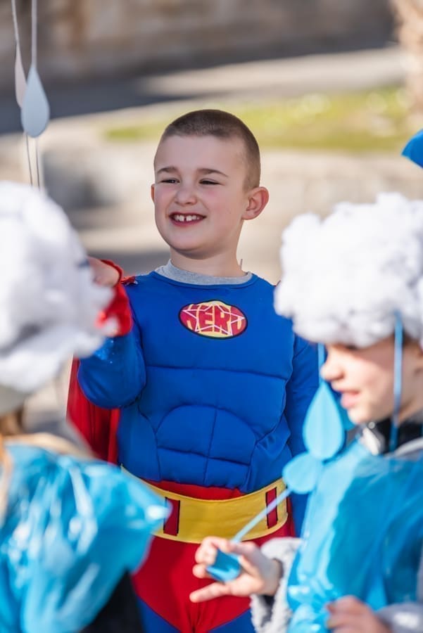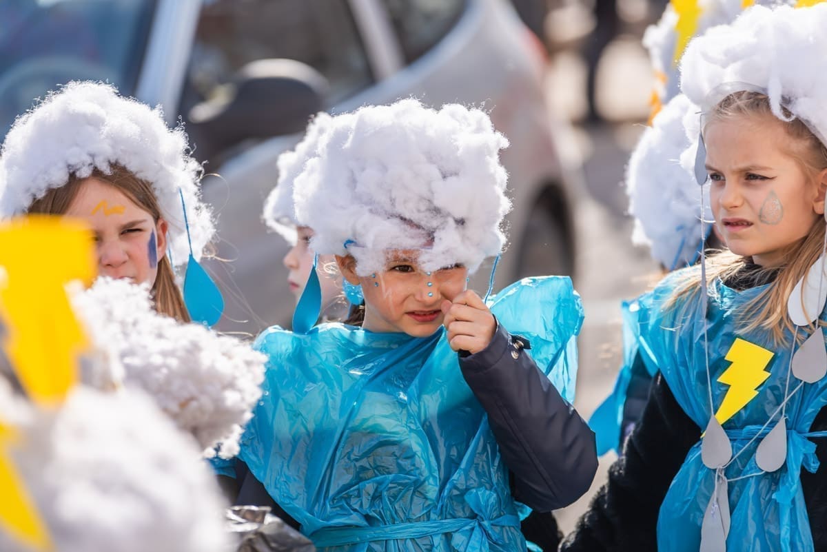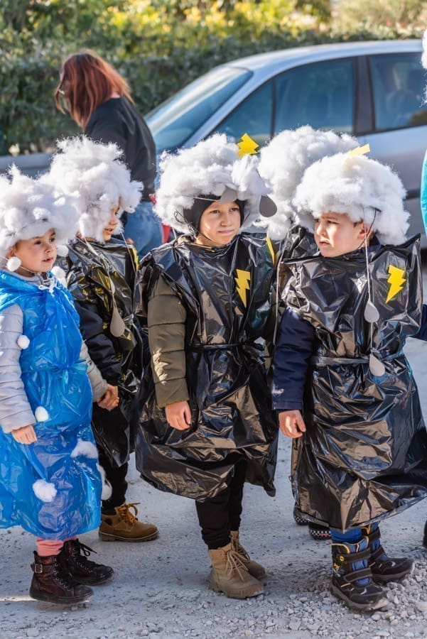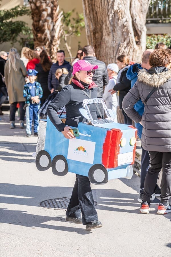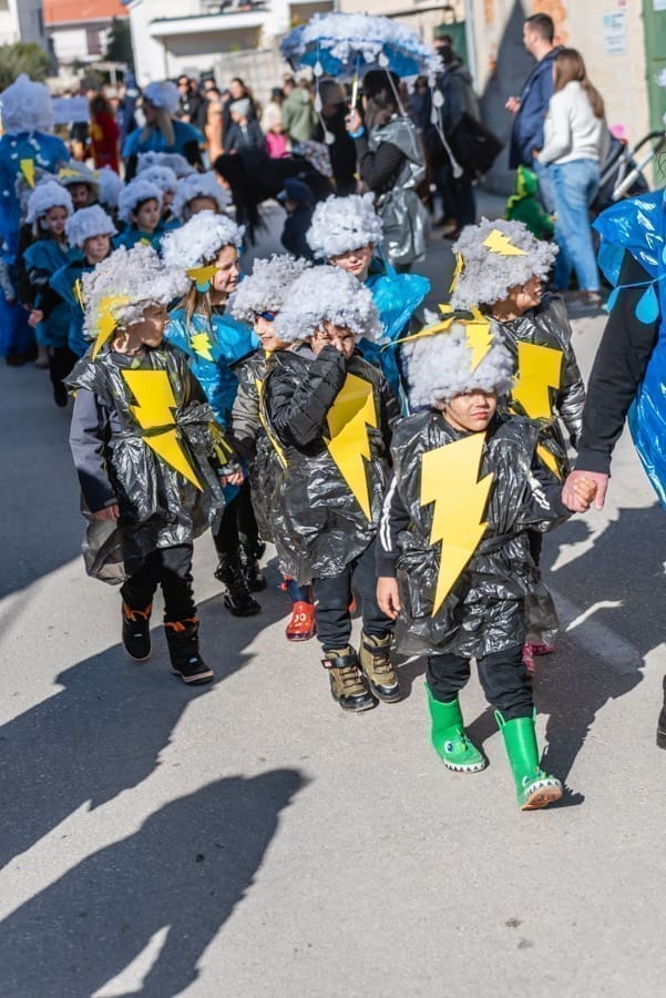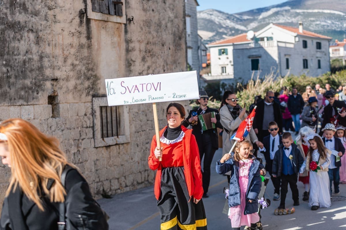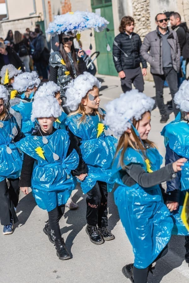 U povorci su se našla djeca iz kaštelanskih osnovnih škola i vrtića te skupa s tetama formirali oko 20 točki. Bilo je tu kuhara, likova iz bajki , autića, farmera, dokrorice Pliško, Masterchefa, Prosjaka i sinova te mnogih drugih. Na parkingu su ih dočekale maskote s kojima su mogli napraviti fotografije za pamćenje, a na dva mjesta bili su punktovi s face paintingom, gdje su zainteresirana djeca mogla oslikati svoja lica. Na kraju su djeci podijeljene krafne i sokiće te su se nakon okrepe nastavili zabavljati uz pjesmu i ples.