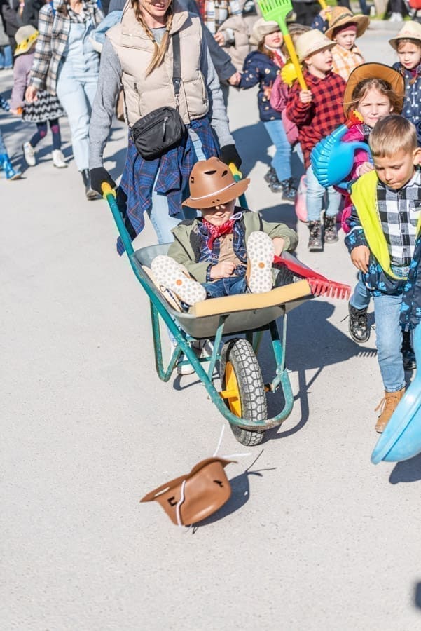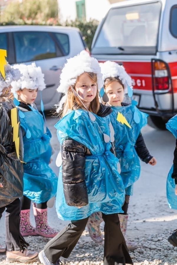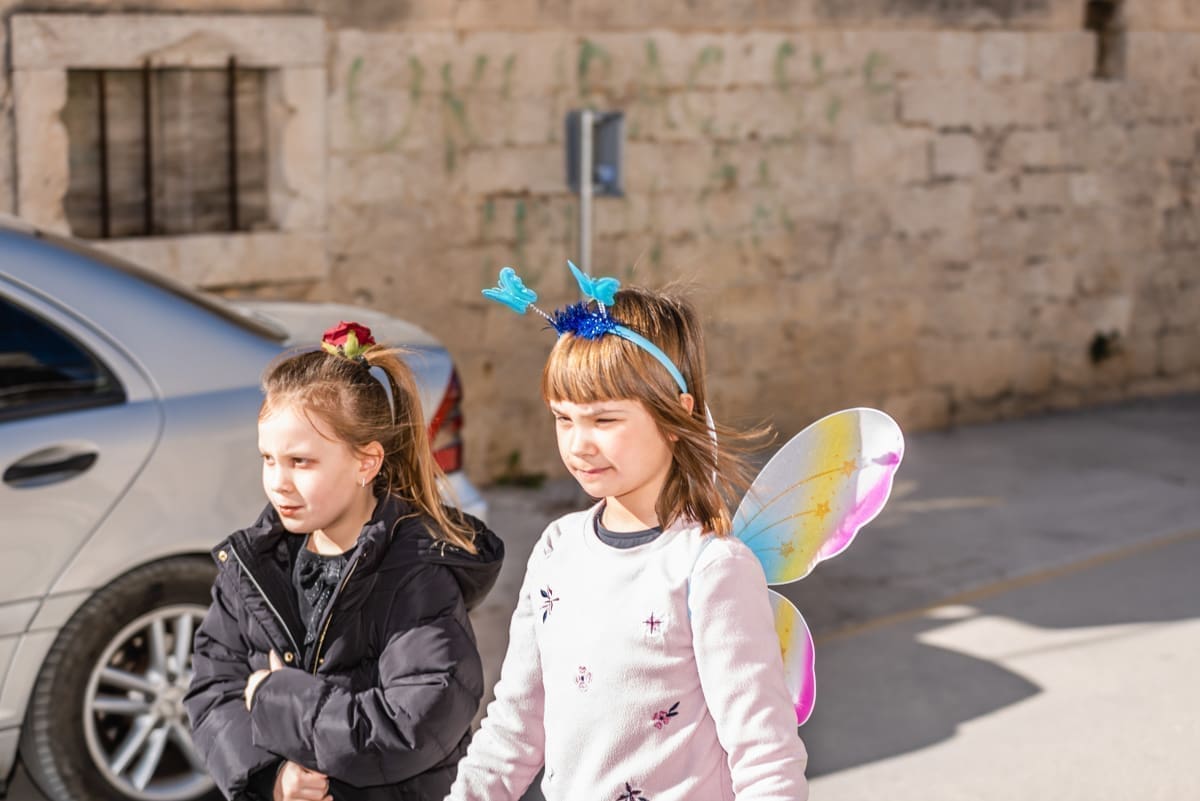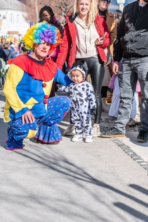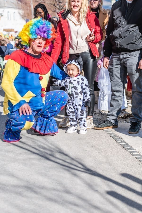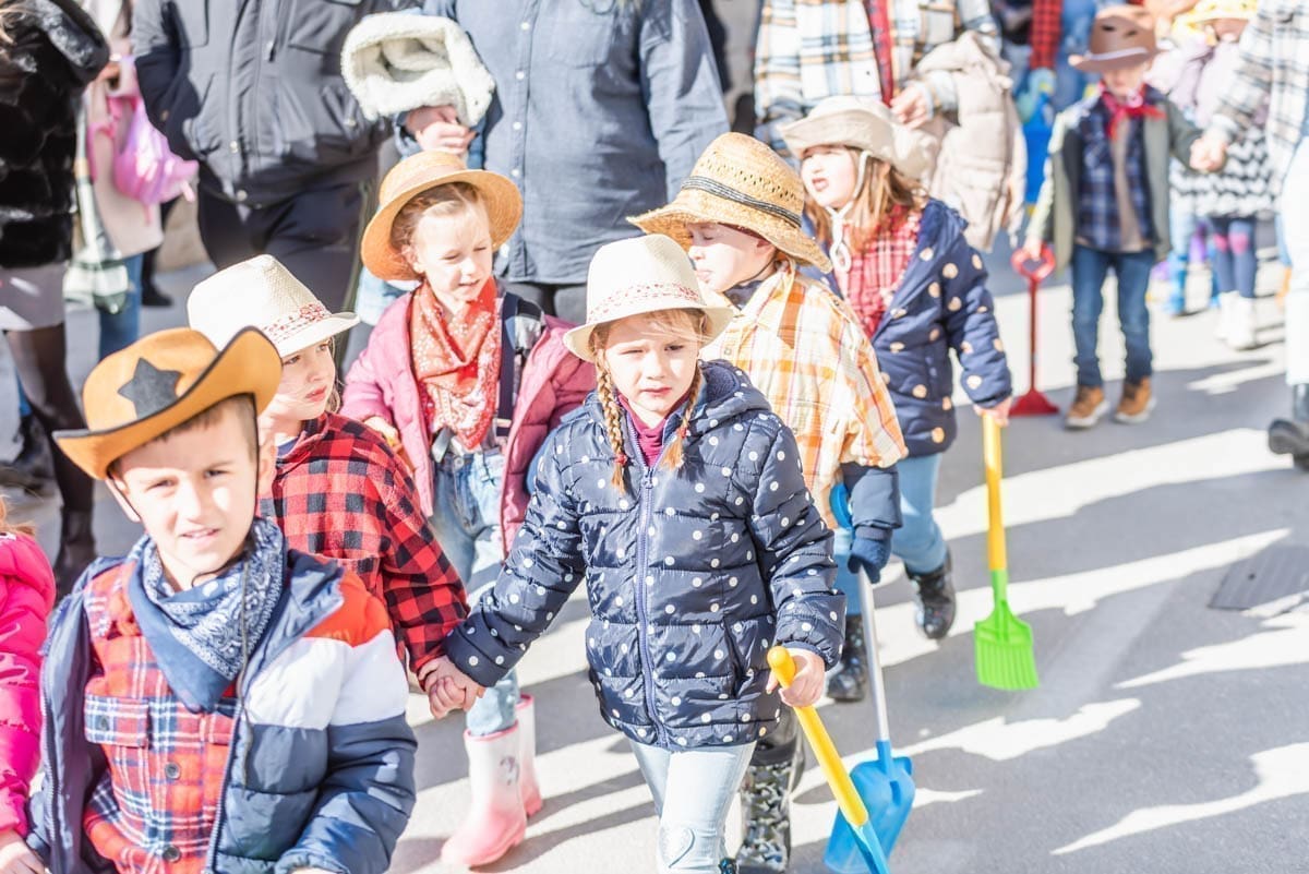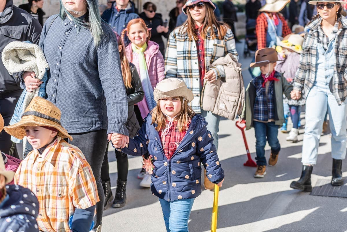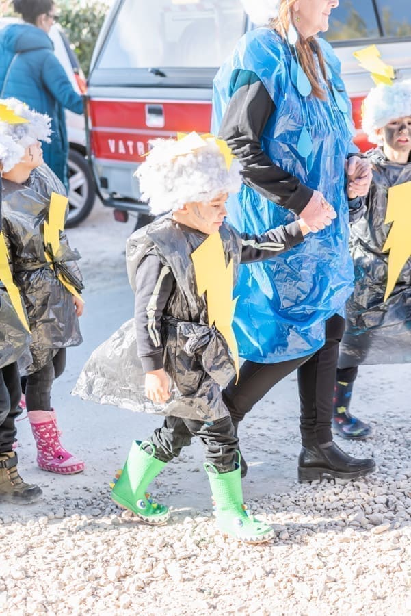 U povorci su se našla djeca iz kaštelanskih osnovnih škola i vrtića te skupa s tetama formirali oko 20 točki. Bilo je tu kuhara, likova iz bajki , autića, farmera, dokrorice Pliško, Masterchefa, Prosjaka i sinova te mnogih drugih. Na parkingu su ih dočekale maskote s kojima su mogli napraviti fotografije za pamćenje, a na dva mjesta bili su punktovi s face paintingom, gdje su zainteresirana djeca mogla oslikati svoja lica. Na kraju su djeci podijeljene krafne i sokiće te su se nakon okrepe nastavili zabavljati uz pjesmu i ples.