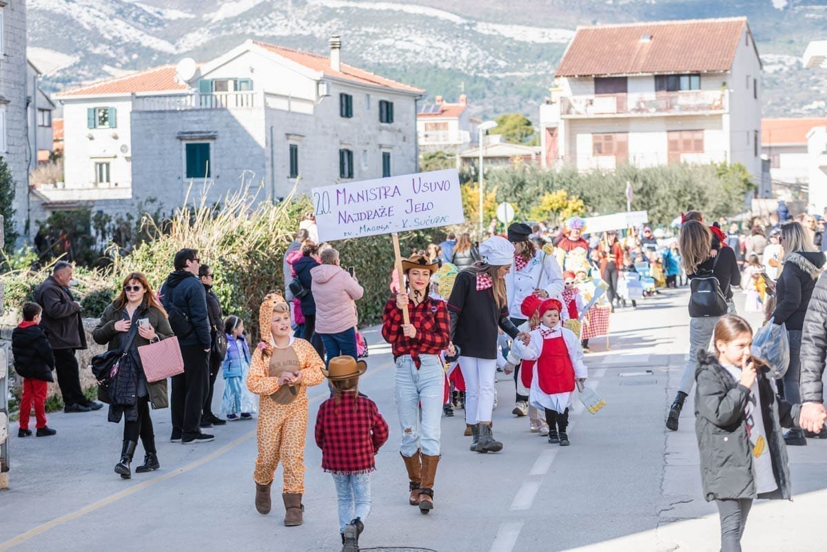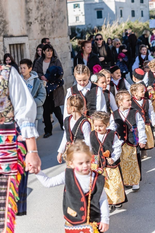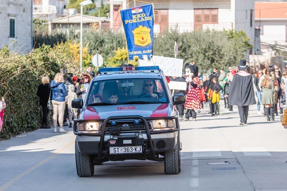 Ova nedjelja u Kaštelima, itekako, je rezervirana za maškare. Oblačno i vjetrovito jutro u Kaštelima nije spriječilo rijeku djece da se spusti do Lucijinog puta u Kaštel Štafiliću gdje je formirana maškarana kolona. U 13 sati, sunce je odlučilo obasjati djece, pa je 42. Dičji krnjeval u organizaciji KKU Poklade krenuo je iz Lucijinog puta, preko rive do parkinga ex. Plavog jadrana.